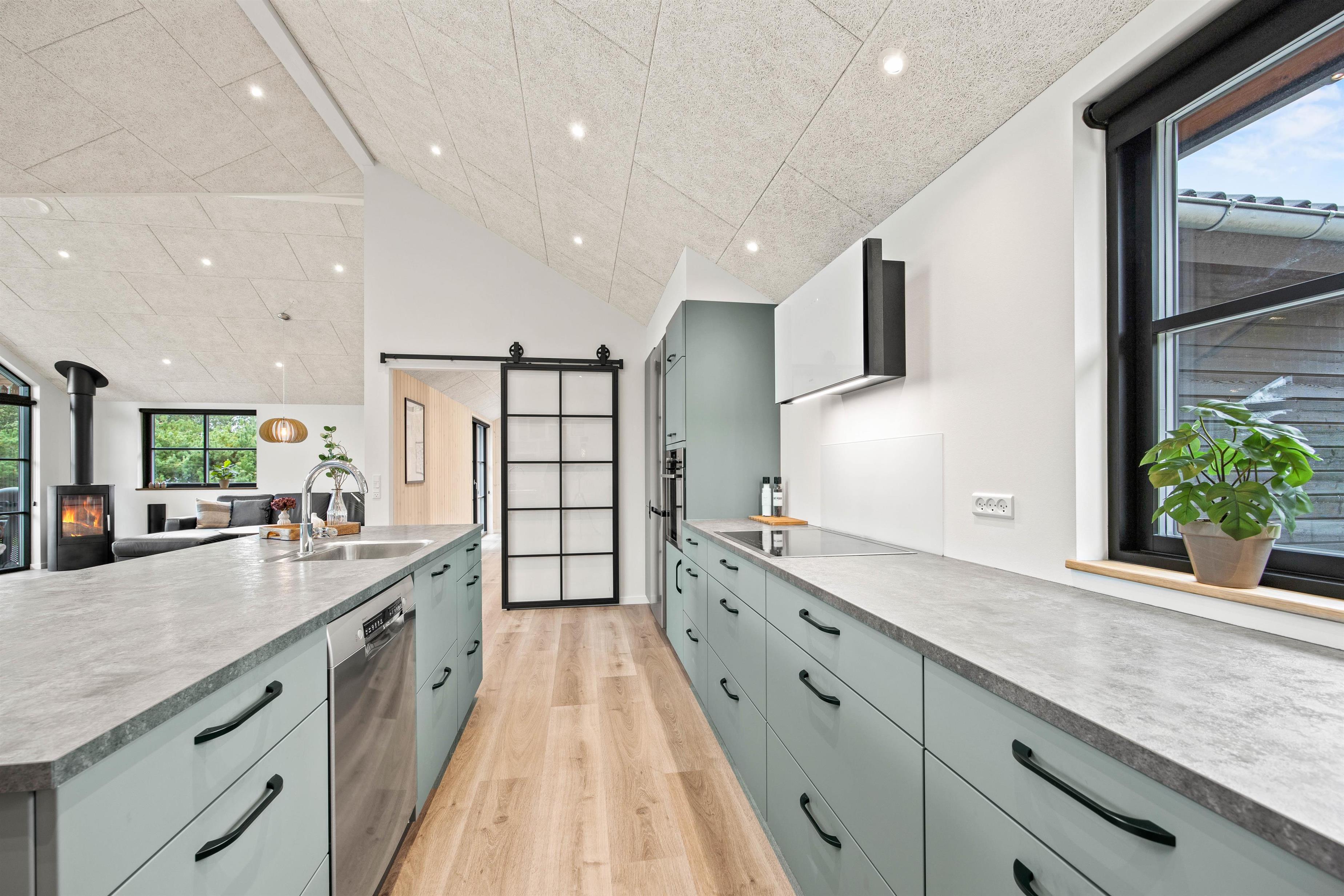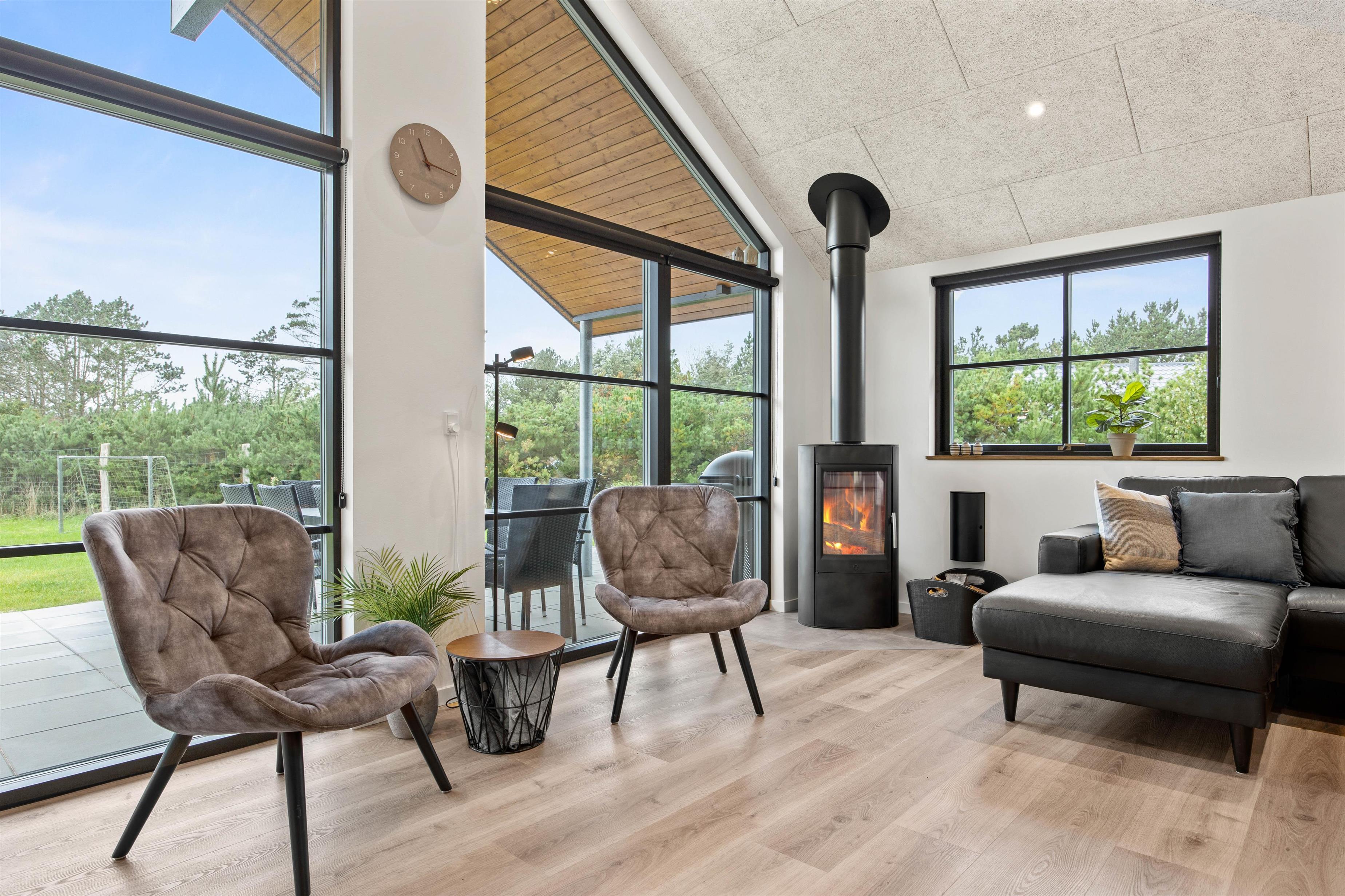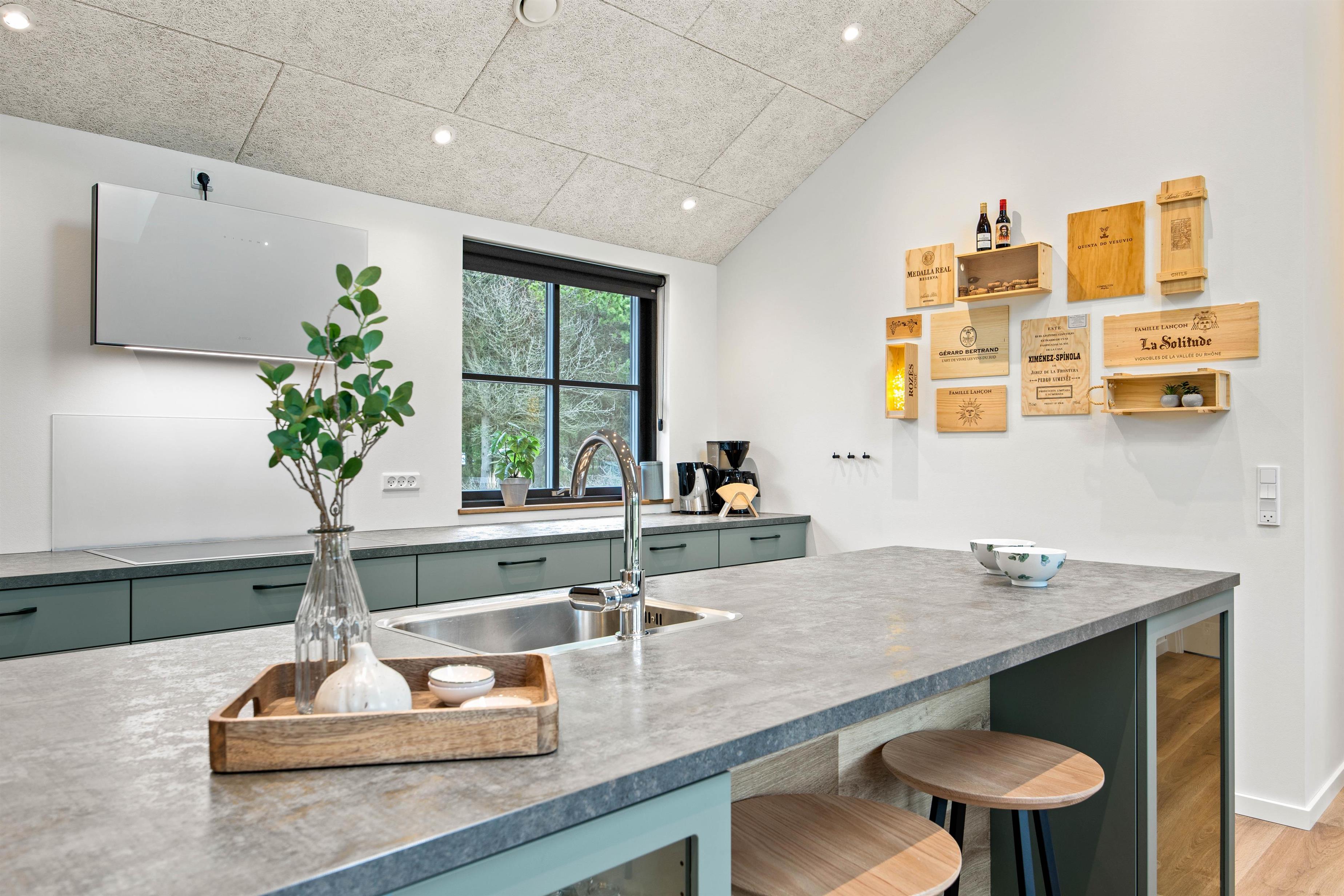 Allerede når I ser det store og lyse køkkenalrum, kommer i hurtigt i feriestemning. Det store køkkenområde er udstyret med alle moderne hvidevarer, sådan at madlavningen bliver en leg. I stuedelen med den store hjørnesofa kan I hygge foran brændeovnen og se en film eller bare slappe af med en god bog.