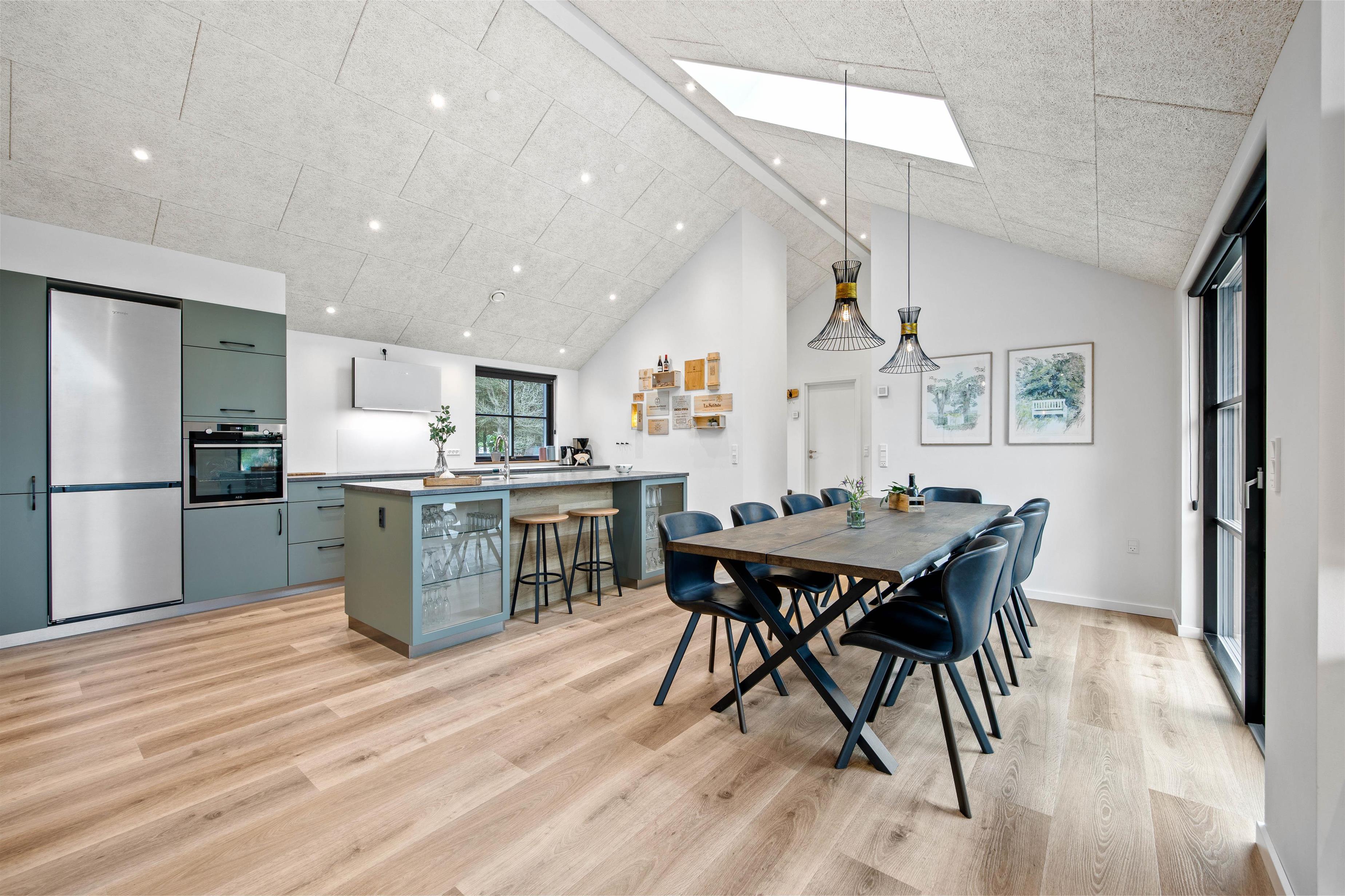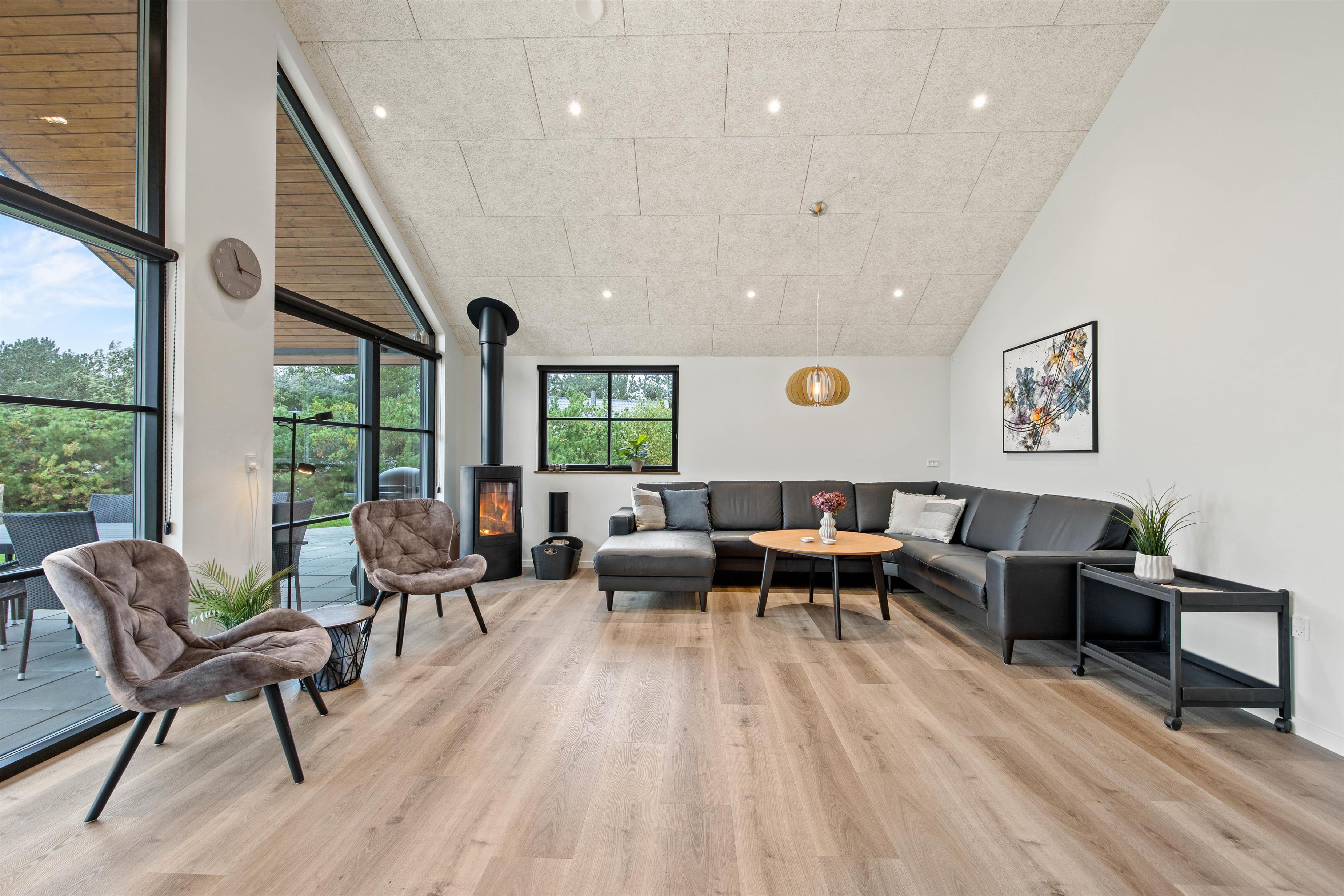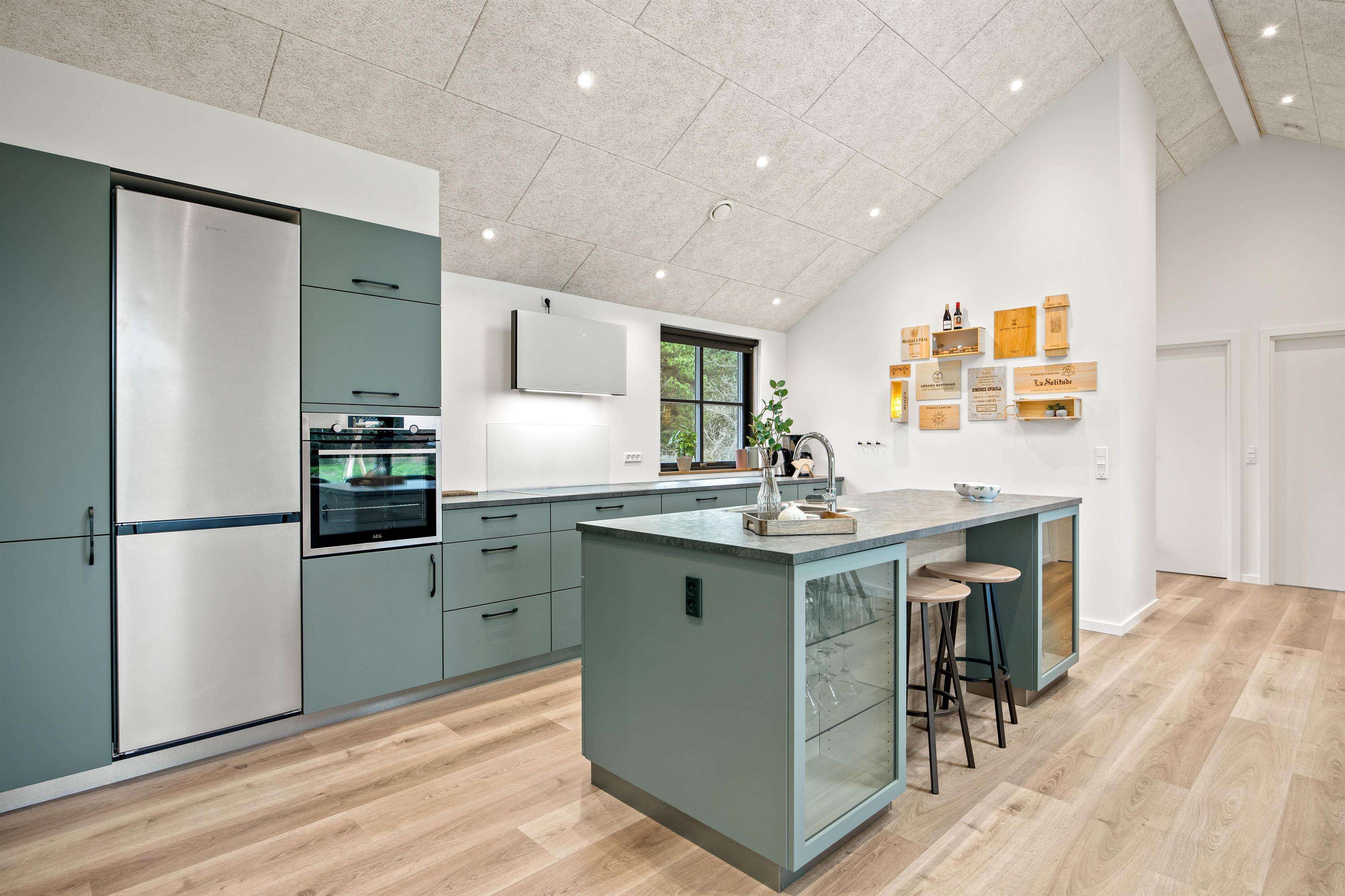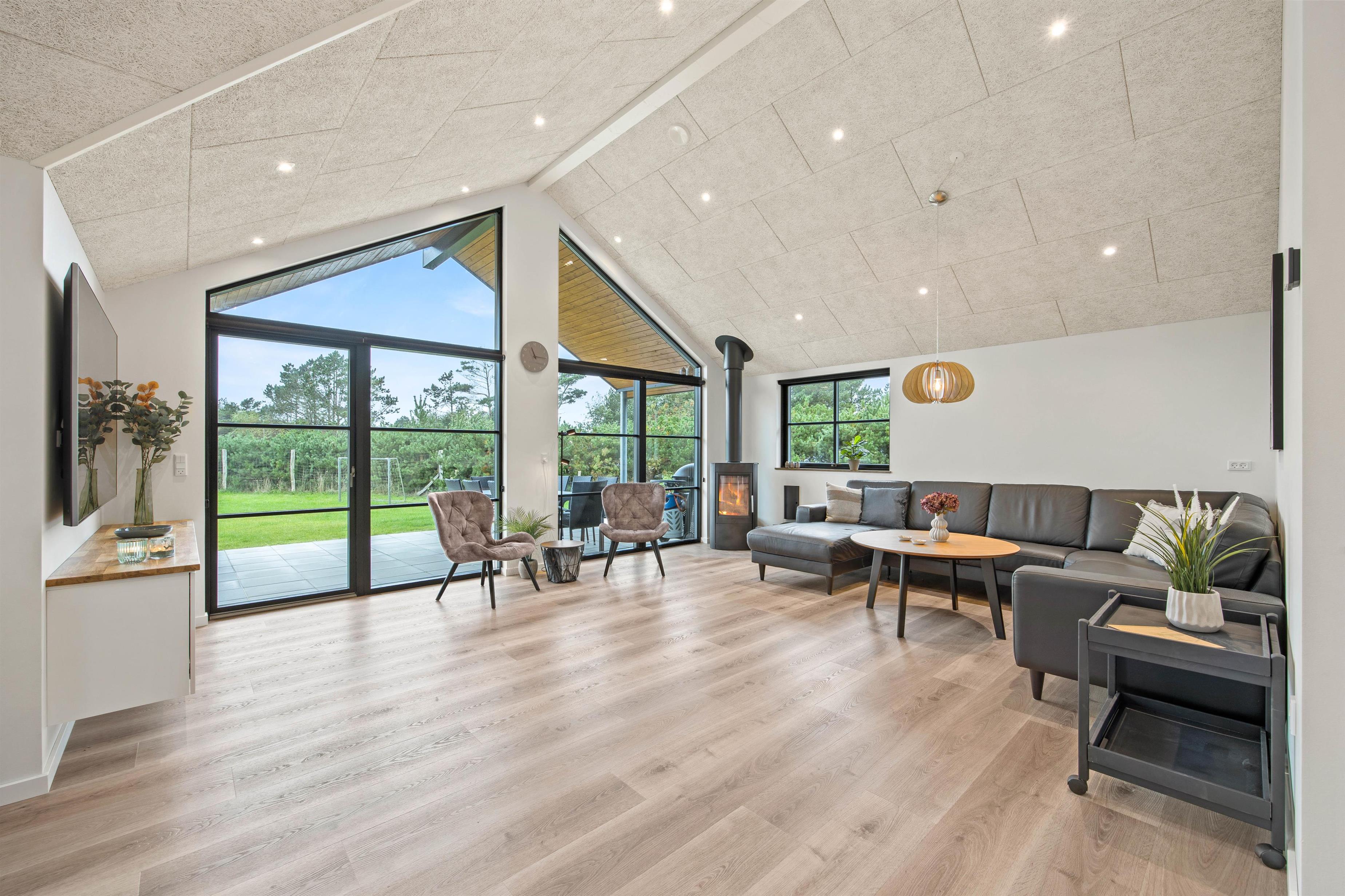 Allerede når I ser det store og lyse køkkenalrum, kommer i hurtigt i feriestemning. Det store køkkenområde er udstyret med alle moderne hvidevarer, sådan at madlavningen bliver en leg. I stuedelen med den store hjørnesofa kan I hygge foran brændeovnen og se en film eller bare slappe af med en god bog.