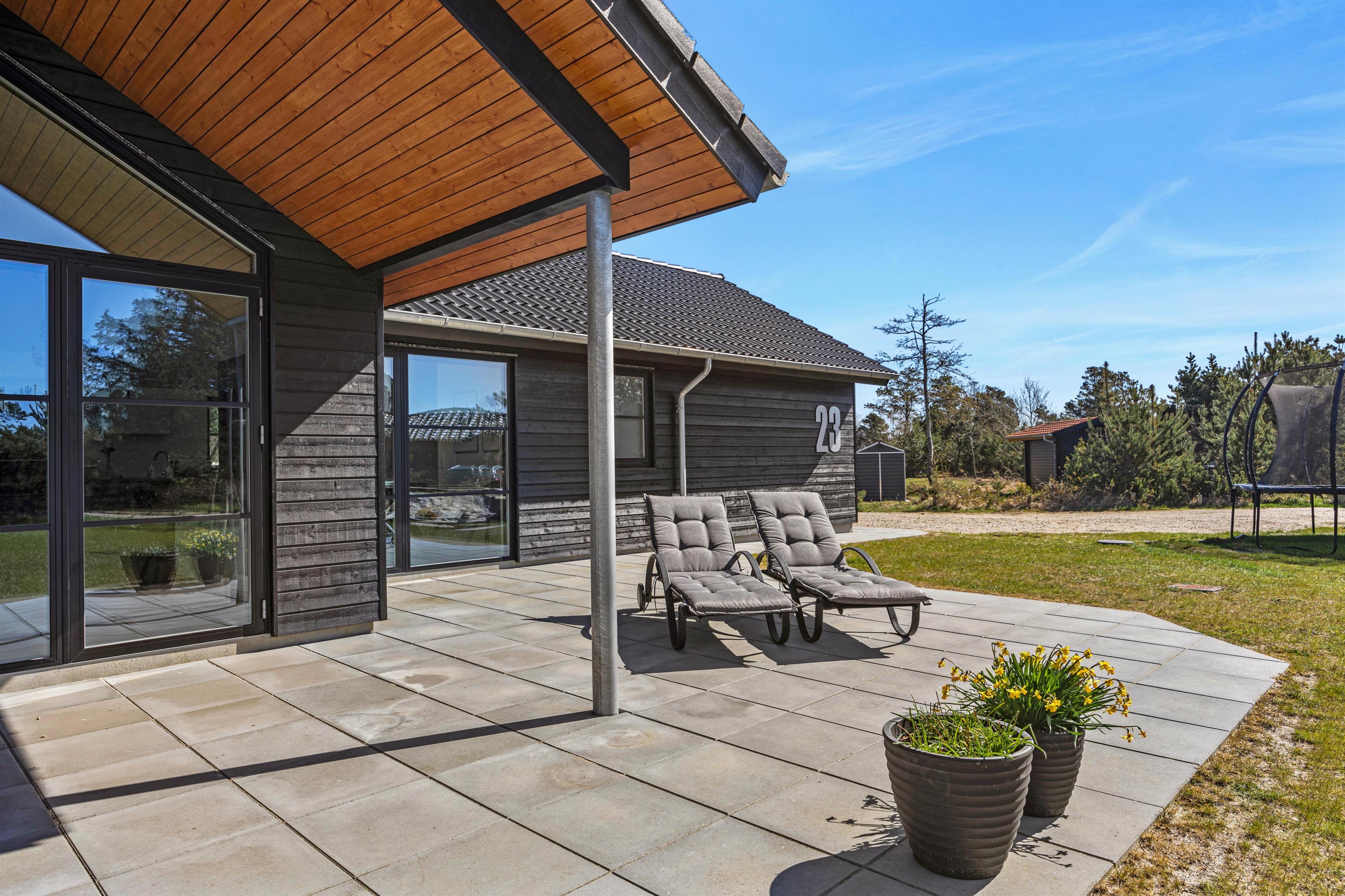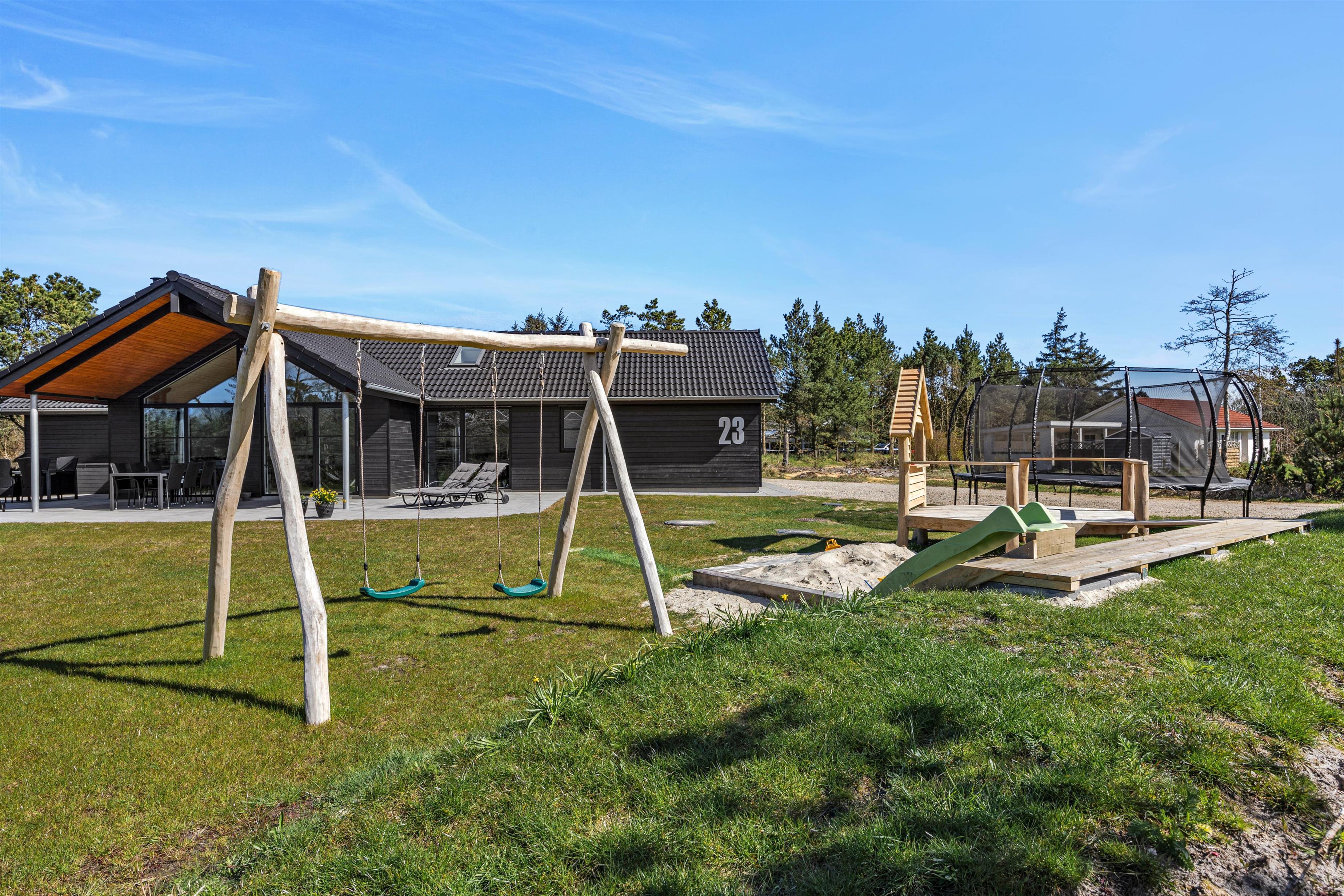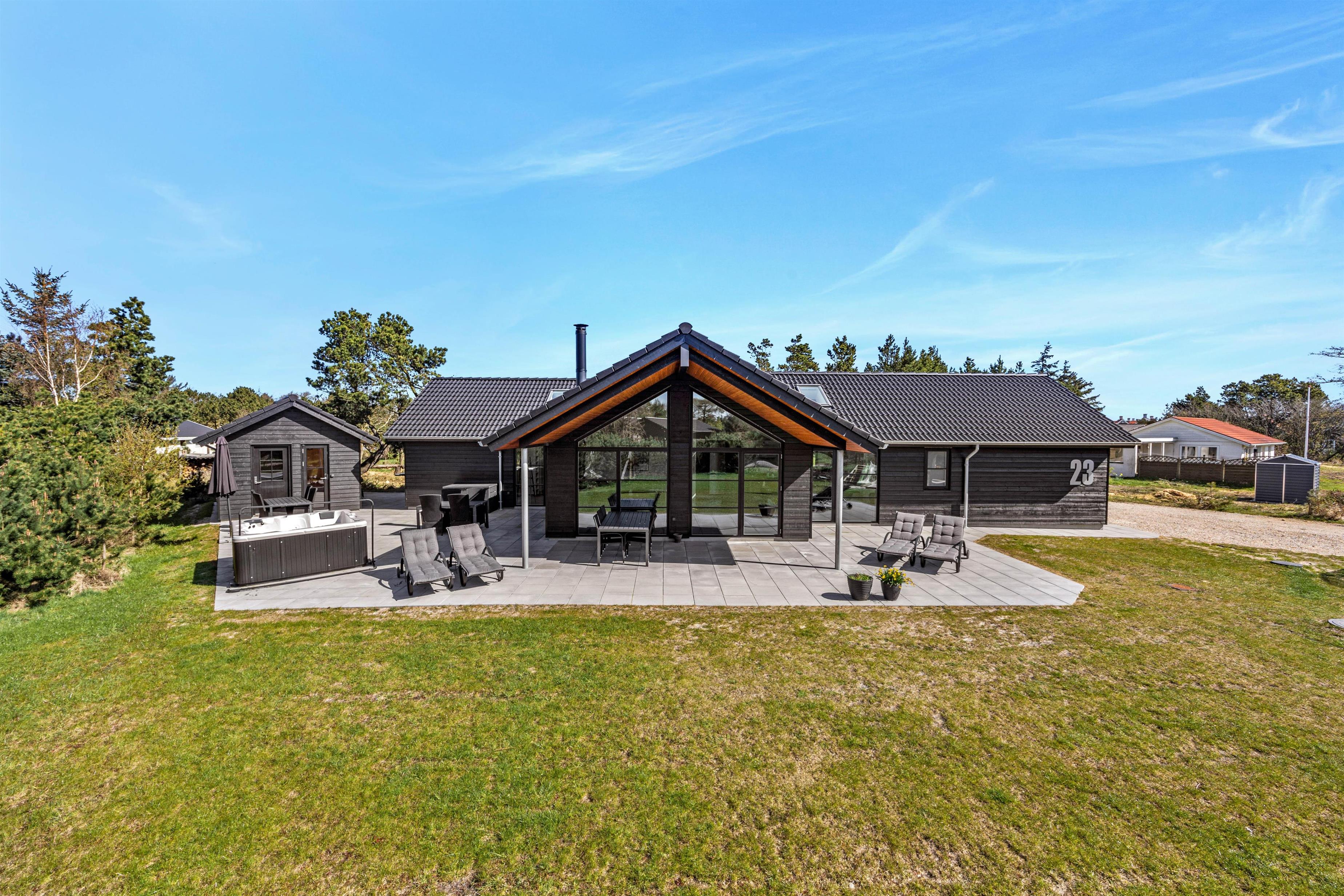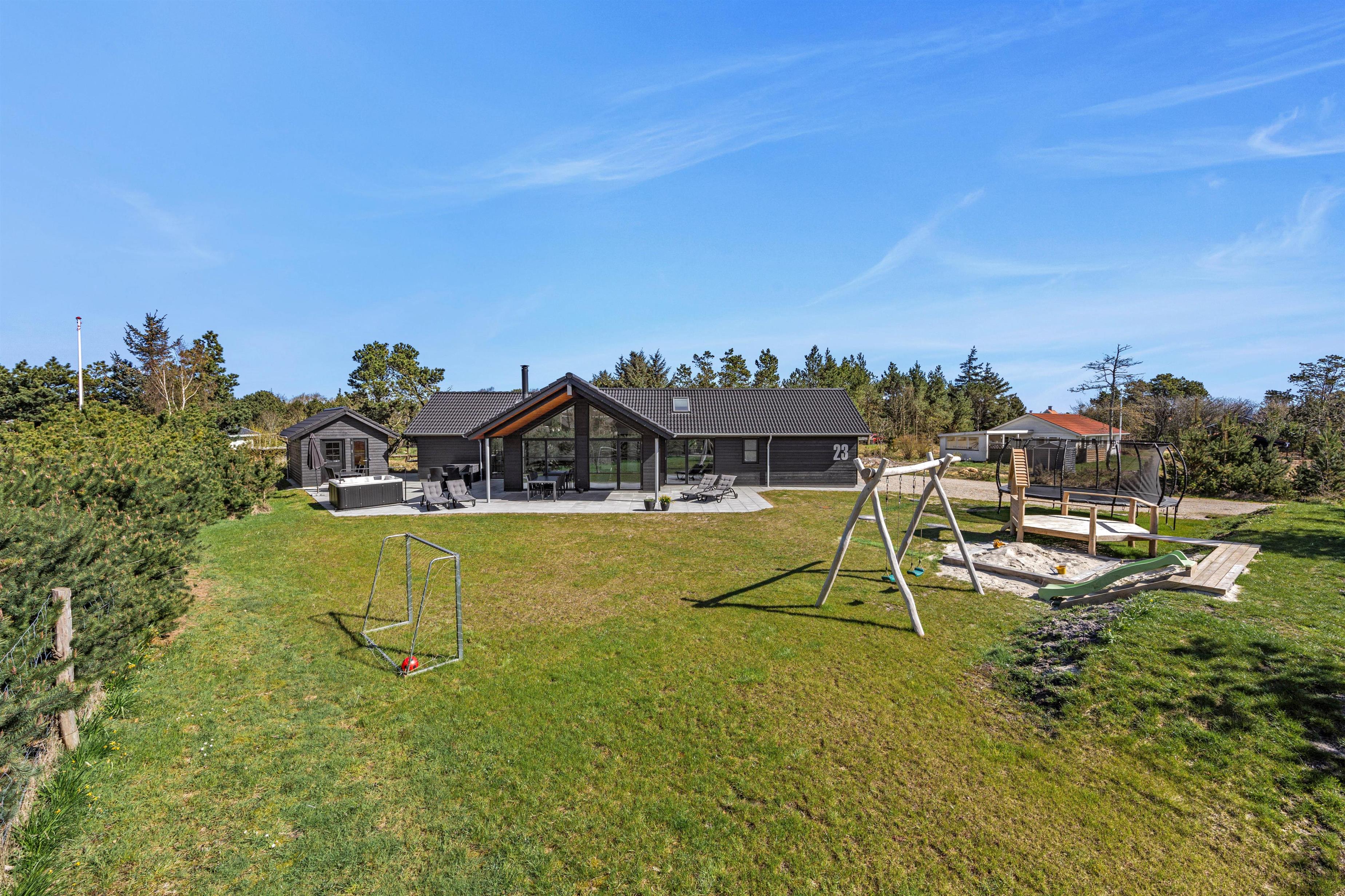 Vil I holde ferie i et feriehus ved vestkysten der lover luksus og velvære? Så se på dette femstjerne feriehus på Kallesensvej 23 i Blåvand, som blev færdigbygget i 2023. Her er plads til 8 personer og indretningen er smagfuld og moderne. I aktivitetsrummet kan I tage en omgang bordtennis eller billard og bagefter slappe af i spaen og saunaen på terrassen. Er i ejer af en elbil kan i lade den op lige ved huset, hvor der er installeret en ladestation.
