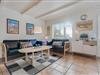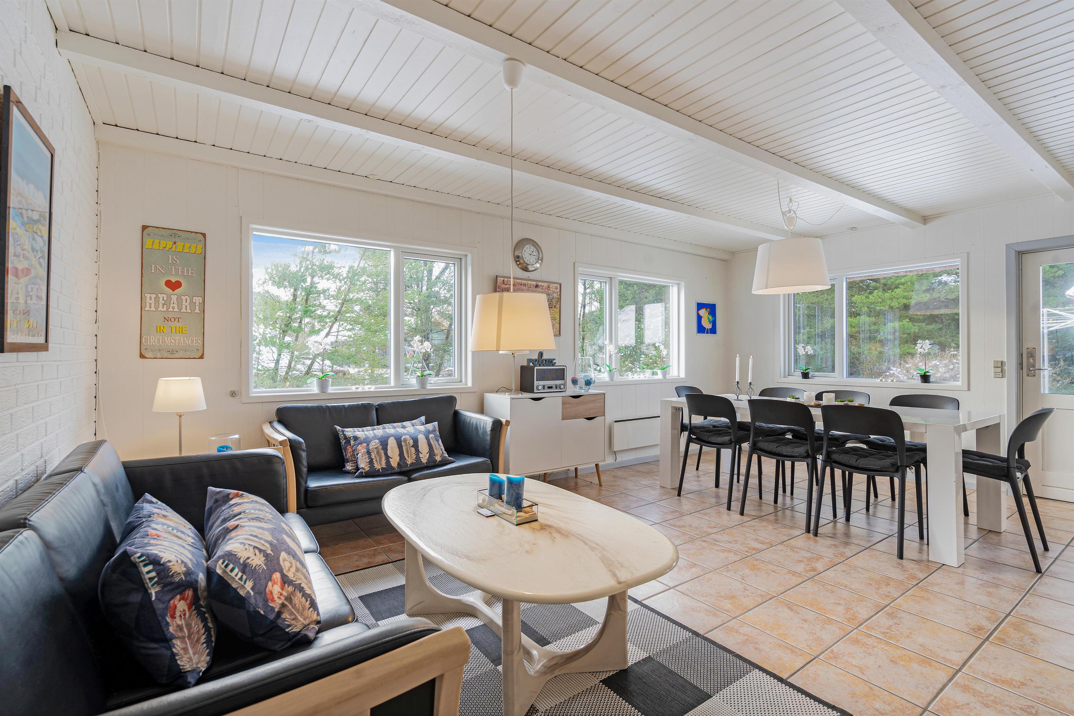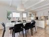 Det veludstyrede køkken er i åben forbindelse til spisestuen, hvor der også er en dør direkte ud til den store sydvendte terrasse. Her er rig mulighed for at alle kan hjælpe til med dages måltider, om det er på grill eller komfur de tilberedes. Sandkasse og gynger står klar på den store grund, som ligger rundt om sommerhuset. Her er der god mulighed for leg både for børn, voksne og hund, - der er nemlig op til 2 hunde tilladt i huset.