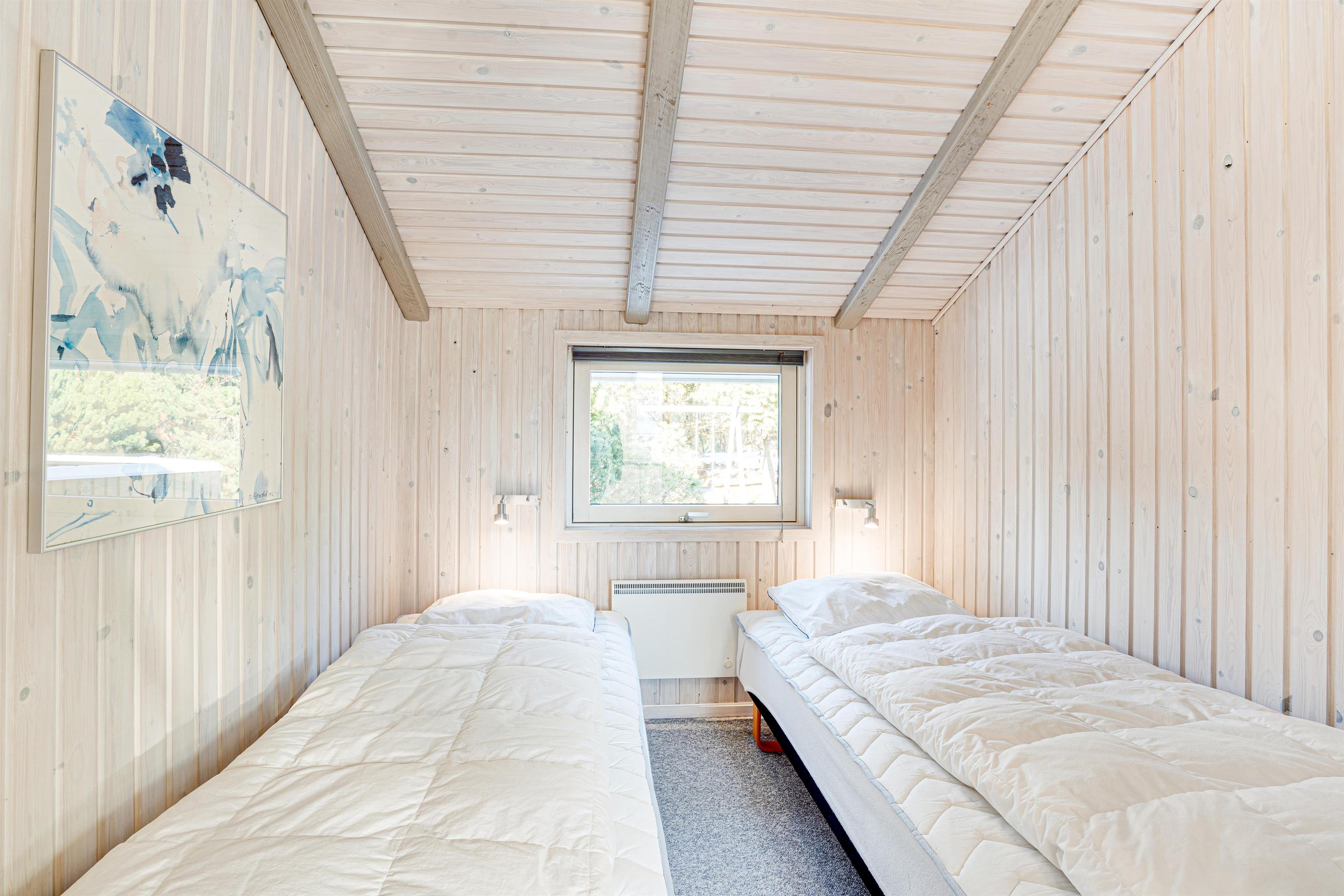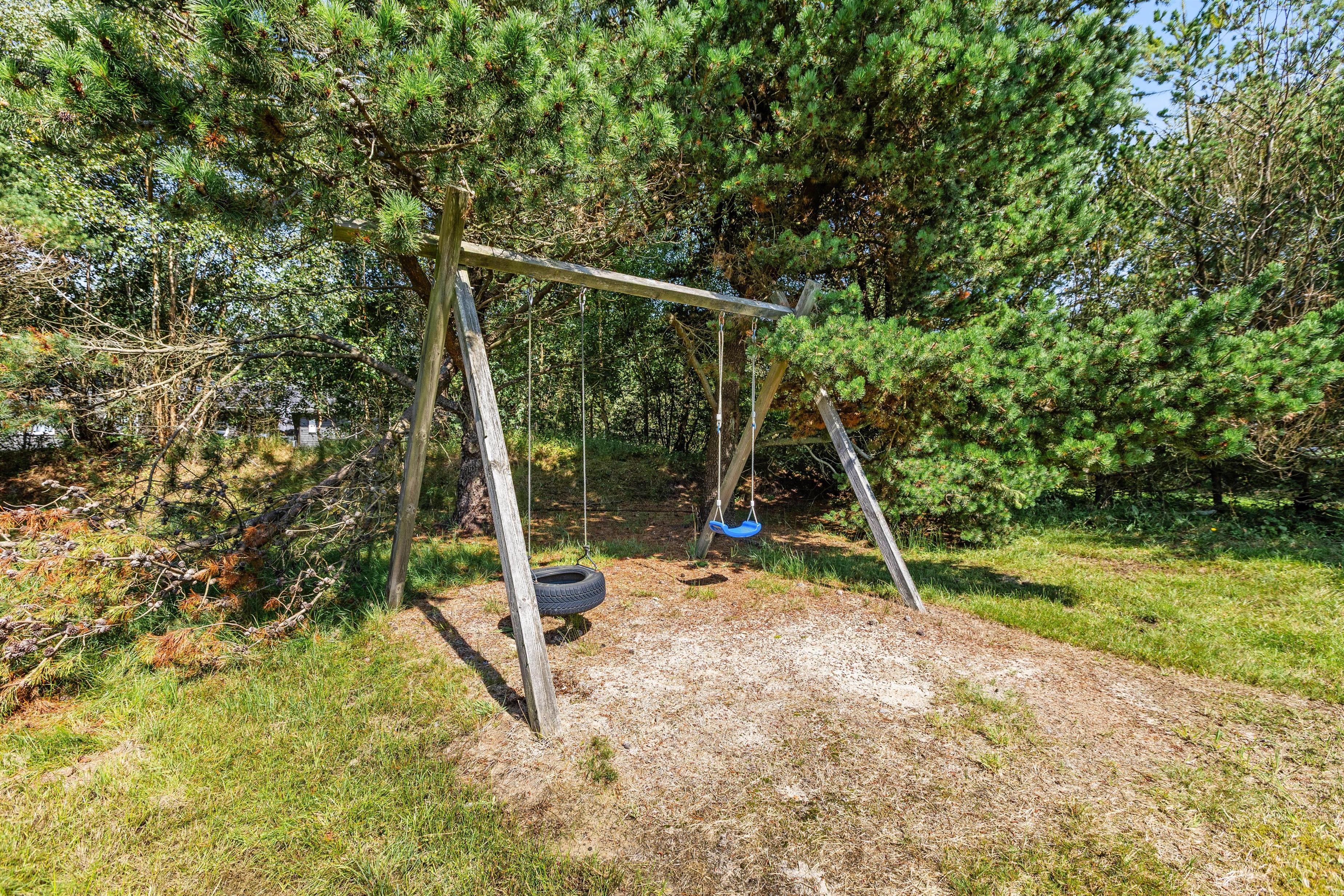 Til både stranden og centrum er der kun omkring 1100 meter. Om sommeren kan I bade på den kilometerlange sandstrand, og om efteråret og vinteren byder klitlandskabet på fascinerende naturoplevelser for alle, når blæsten får bølgerne til at bruse, eller den første vinterfrost farver klitterne hvide.