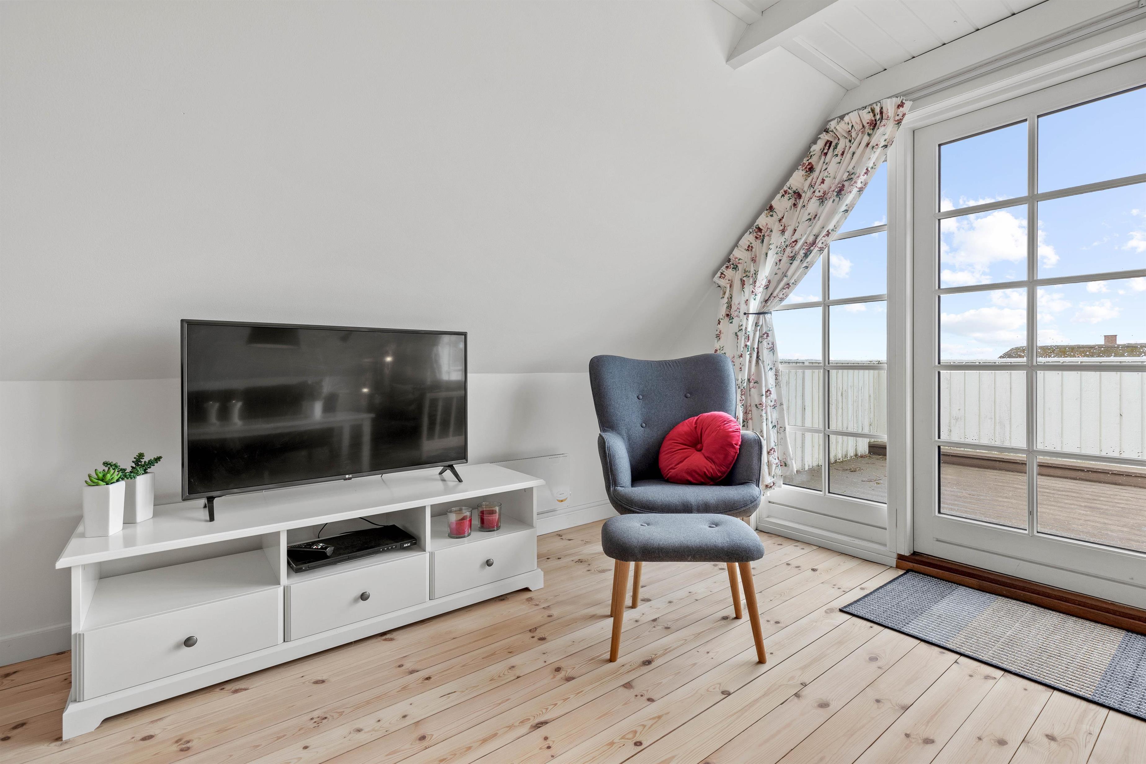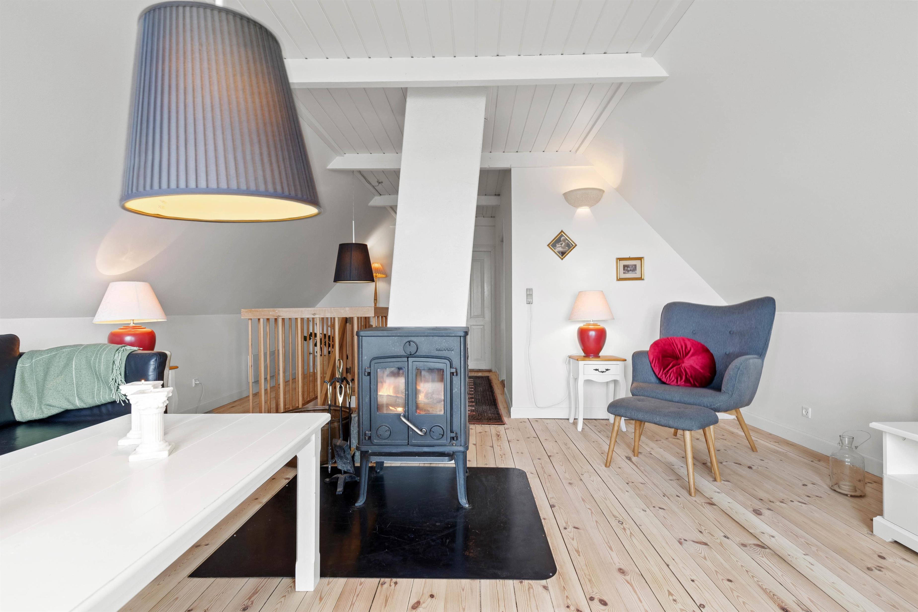 De i alt 160 kvadratmeter er fordelt på to etager, og der er flere hyggekroge rundt omkring i huset. På øverste etage har I gennem stuen adgang til en altan med den smukkeste havudsigt, så I kan nyde vejret og den friske havluft fra havemøblerne.