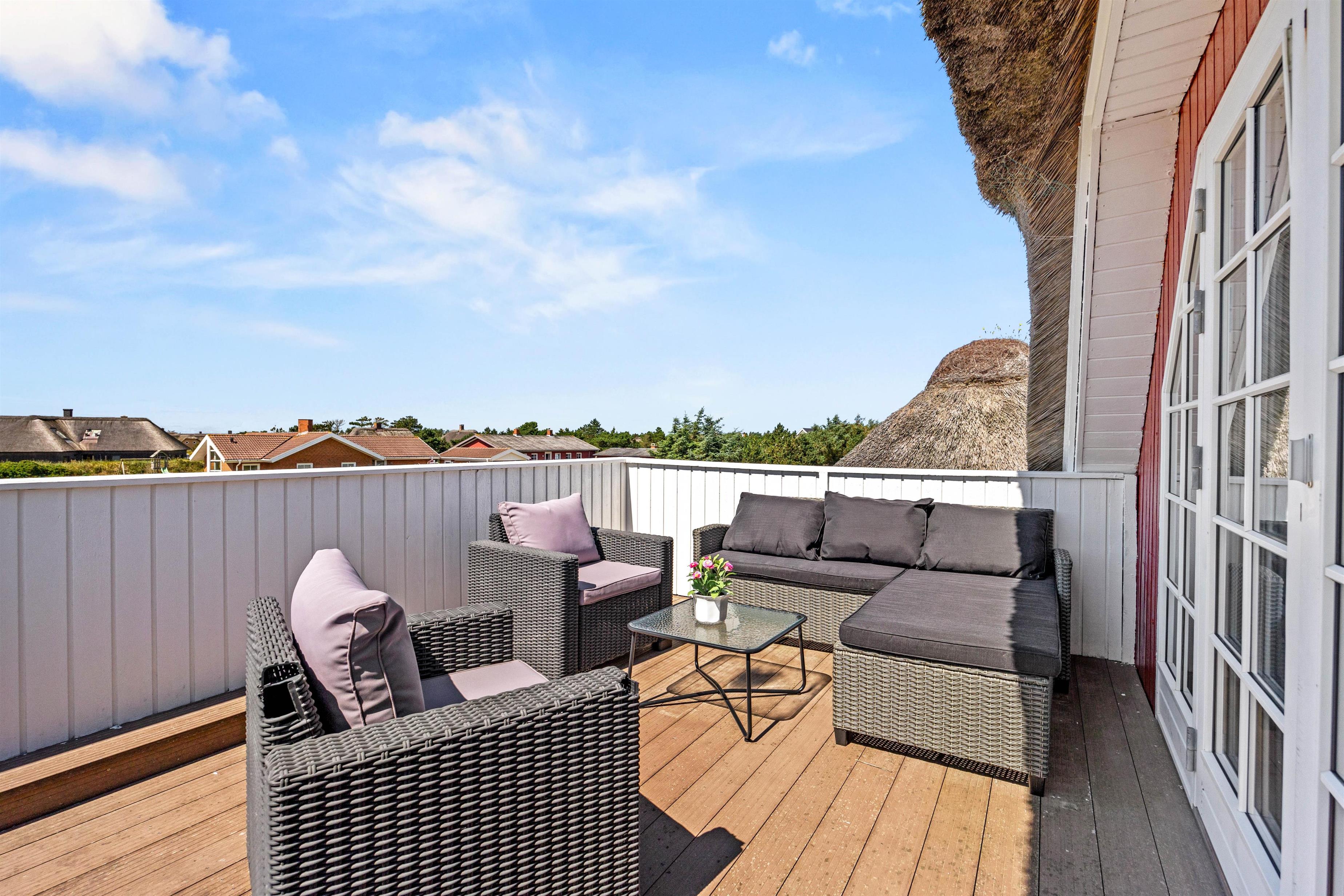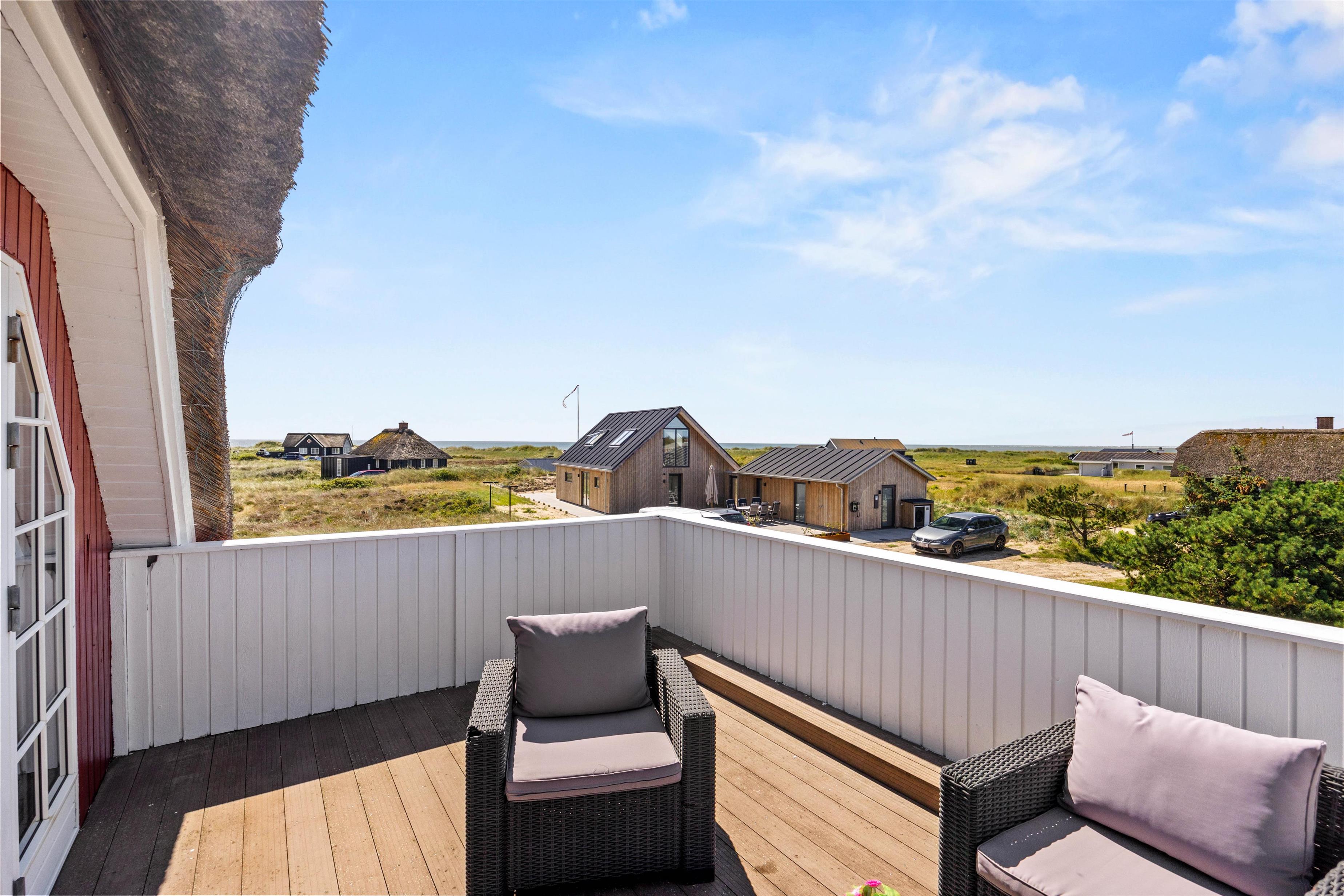 Kun et stenkast fra stranden i Blåvands populære ferieområde ligger dette stråtagshus til 8 personer på den dejligste beliggenhed. Her er der dømt feriehygge midt i det lyngklædte klitlandskab, og indvendigt finder I både en sauna og et varmtvandsbassin. Der er havudsigt fra altanen og flere gode terrasser udenfor.