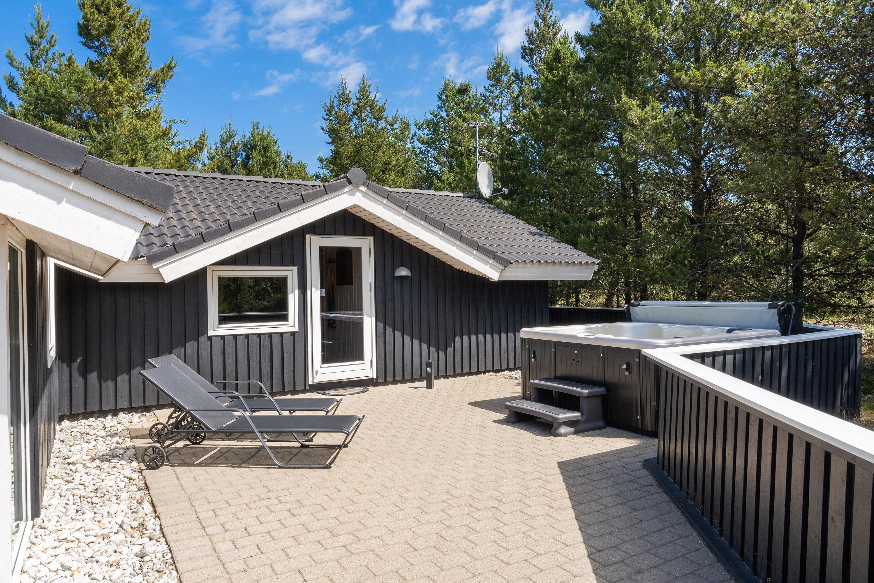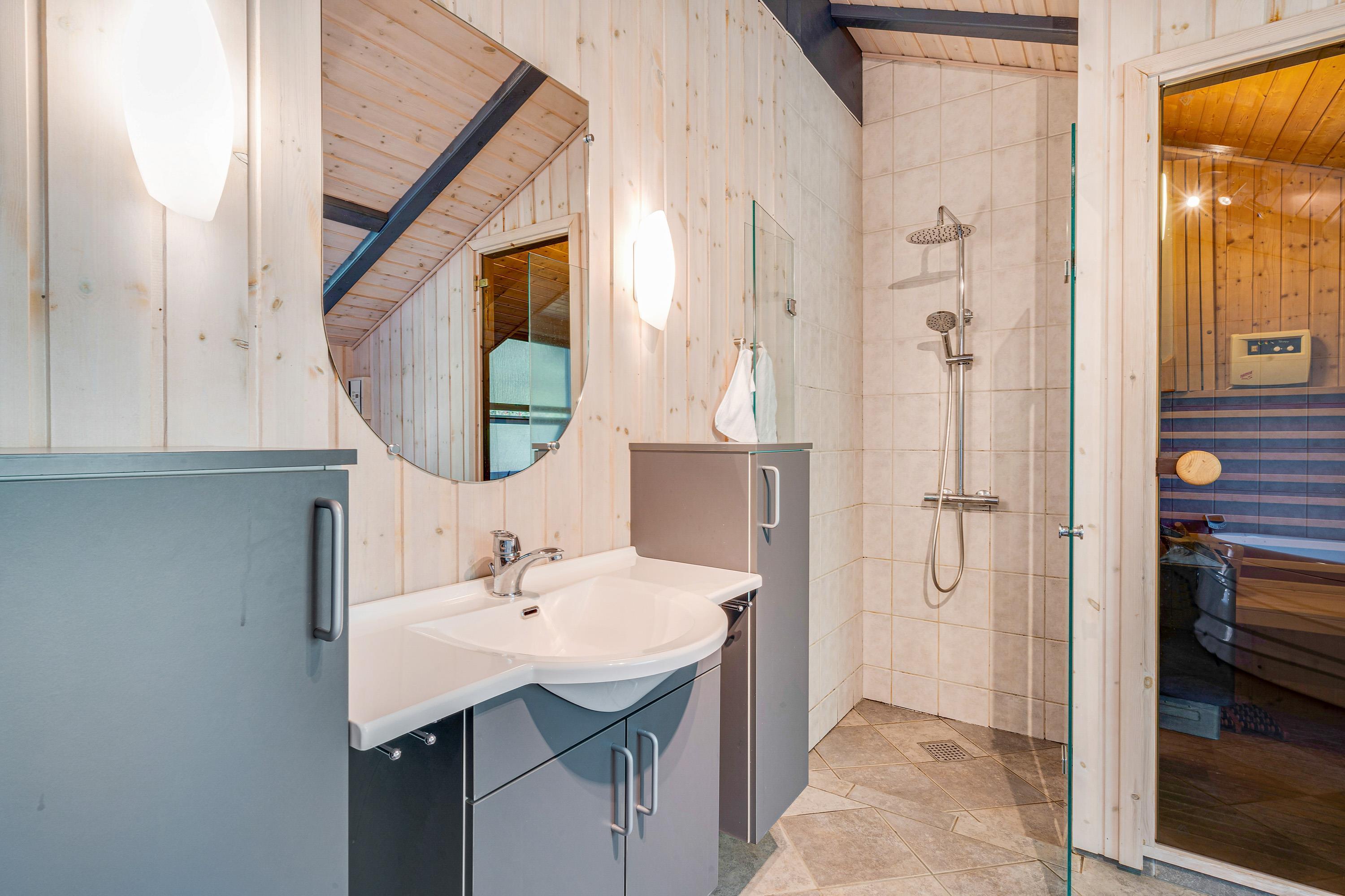 Vil I hellere slappe af, kan I søge mod det ene af sommerhusets 2 badeværelser. Her står spabadet klar til at forkæle jer med masser af afslapning i det varme vand. Efterfølgende kan I sætte jer ind i den varme sauna, der også er adgang til fra badeværelset.