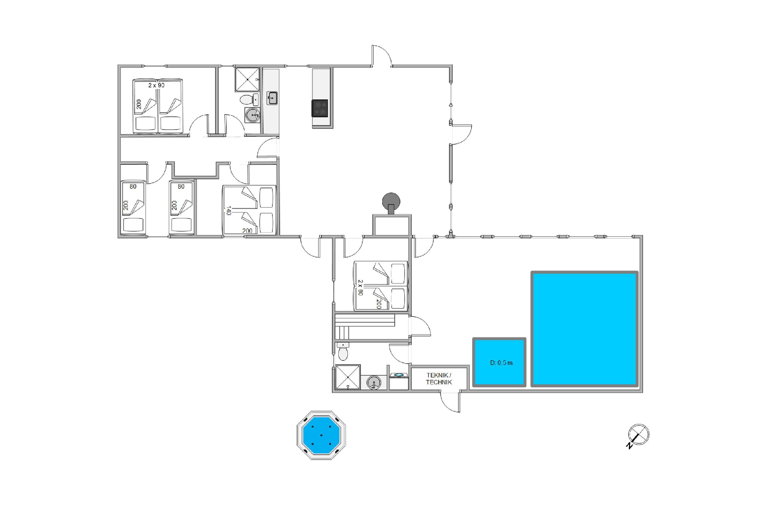 Alrummet i sommerhuset bliver utvivlsomt jeres samlingspunkt på ferien, hvor I kan samles om alt fra madlavning og spisning til spil og film i tv’et – der er 2 TV i sommerhuset, hvor det ene er et Smart TV. I alrummet kan I tænde op i brændeovnen, når der skal skrues ekstra op for den hyggelige stemning. Både i alrummet og i poolrummet er der desuden Sonos højttalere.