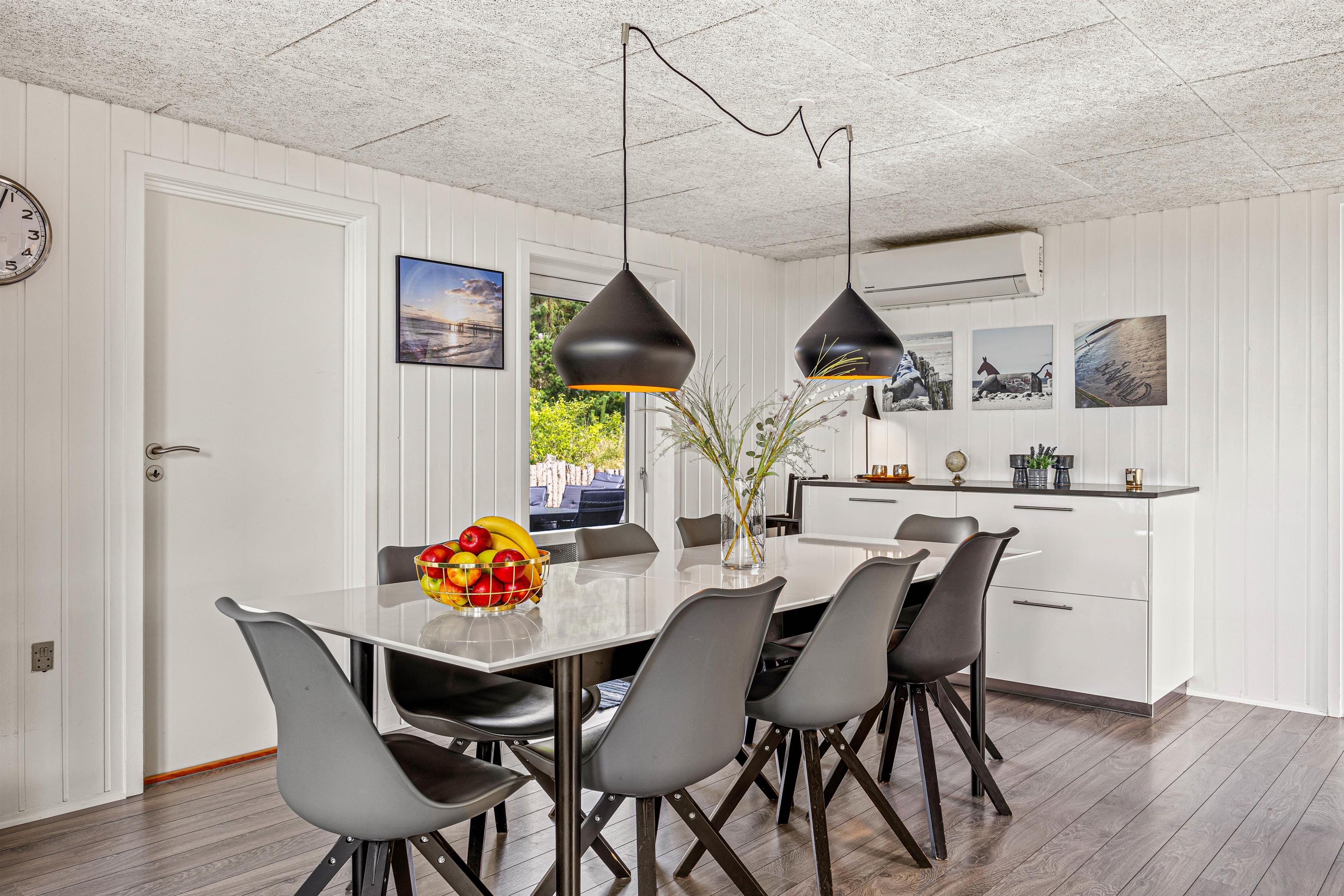 Gennem hele sommerhuset møder I en moderne indretning med komfortable møbler, som I vil finde jer godt tilpas i allerede ved jeres ankomst til sommerhuset.