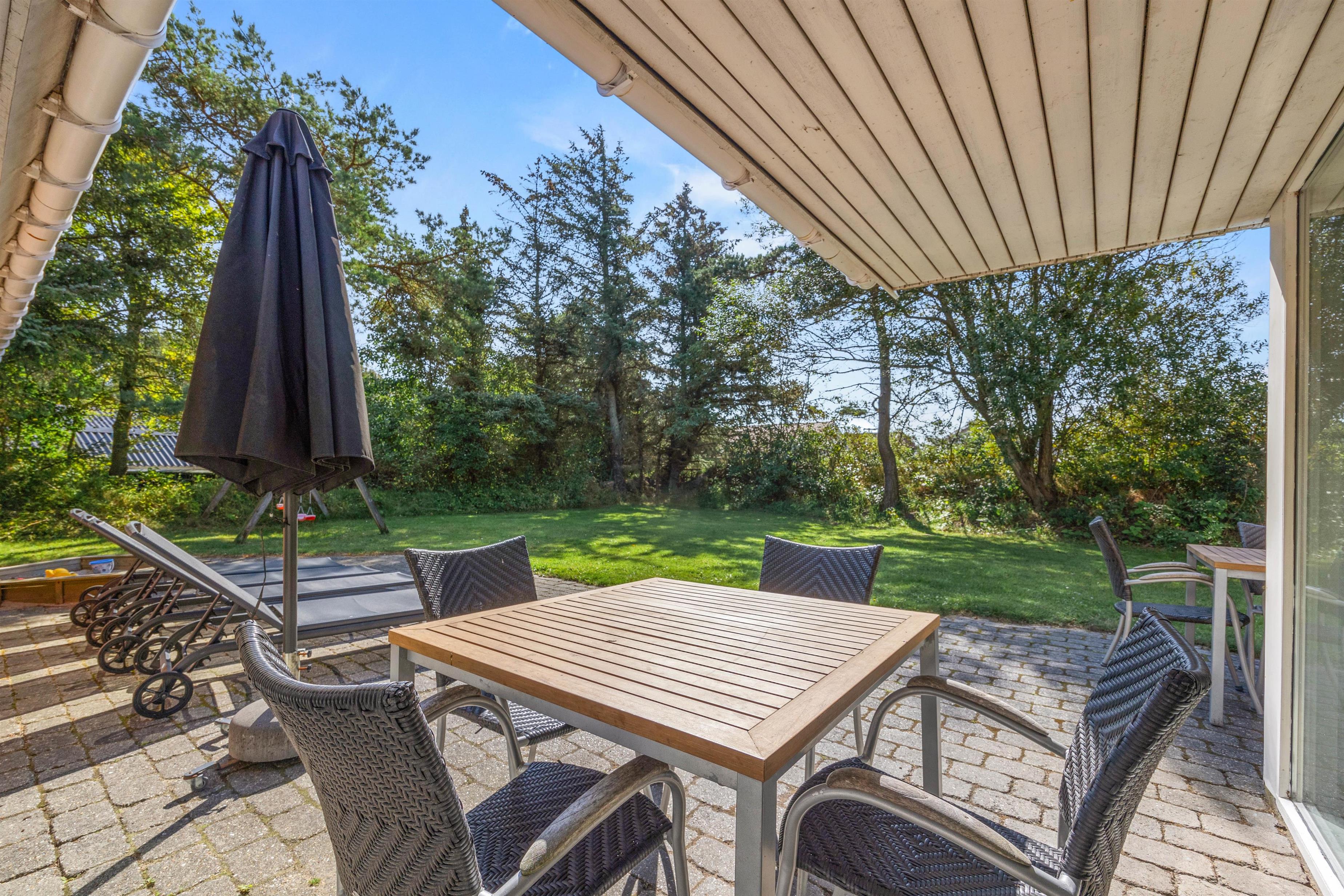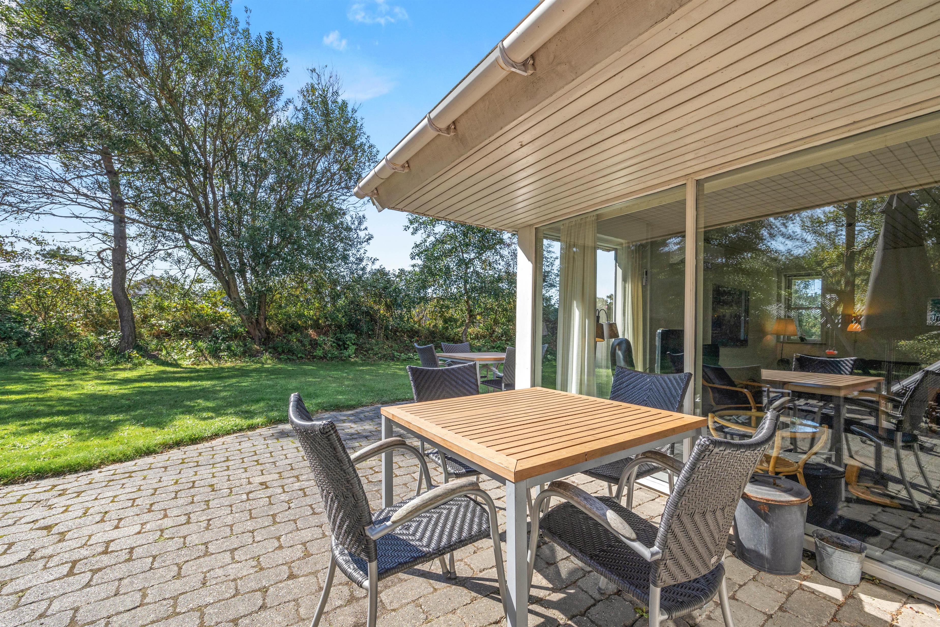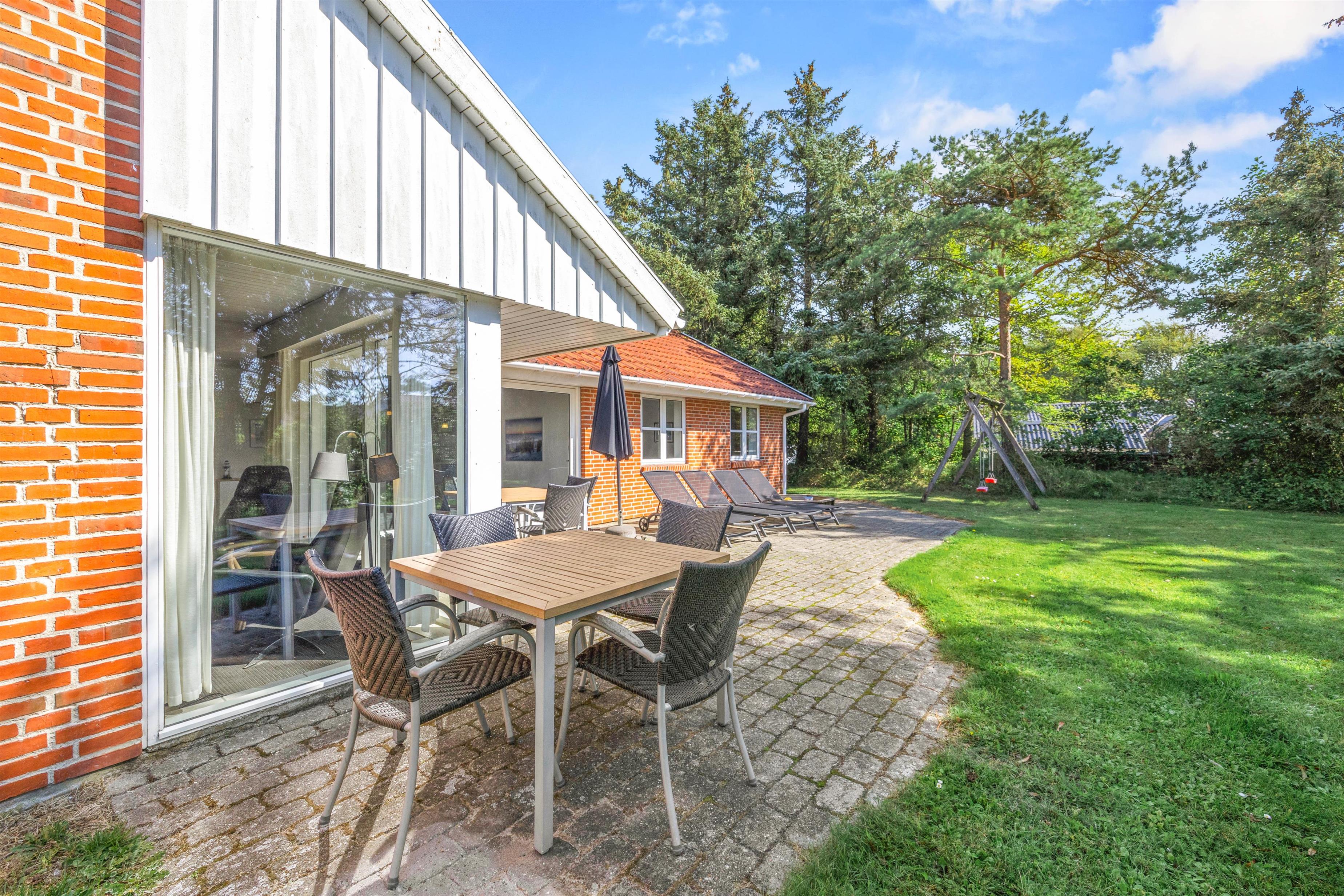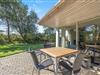 Fra opholdsrummet er der adgang til den flisebelagte terrasse, hvor havemøbler og liggestole venter på jer. Nyd en dejlig frokost i solen, solbad og lad børnene lege i sandkassen eller gynge op mod skyerne. Mens der leges, kan I tænde op i grillen. Afslut dejlige feriedage med en skøn sommermenu og kongespil på græsplænen.