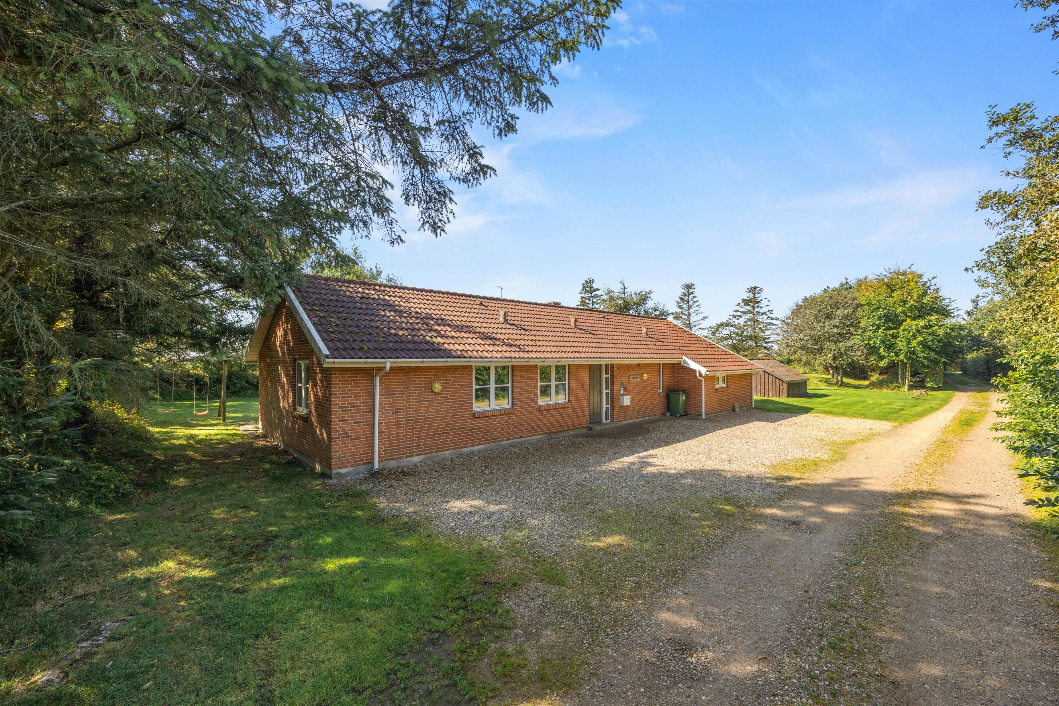 Sommerhuset på 154 m2 er beliggende på en stor naturgrund, der er afskærmet af de omkringliggende træer.