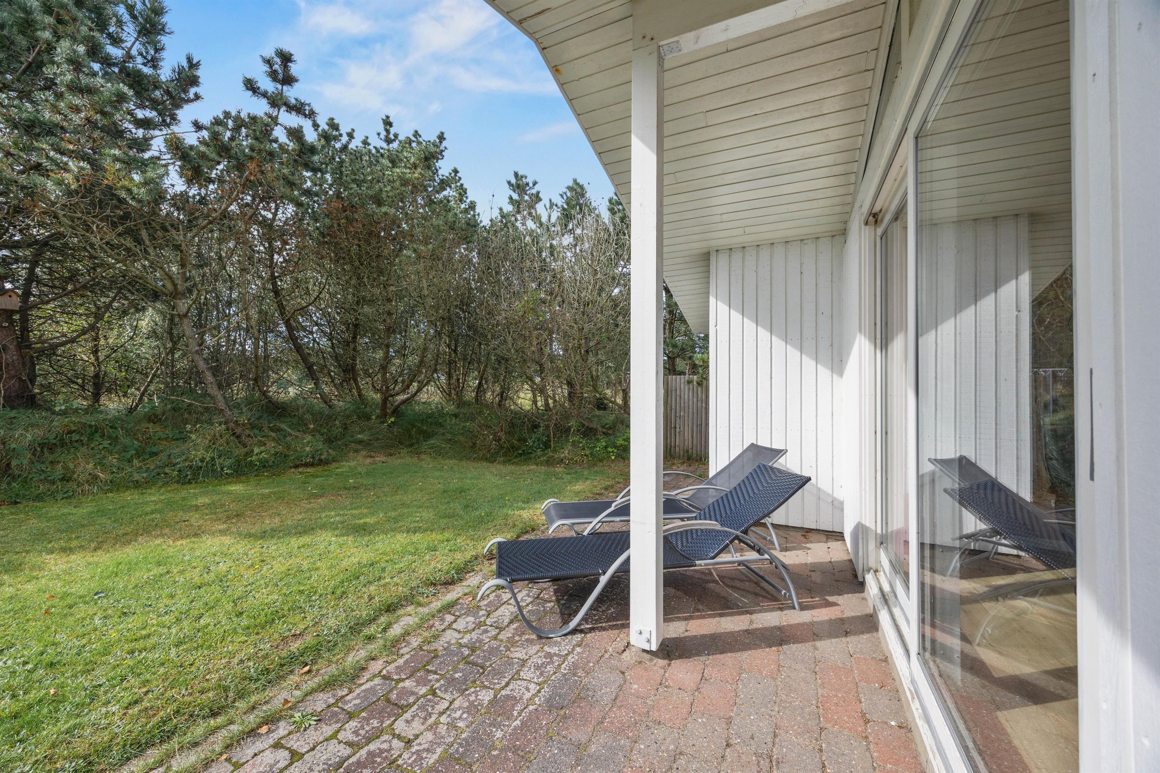 Fra stuen kan I komme direkte ud på terrassen, hvor I altid kan finde en dejlig plads – både i solen eller i skyggen under parasollen. Sæt jer godt til rette, nyd roen og lad ungerne lege på græsset. Naturgrunden er 1600 m2, så her kan I sagtens spille kongespil eller noget helt andet.