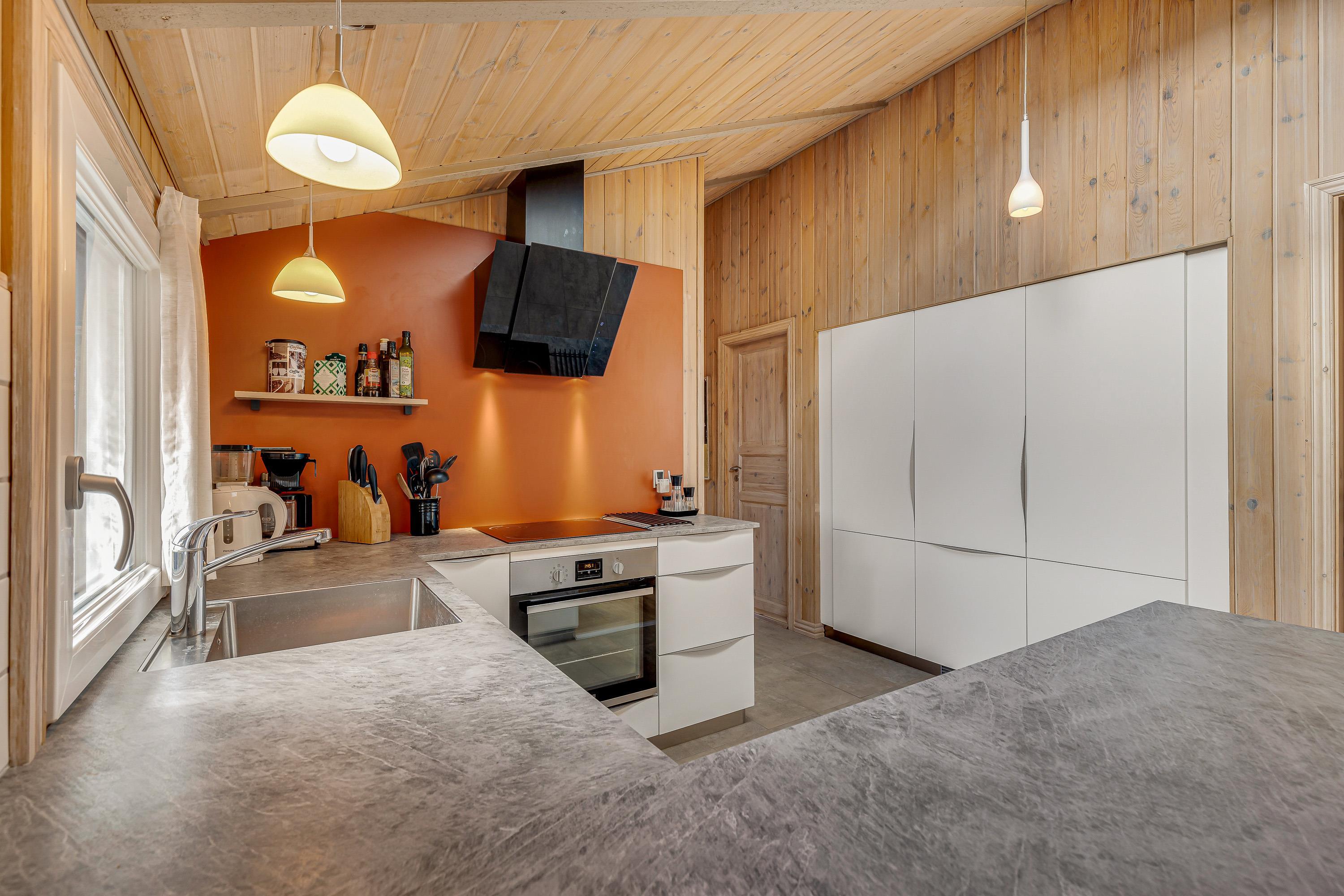 Huset har 2020 fået nyt moderne køkken, så her er der også mulighed for at være fælles om madlavningen.