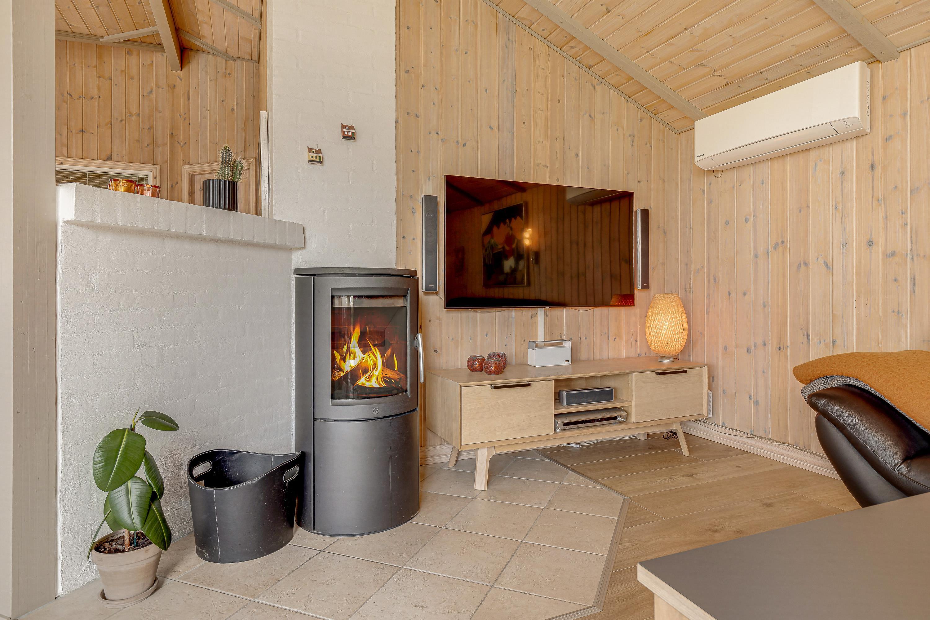 Det 125 kvadratmeter store sommerhus er et oplagt valg til den næste familieferie. Varme træfarver og nøje udvalgte dekorationer vil byde jer velkommen, og omgivelserne er åbne og lyse med store vinduer, der inviterer solen og den grønne natur indenfor.