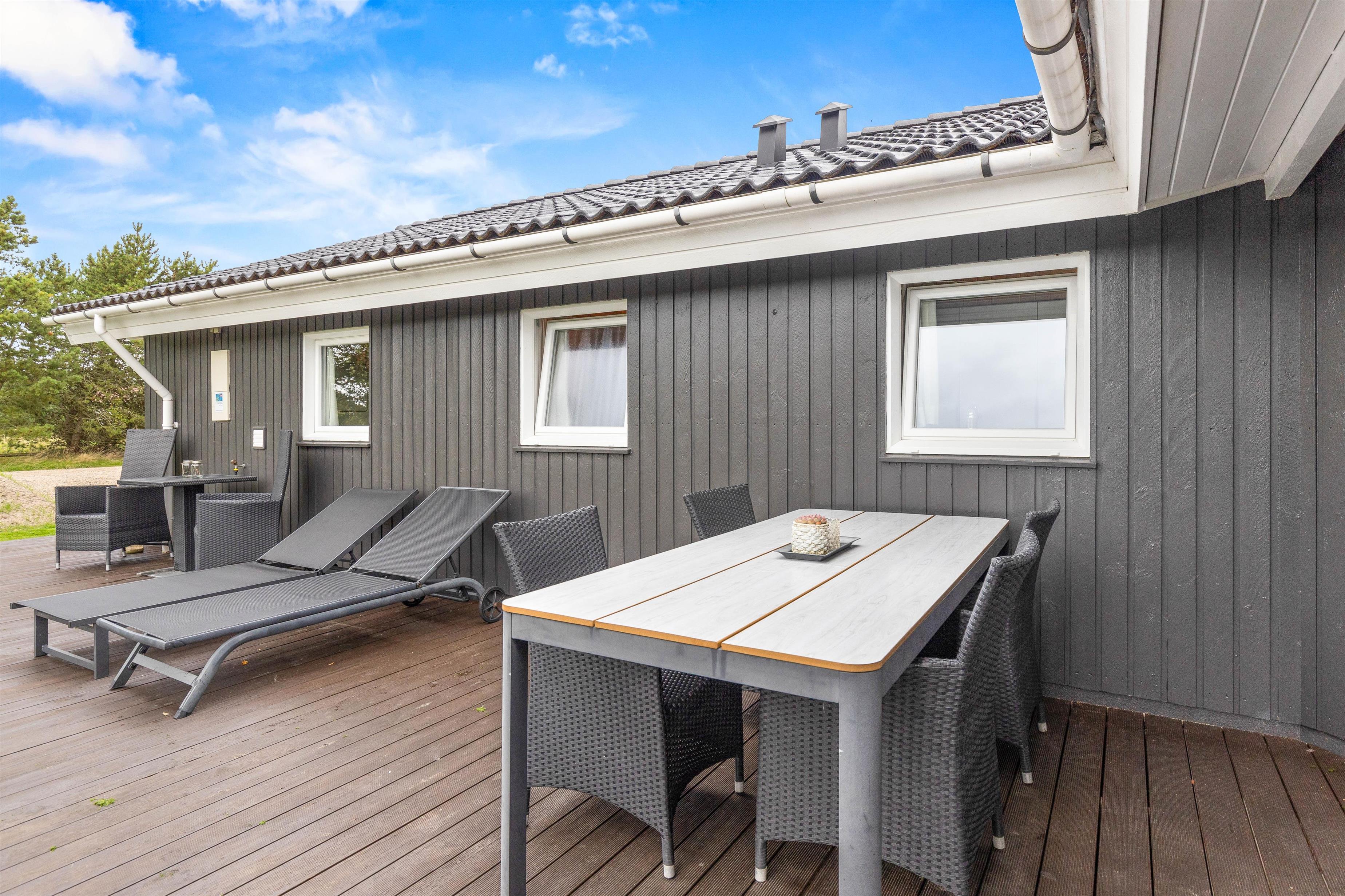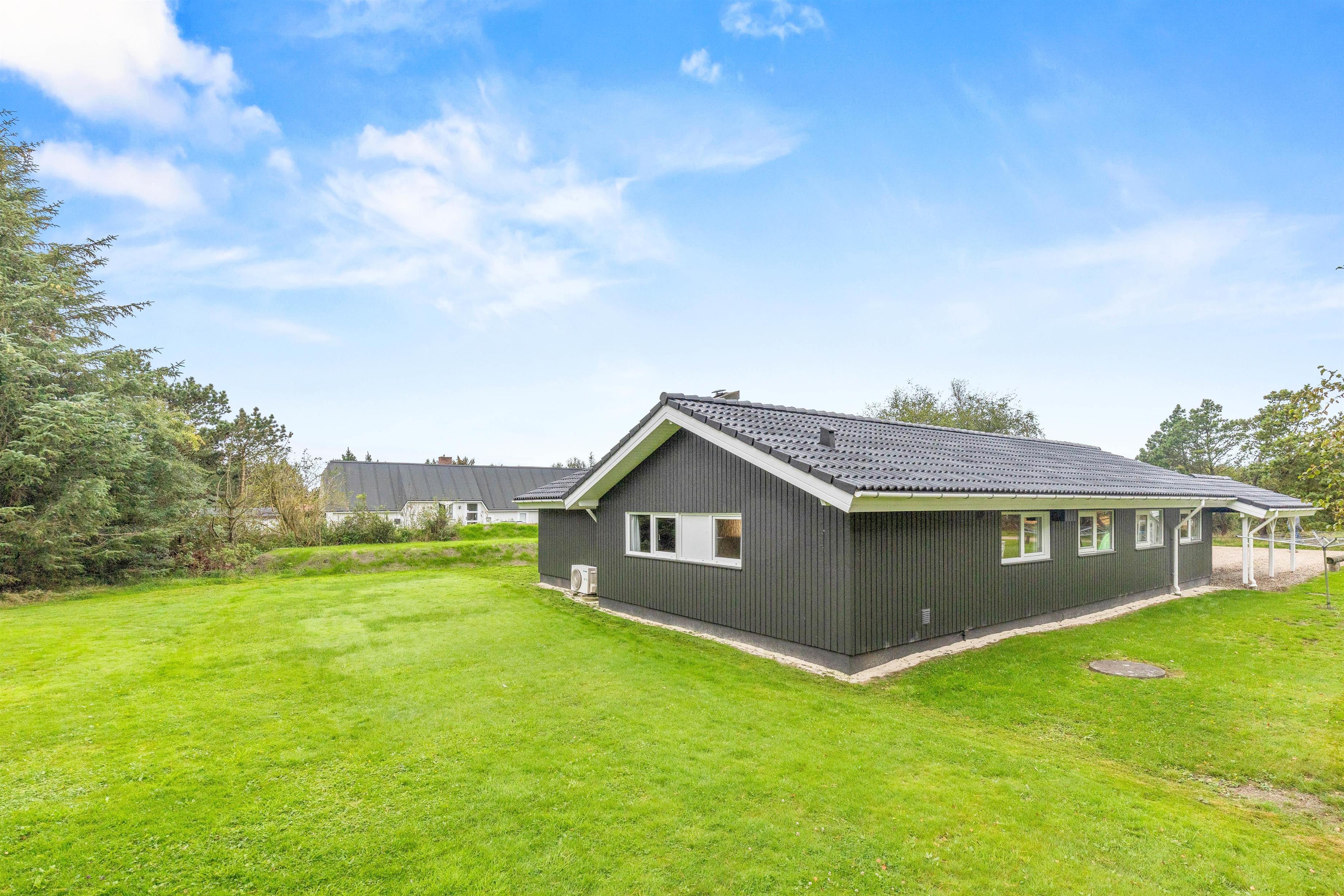 Med til huset hører et skønt udeareal med grøn græsplæne og åben, delvist overdækket terrasse, hvor der er god plads til at sole sig og nyde den friske havluft. Legetårnet, sandkassen og gyngestativet vil blive et sikkert hit blandt de mindste, og på den grønne plæne kan I spille bold og lege med hundene.