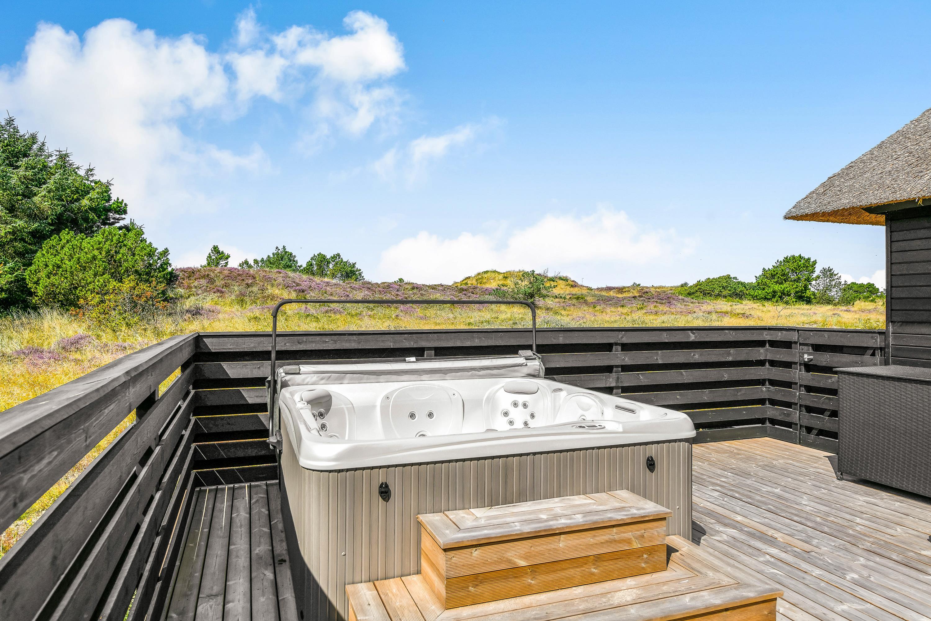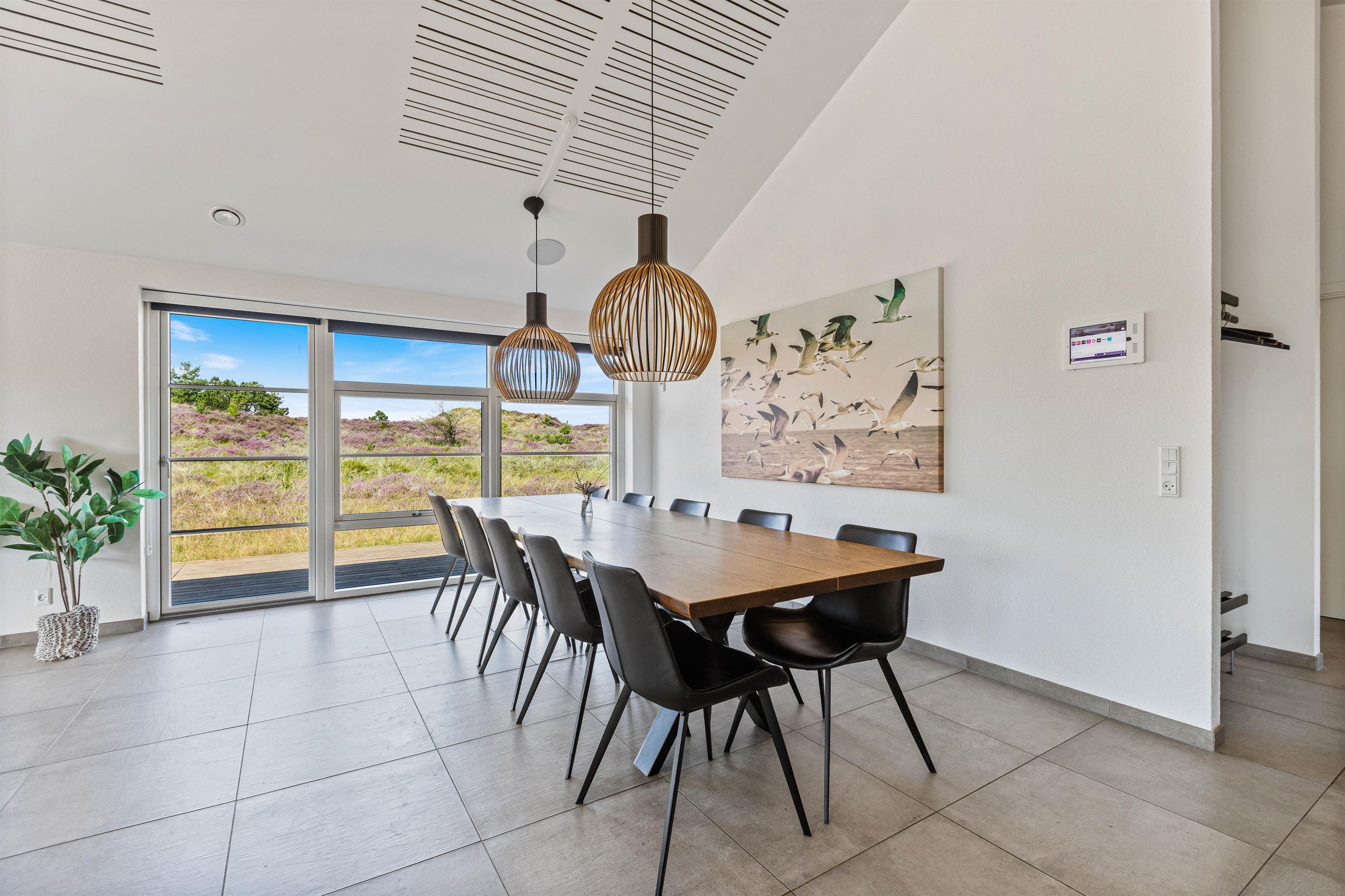 På Vestslugen 8 finder I alt, hvad feriehjertet begærer. Sommerhuset har ikke kun god plads til 10 personer og 1 hund, men er også udstyret med swimmingpool og wellness - og så er der kun 500 meter til stranden. Dette nybyggede (2019) luksushus er et sandt ferieparadis, som ligger frit på et stort fredet lyngareal med langt til naboerne og stadig tæt på by og strand.