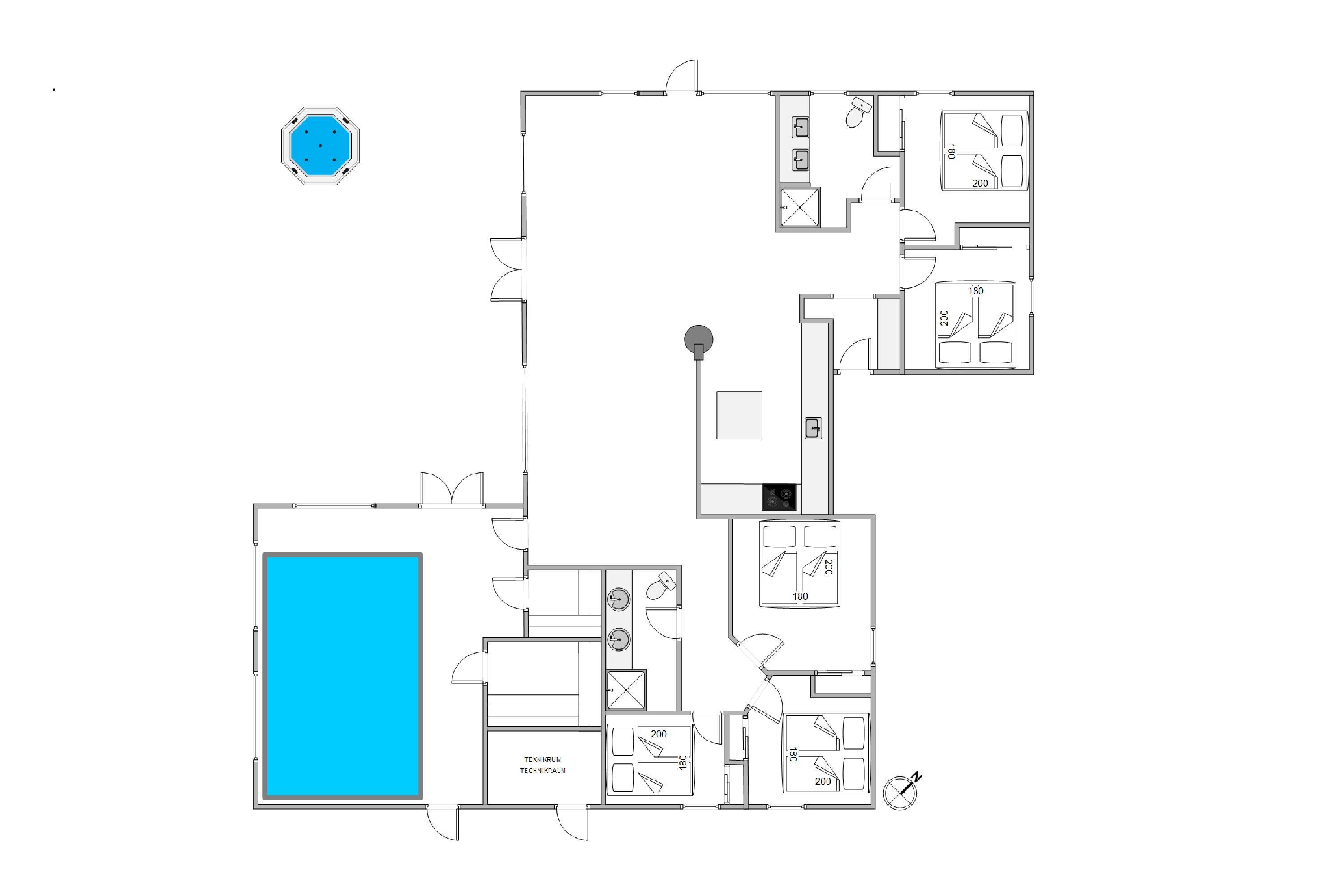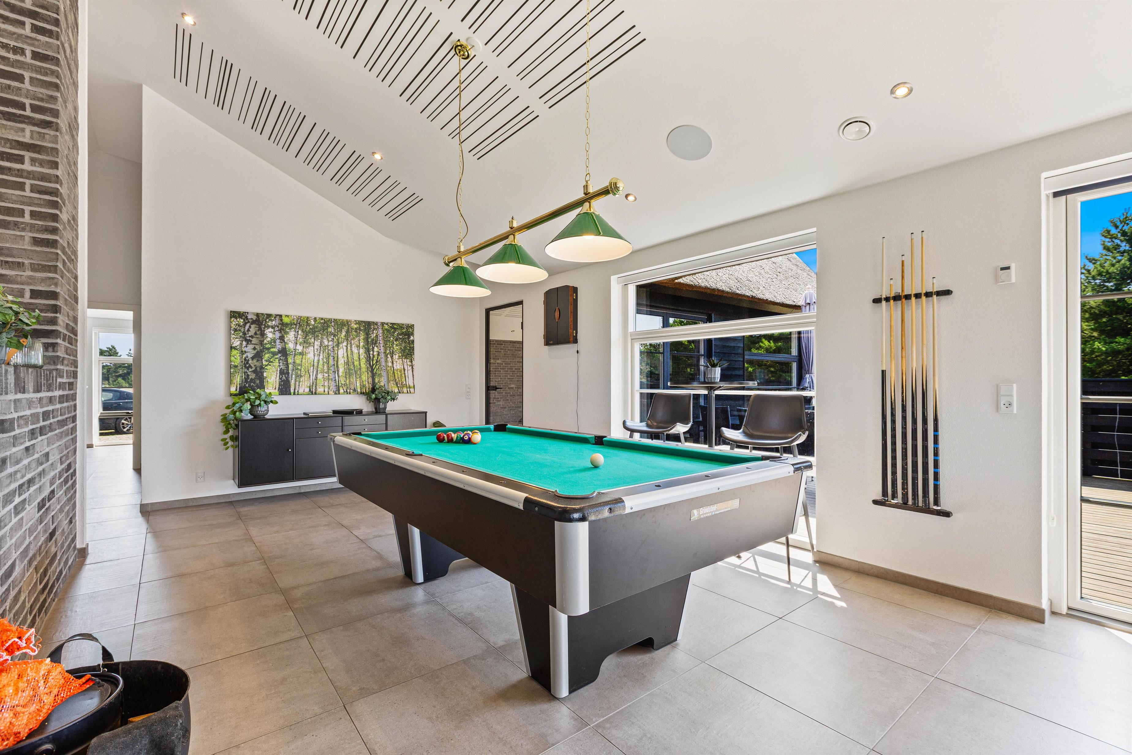 Det storslåede sommerhus i Blåvand råder blandt andet over en 30 kvadratmeter stor indendørs swimmingpool, et udendørs spabad til 4 personer og en stor sauna. Ligegyldigt, om I skal holde ferie med familien og børnene eller med vennerne, er I garanteret underholdning for alle her. Efter en forfriskende dukkert kan I samles til fælles madlavning i det veludstyrede køkken.