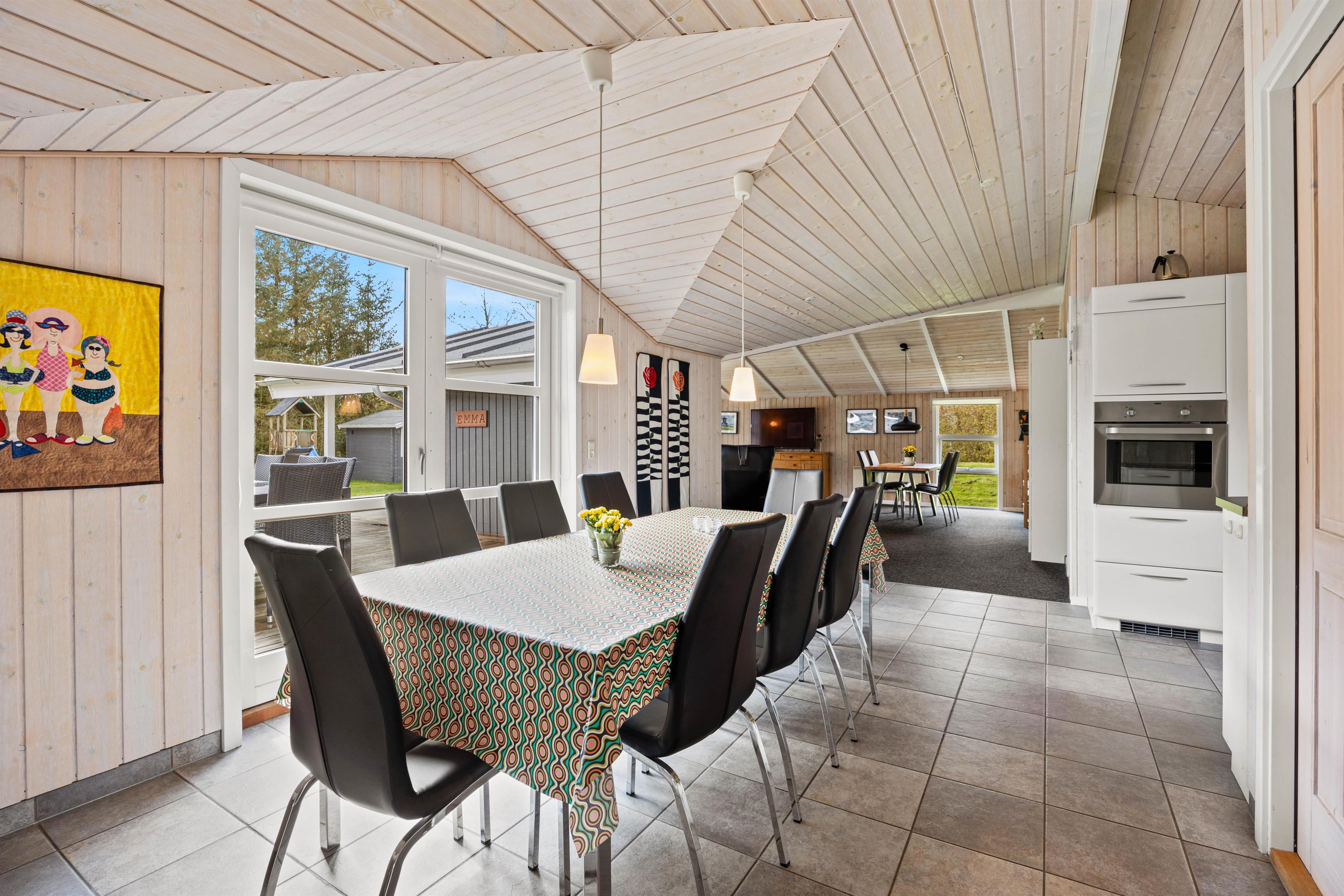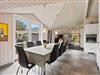 Lige fra I træder ind i det store bryggers med god plads til både sko og overtøj og videre ind i køkkenet, kan I fornemme den gode indretning uden spildplads. Køkkenet er udstyret med opvaskemaskine, mikroovn og ovn i løftehøjde og har god plads, så flere kan hjælpe med lækre ferieanretninger. Tæt på står spisebordet og der er også direkte udgang til terrassen, så maden nemt kan bæres udenfor.
