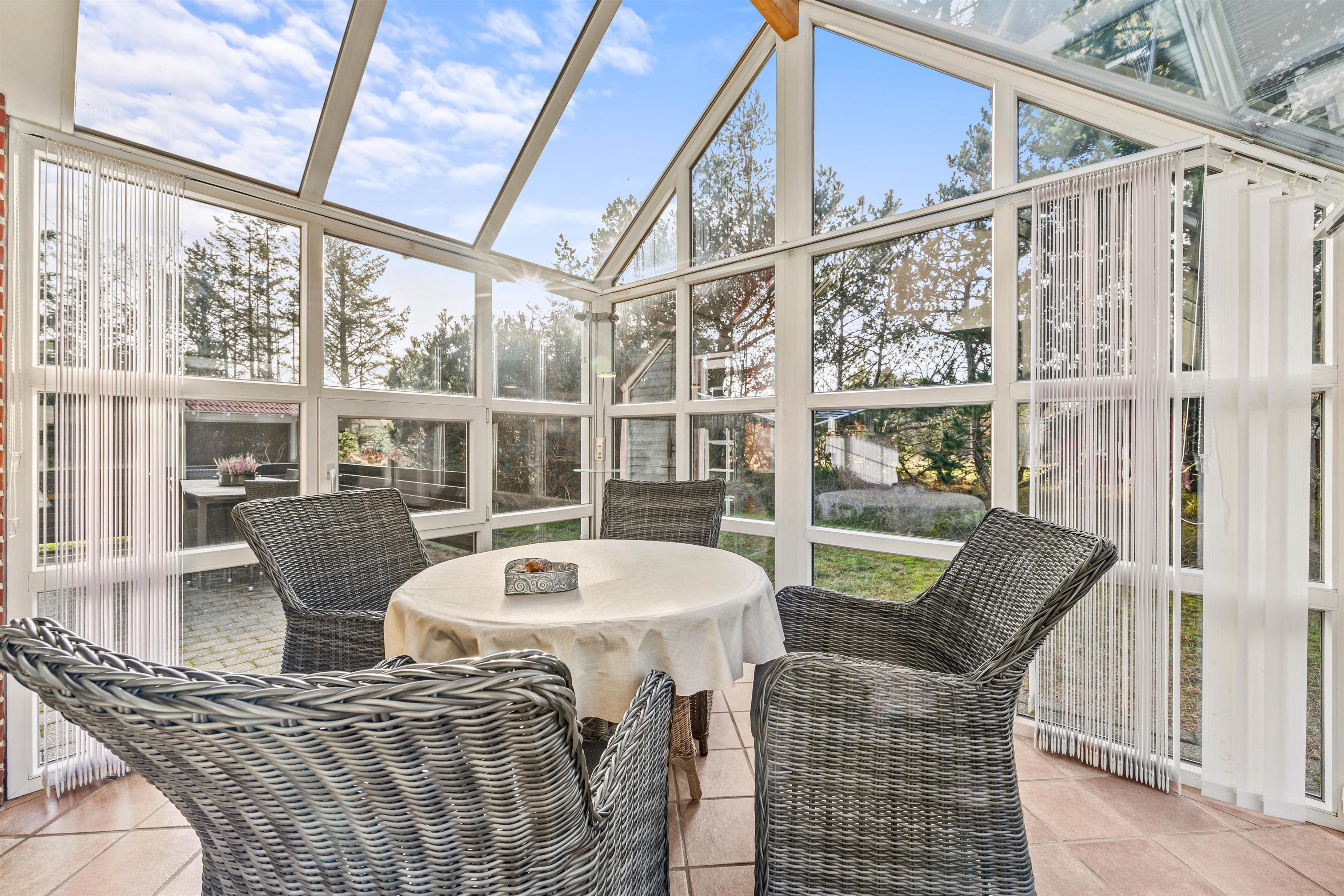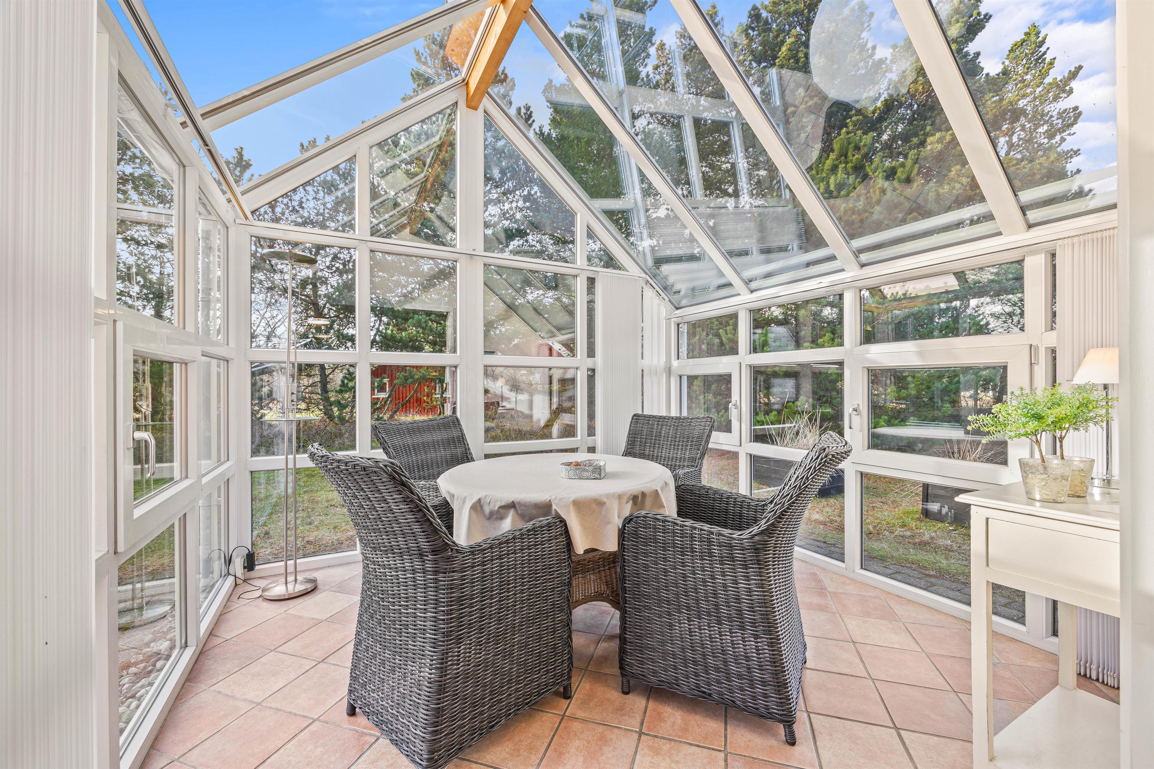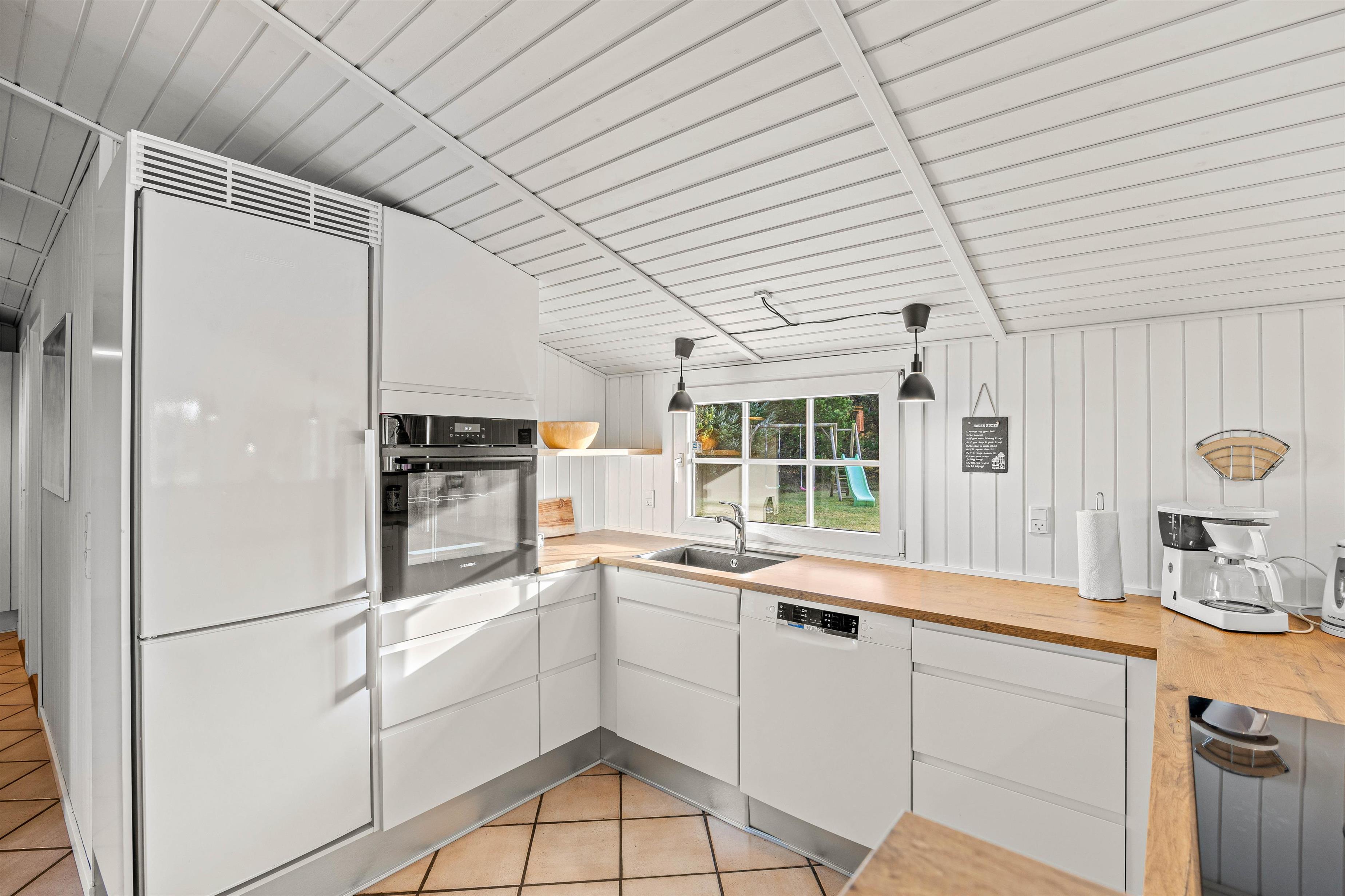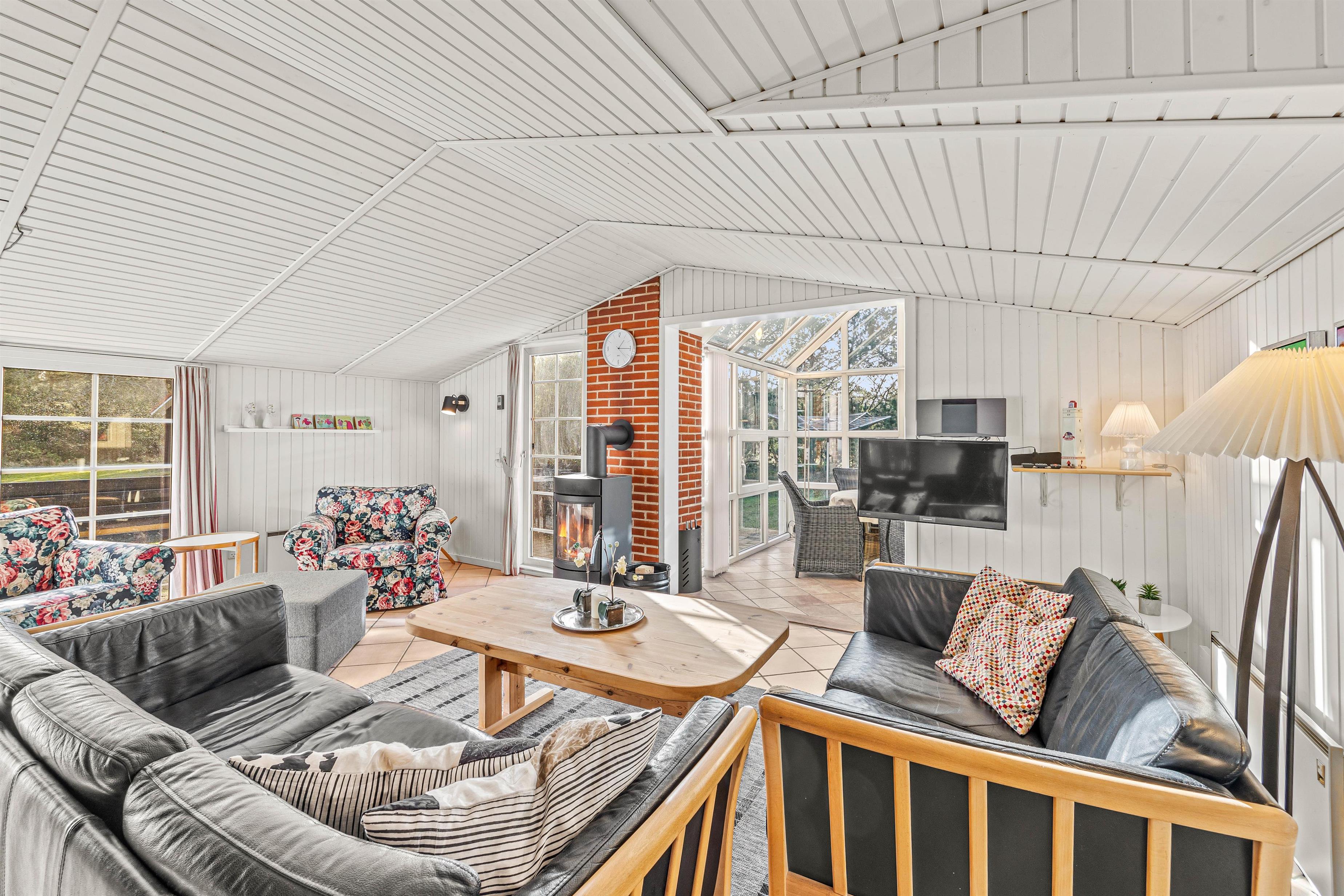 For at komme ud til den flotte glastilbygning med det fantastiske lysindfald skal I først forbi det rummelige og velindrettede køkken, der er udstyret med alt, hvad I skal bruge for at tilberede en god middag til familien inklusive opvaskemaskine til opvasken bagefter. Dernæst skal I igennem stuen, der ligger i åben forbindelse til køkken og spiseplads, så I kan hygge jer sammen eller hver for sig foran brændeovnen, hvis knitrende flammer og varme fuldender feriestemningen.