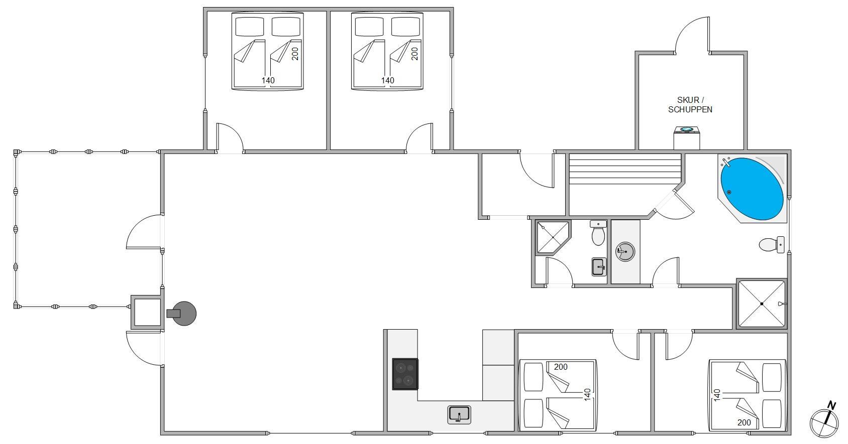 Når feriedagen lakker mod enden, og I trænger til at samle ny energi til næste feriedag, kan I søge mod sommerhusets 4 soverum, som alle er med dobbeltsenge. I sommerhuset venter jer også 2 badeværelser, der begge er med gulvvarme, og det ene er med både 2-personers spa og sauna. Her får I altså velvære for krop og sjæl. Feriehuset er ligeledes udstyret med både vaskemaskine og tørretumbler.