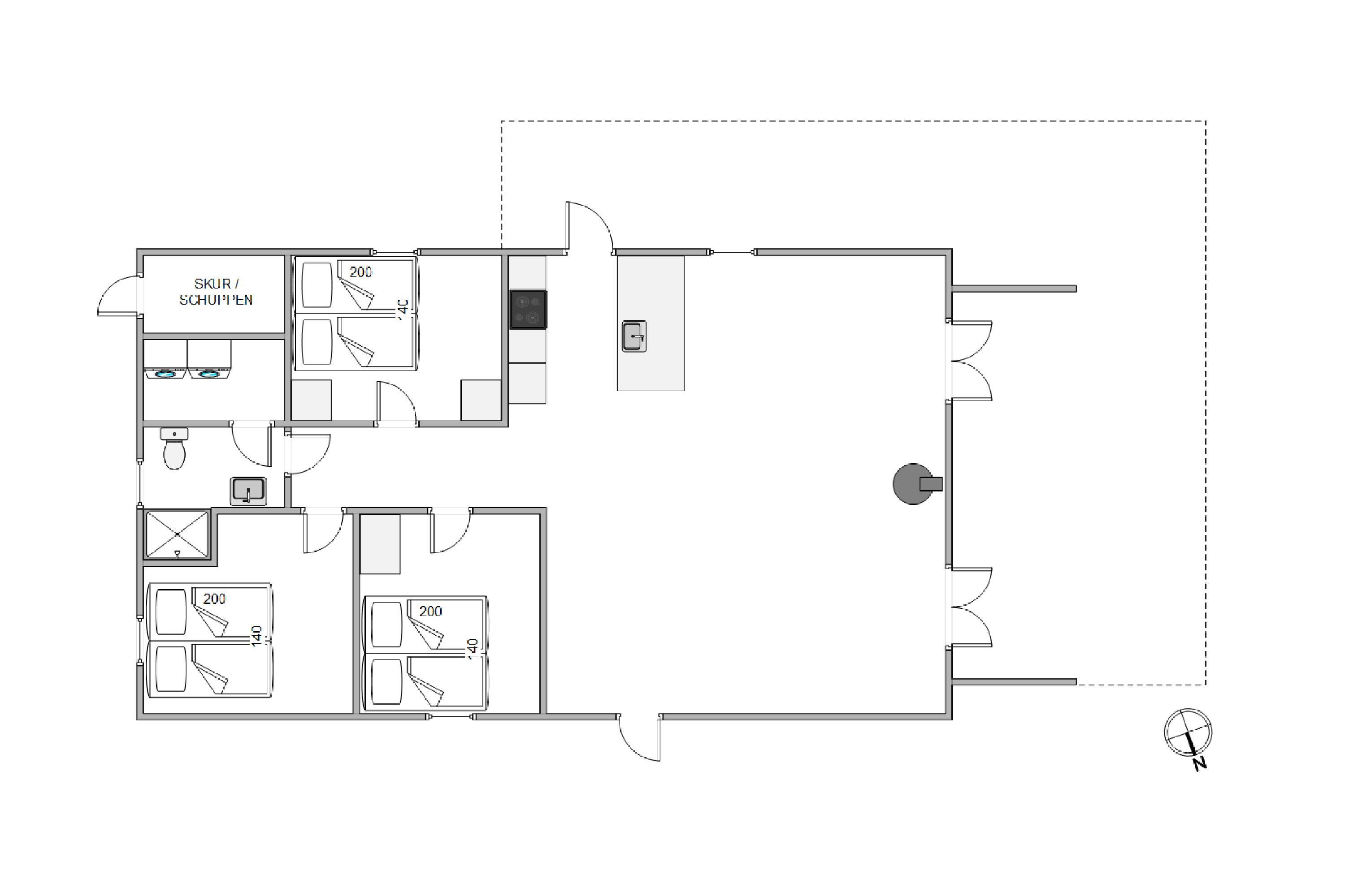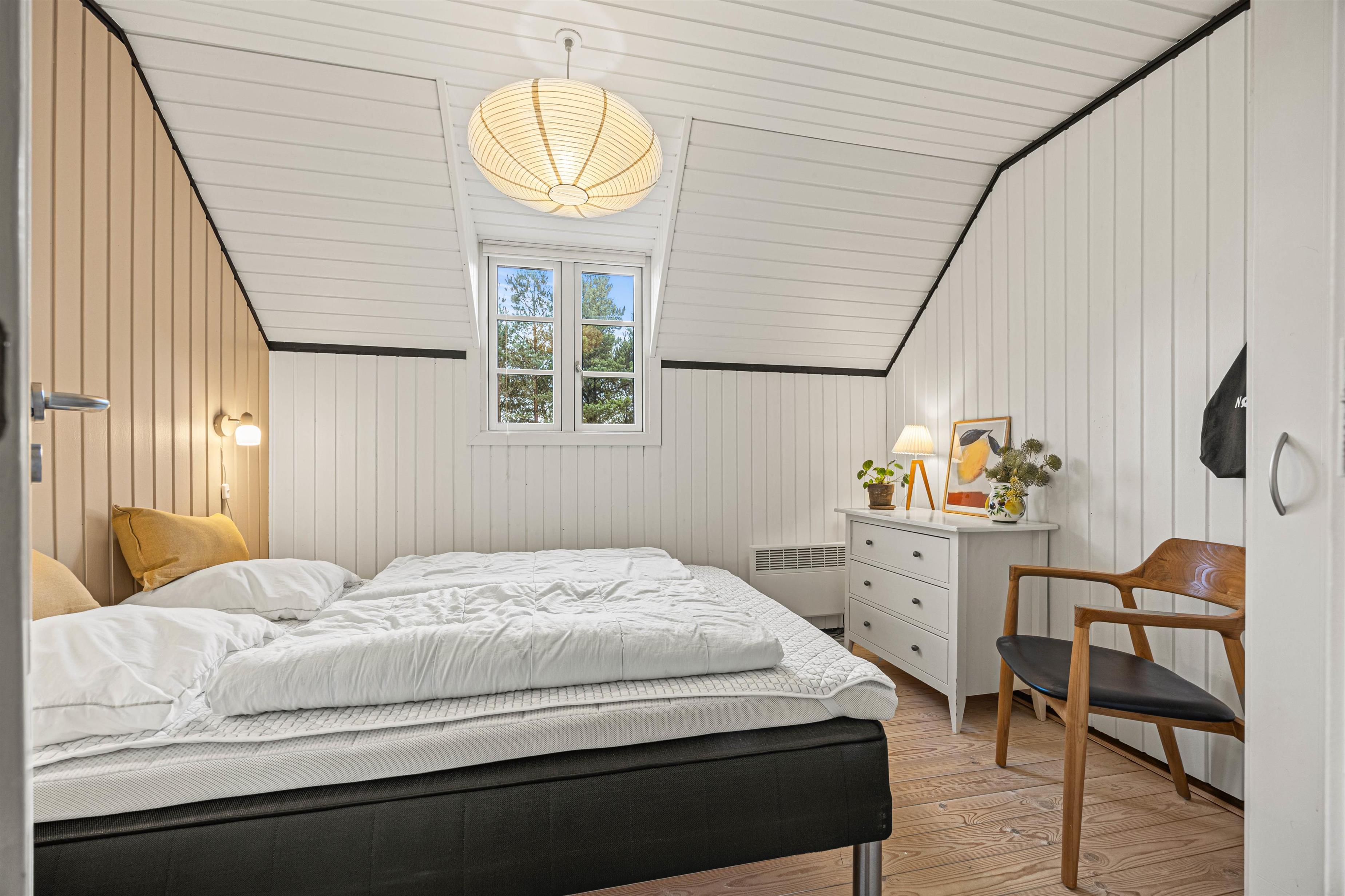 Resten af sommerhuset byder på tre gode soveværelser og ét badeværelse med gulvvarme, hvorfra I har adgang til et lille vaskerum med vaskemaskine og tørretumbler. Soveværelserne er alle indrettet med en dobbeltseng, 140x200, og her kan I få ladet batterierne op efter dejlig grillaften på terrassen.