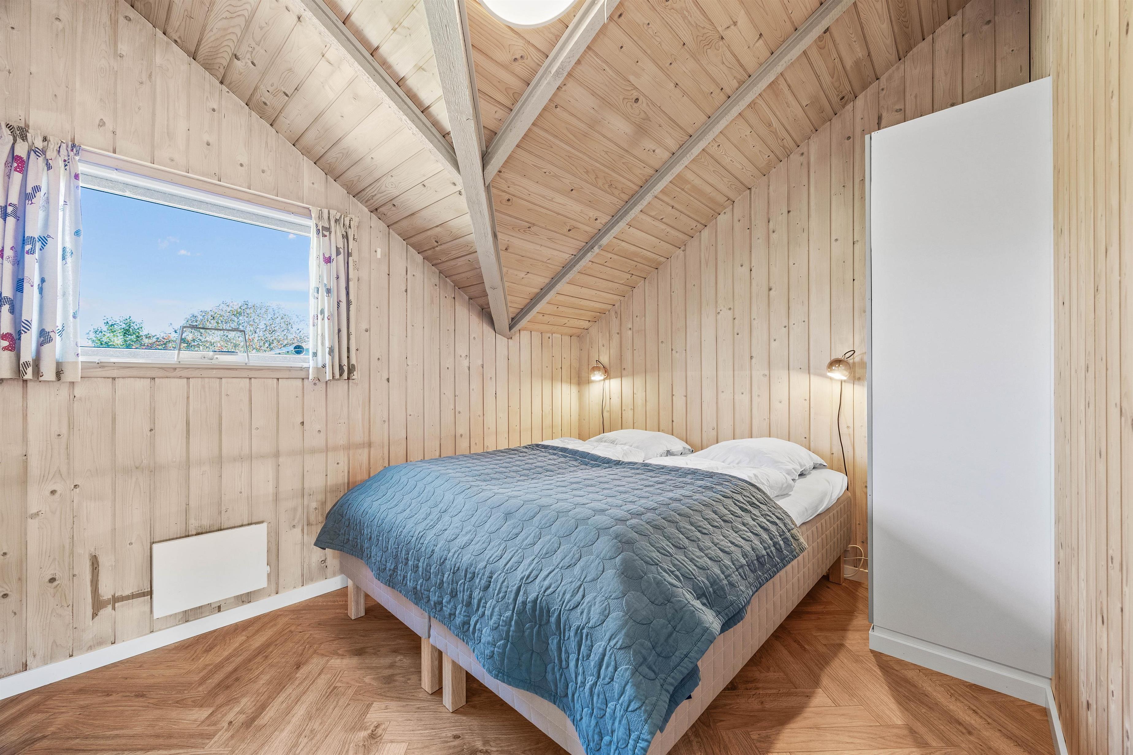 Til sommerhuset hører desuden en nyere tilbygning, som indeholder et stort værelse på 18 m² med plads til to voksne og to børn – ideelt til feriens børne- eller teenagegruppe. Tilbygningen har eget toilet og en skrivebordsplads, som giver mulighed for kreative eller faglige aktiviteter, mens resten af familien nyder hovedhuset.