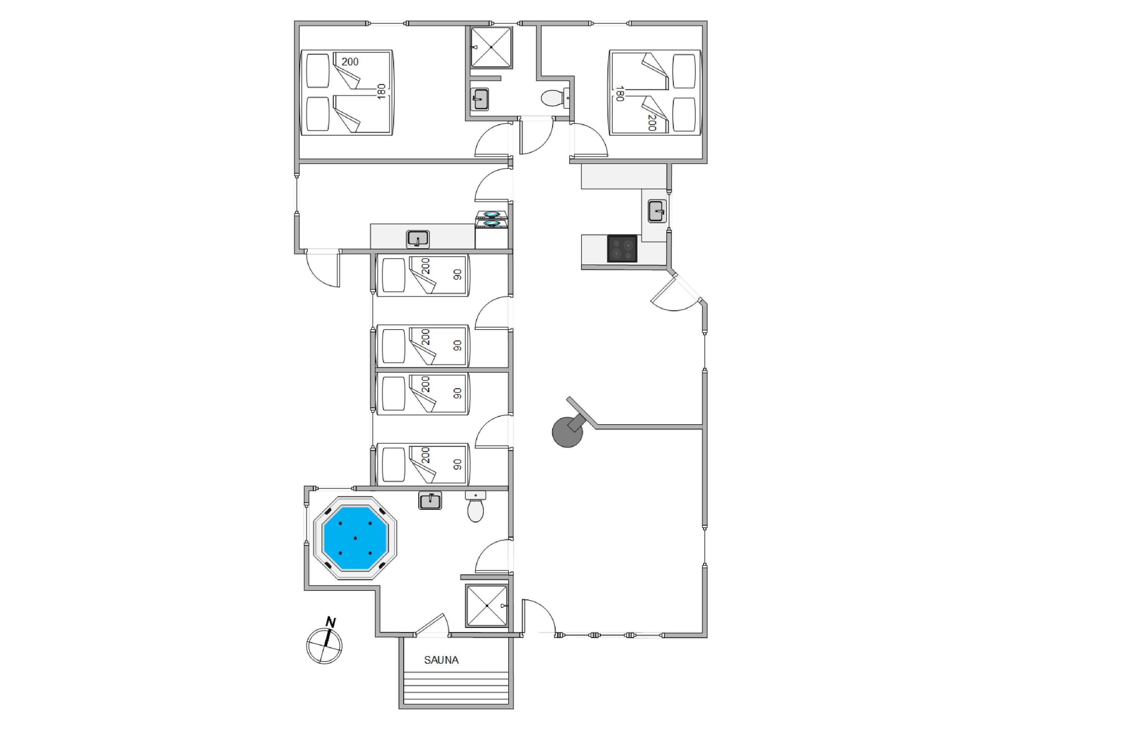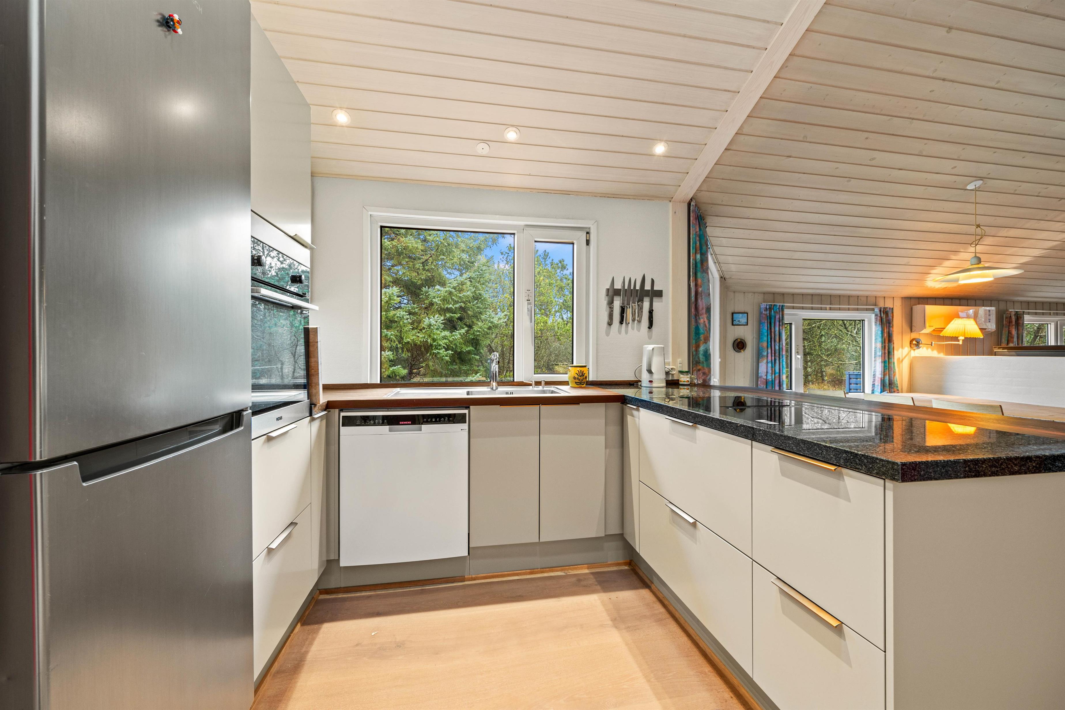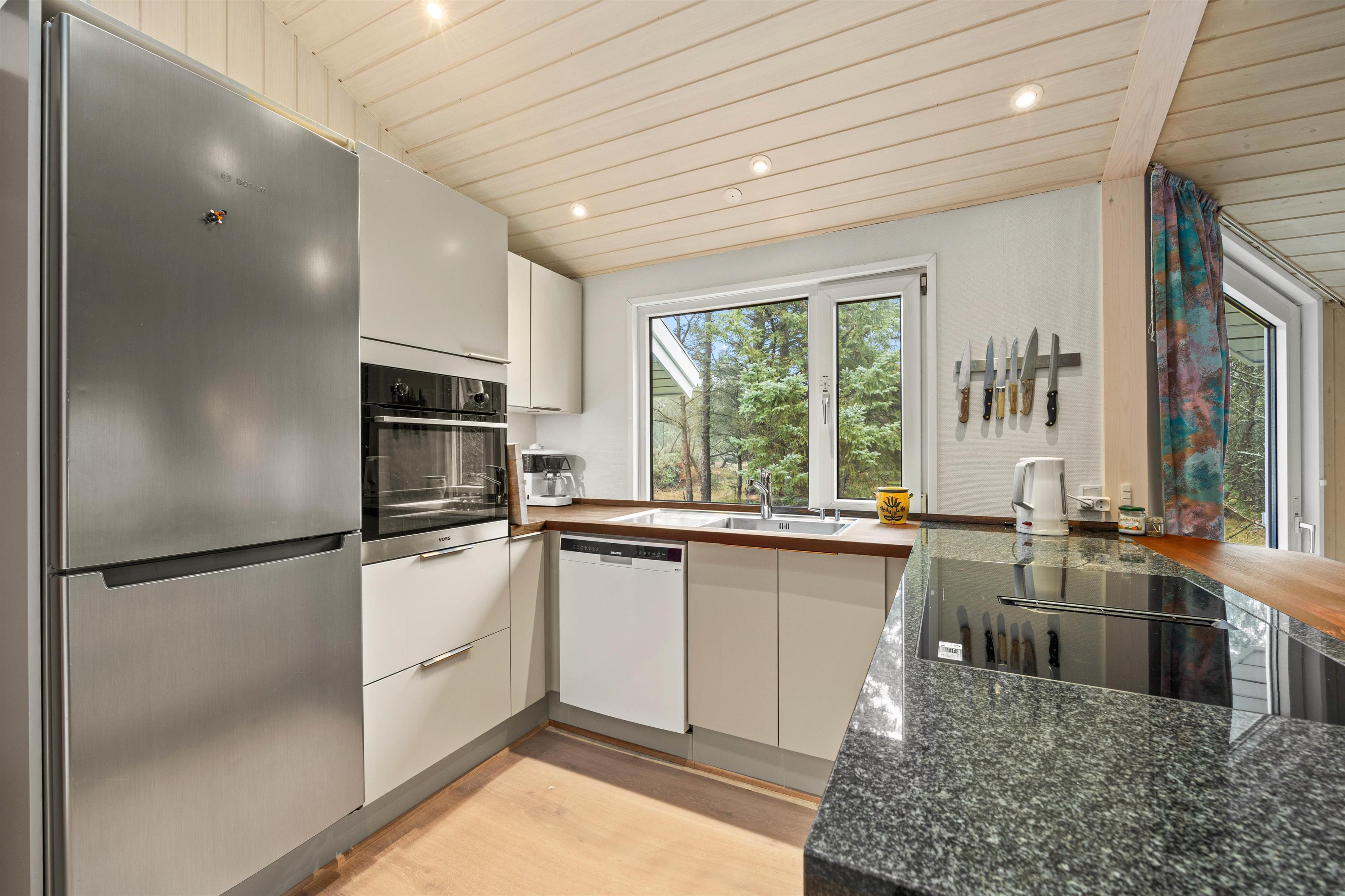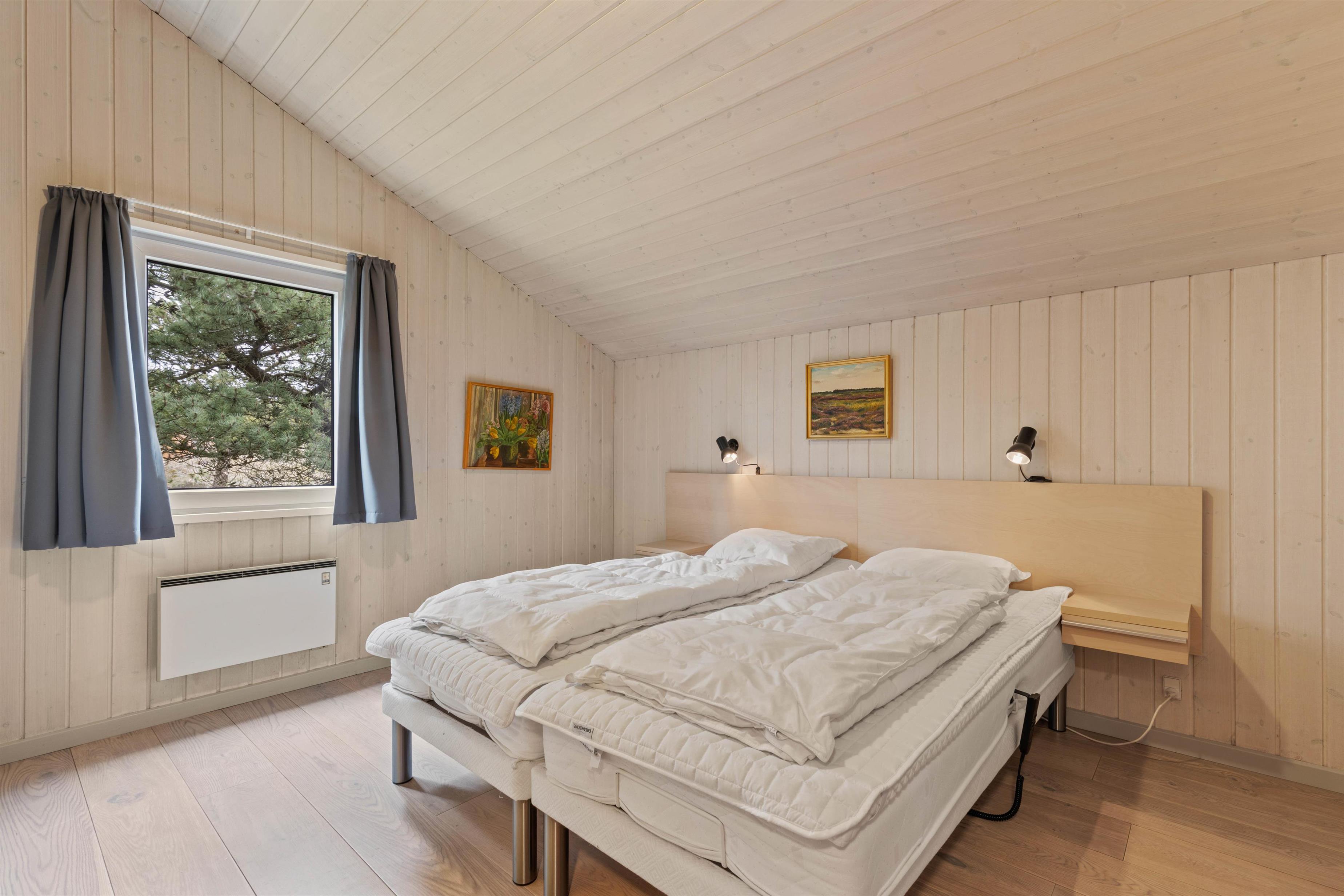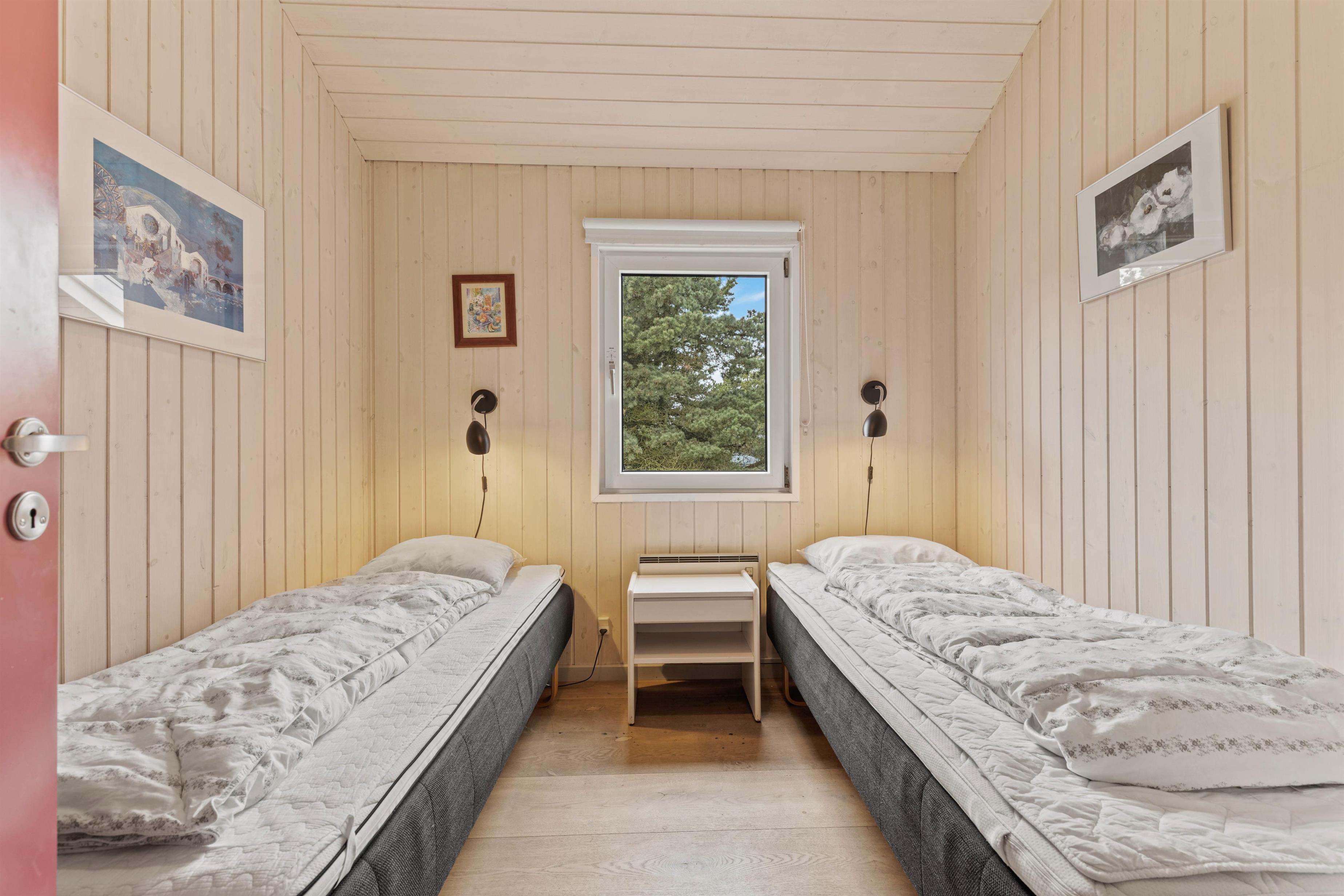 På sommerhusets 128 kvadratmeter finder I desuden 4 gode soveværelser, der er indrettet med i alt 2 dobbeltsenge og 4 enkeltsenge, hvor I kan få jeres skønhedssøvn og samle ny energi i løbet af ferien. Om morgenen er der ingen grund til bekymring om hverken kø til badeværelset eller kolde fødder; sommerhuset har nemlig hele 2 badeværelser, der begge er udstyret med gulvvarme.