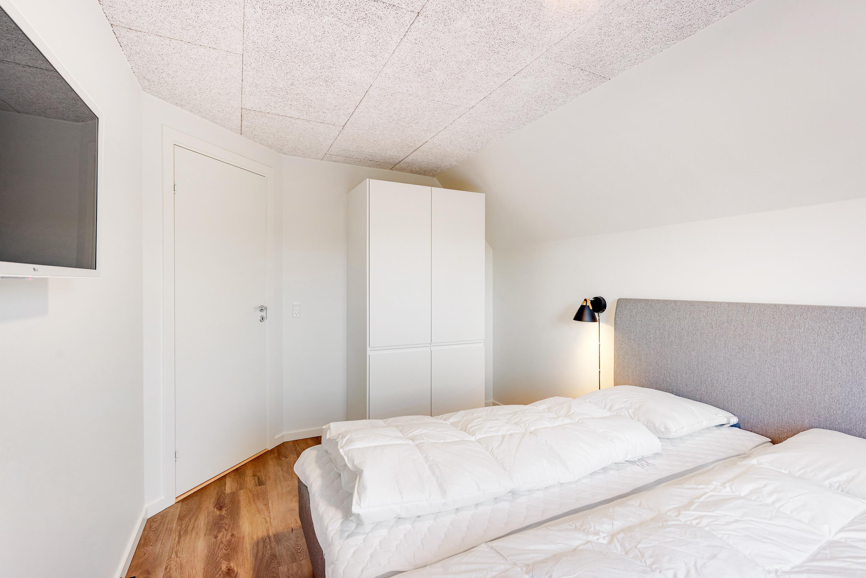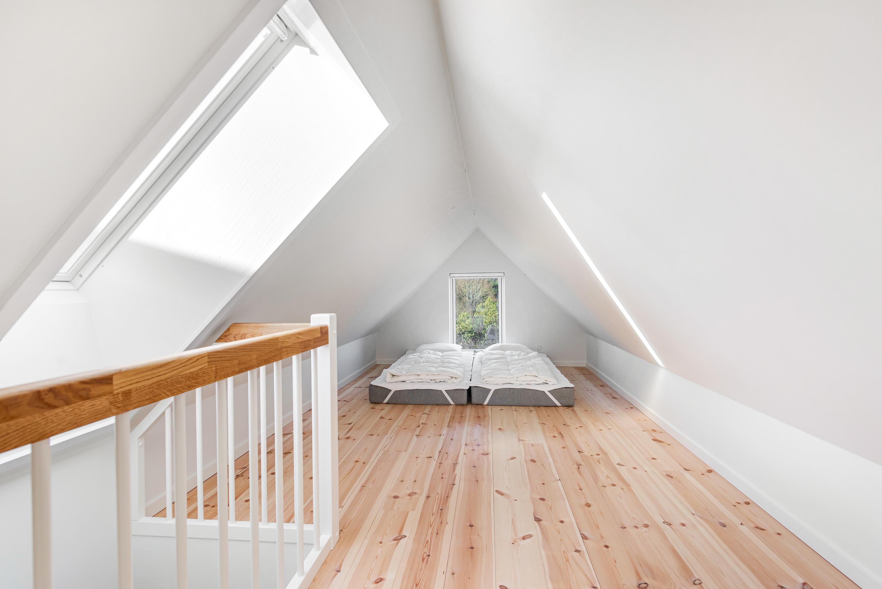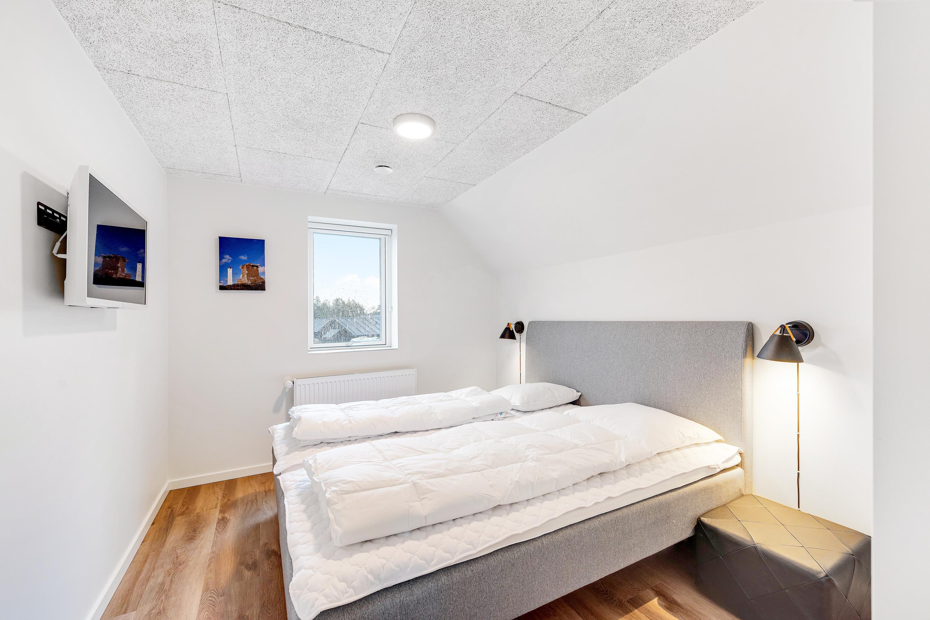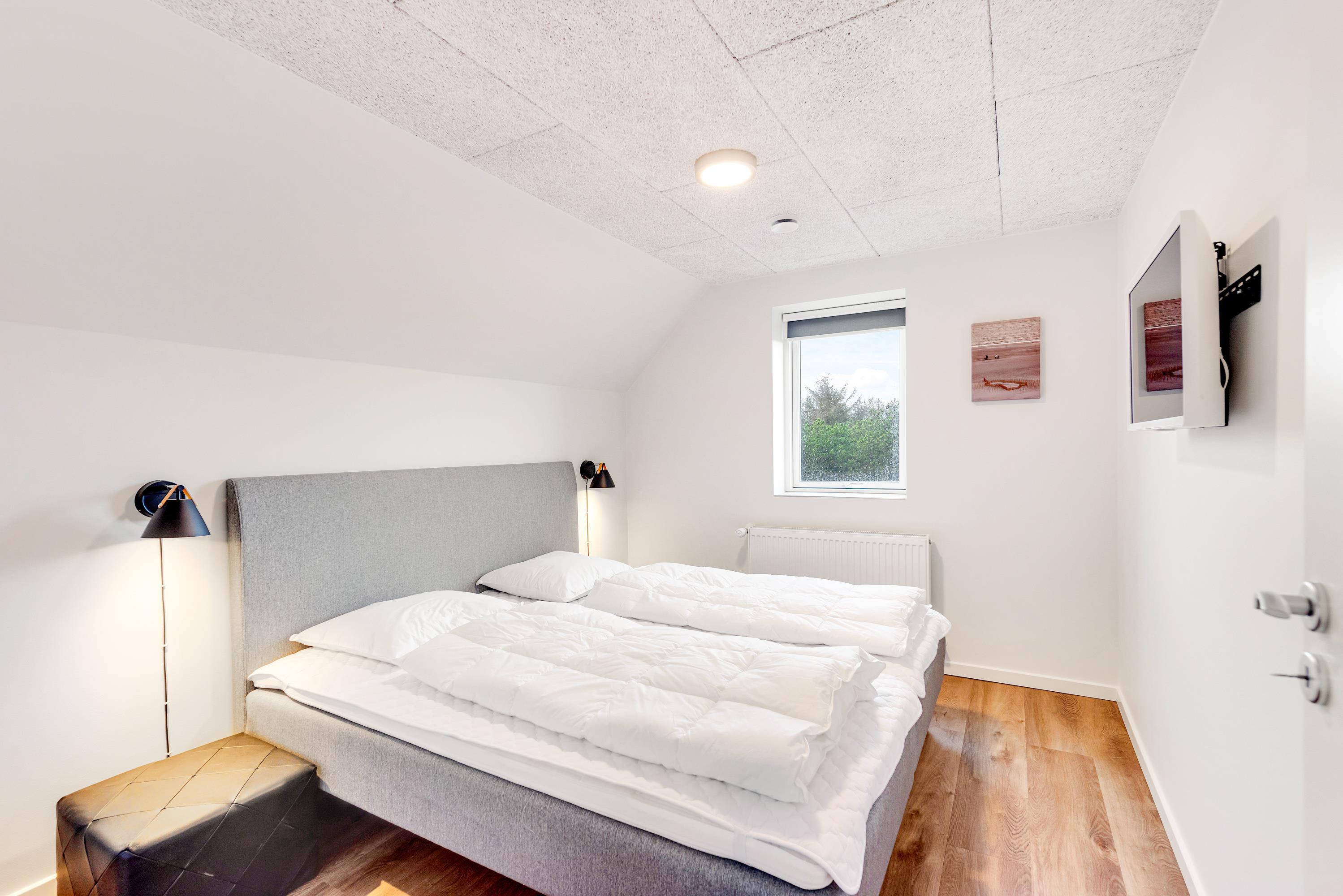 Ferieboligens 3 soveværelser er alle indrettet med dobbeltseng og eget fjernsyn, og der er lavet en ekstra hems til ungerne med legesager og madrasser. Dertil kommer hele 3 badeværelser, det ene sågar med en skøn infrarød sauna, hvor I kan få varmen efter en gåtur i den friske havluft.