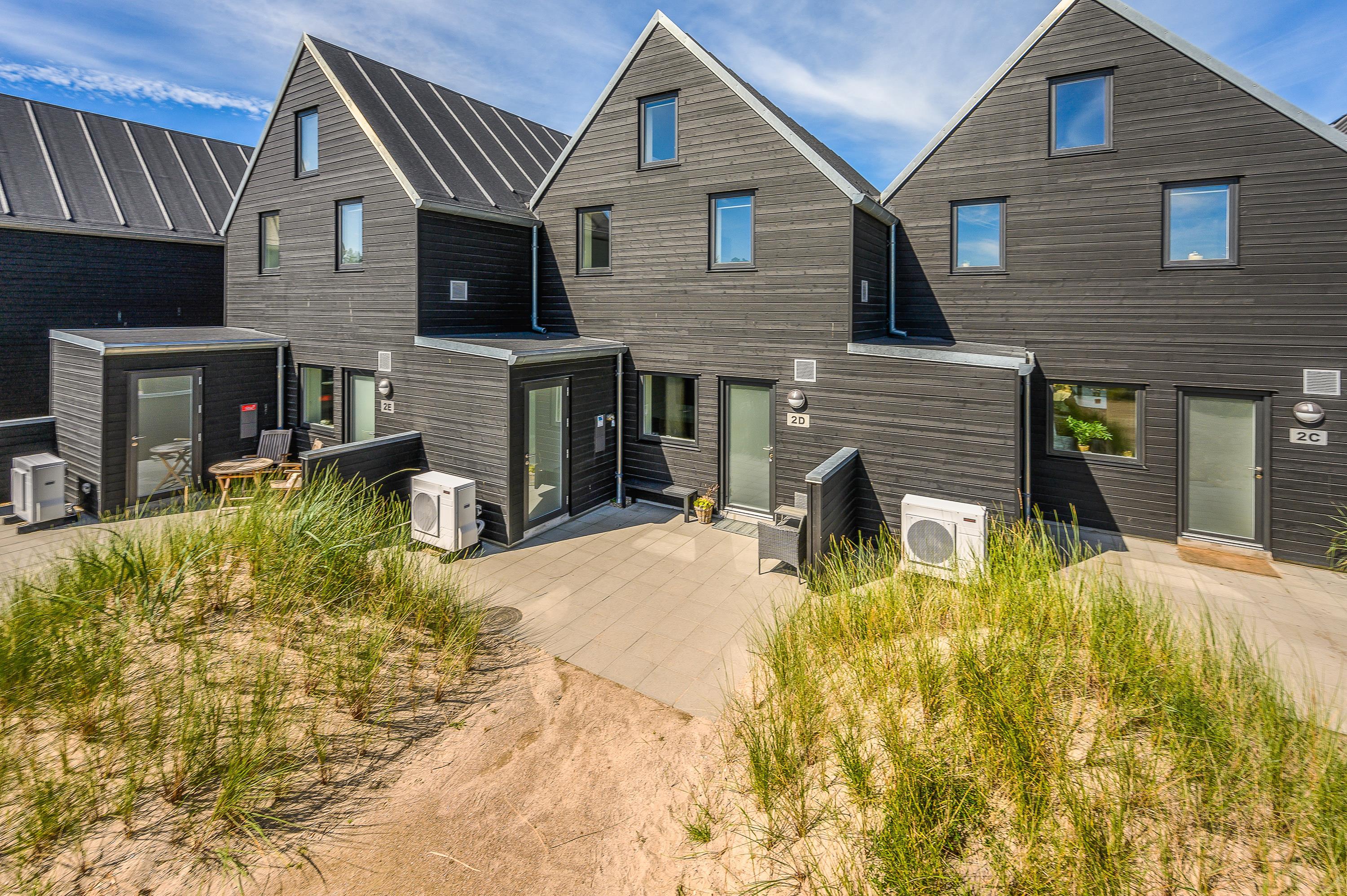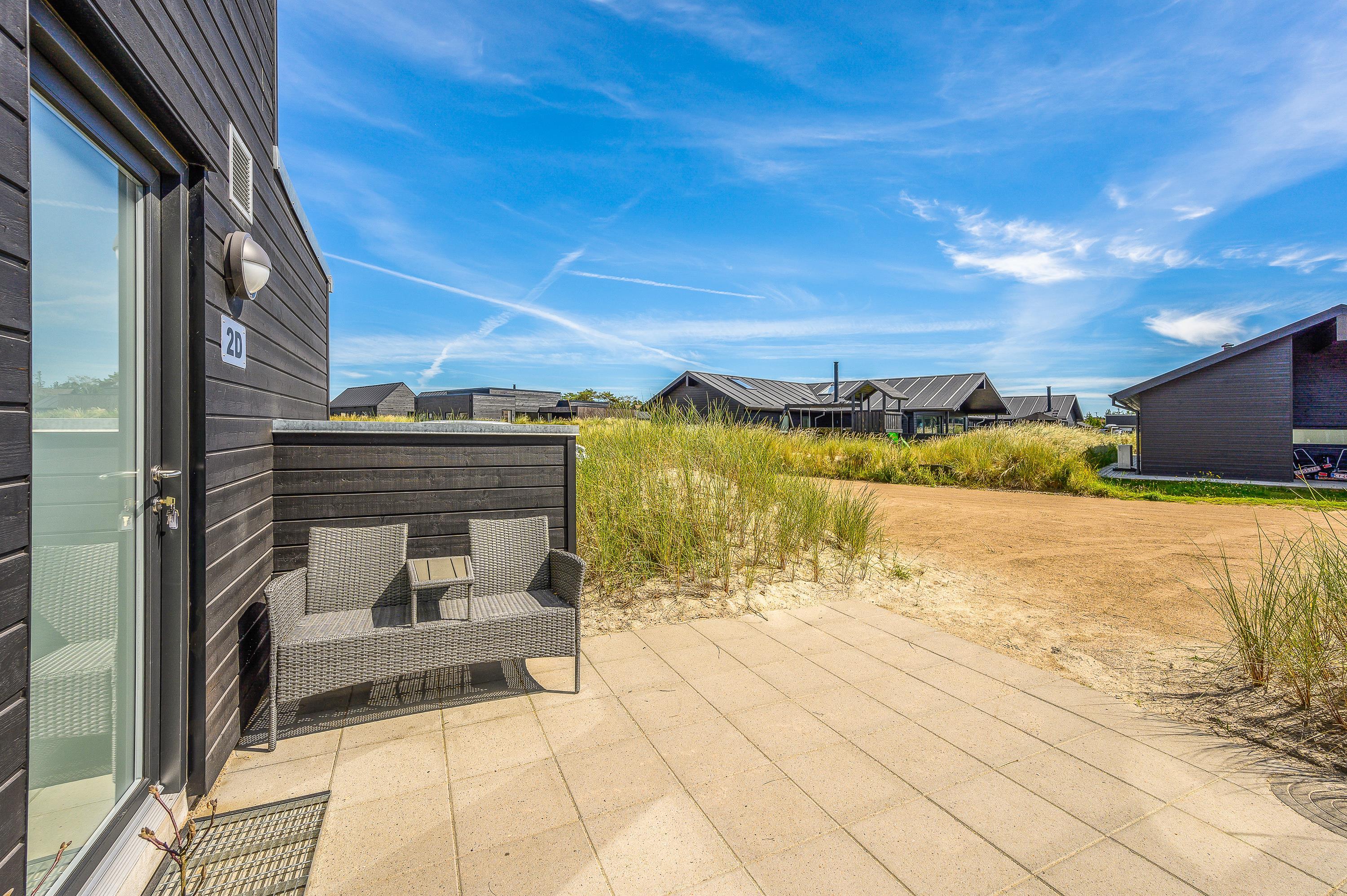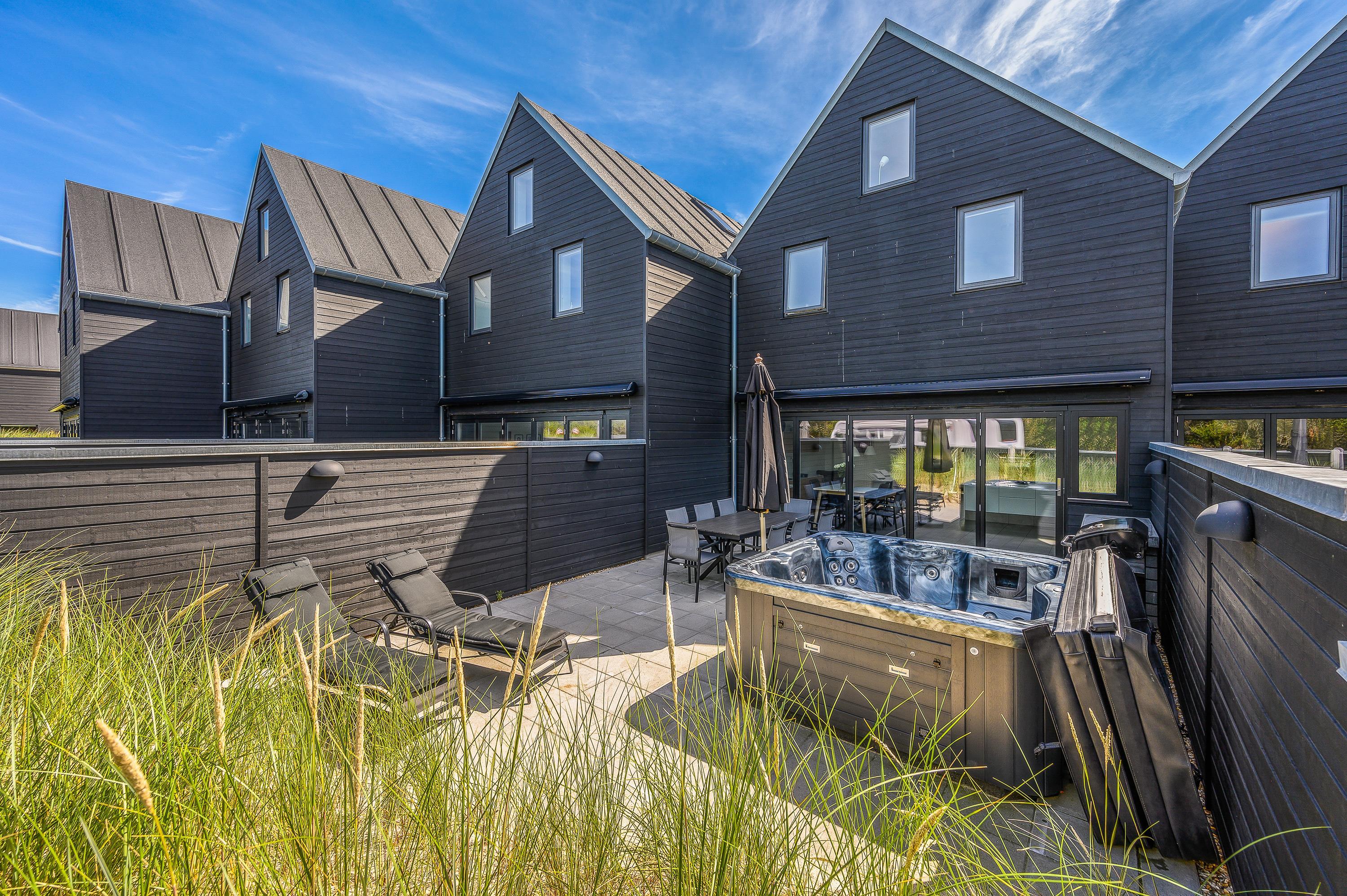 På Gl. Skolevej 2D, cirka 5 minutters gang fra Blåvands centrum, ligger dette flotte rækkehus, der er opført i 2019. Den moderne og stilfulde indretning rummer plads til 6 personer, og hunden er også velkommen. Ferieboligen er udstyret med hele 3 badeværelser, det ene med infrarød sauna, og på den lukkede terrasse er der udendørs spabad.