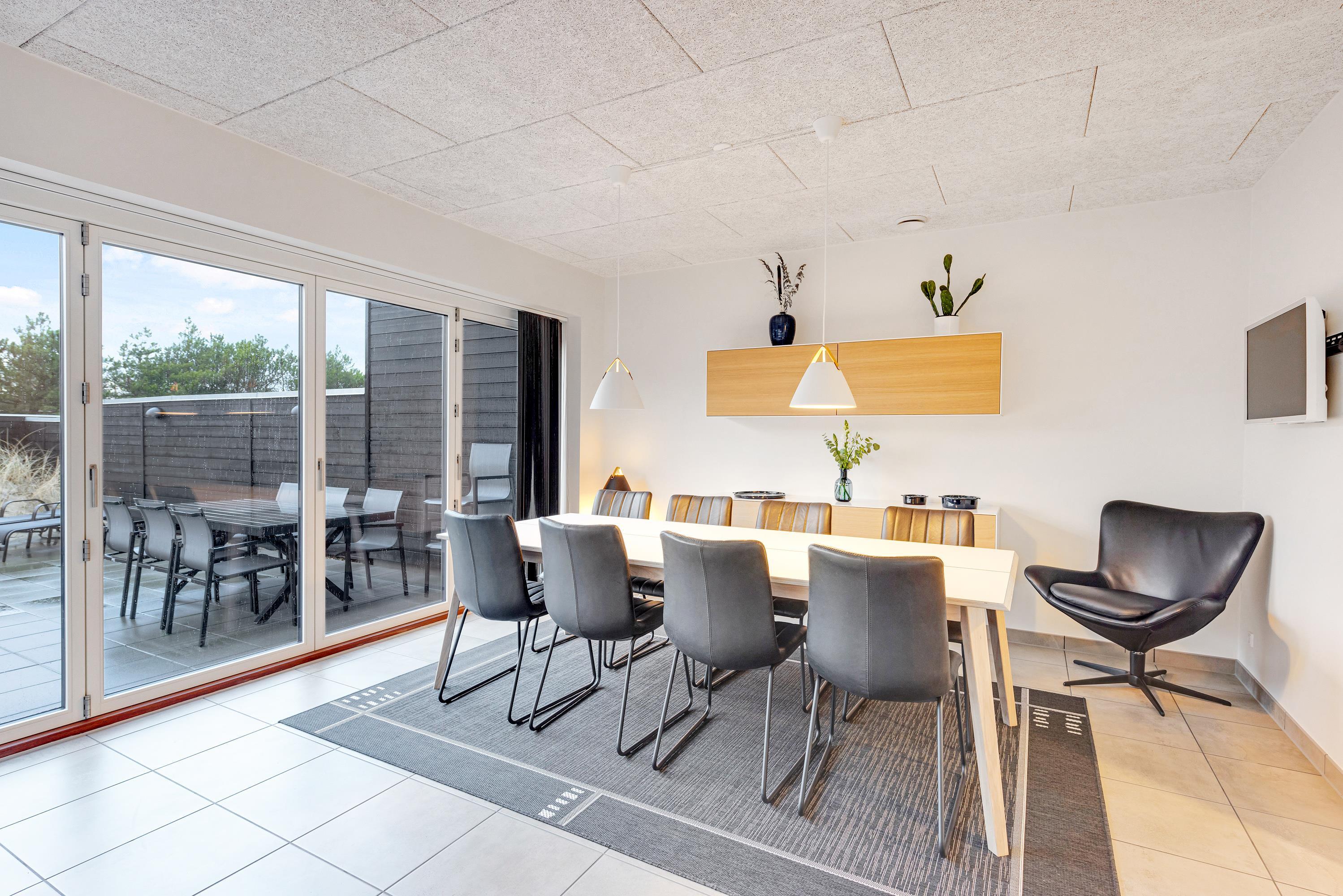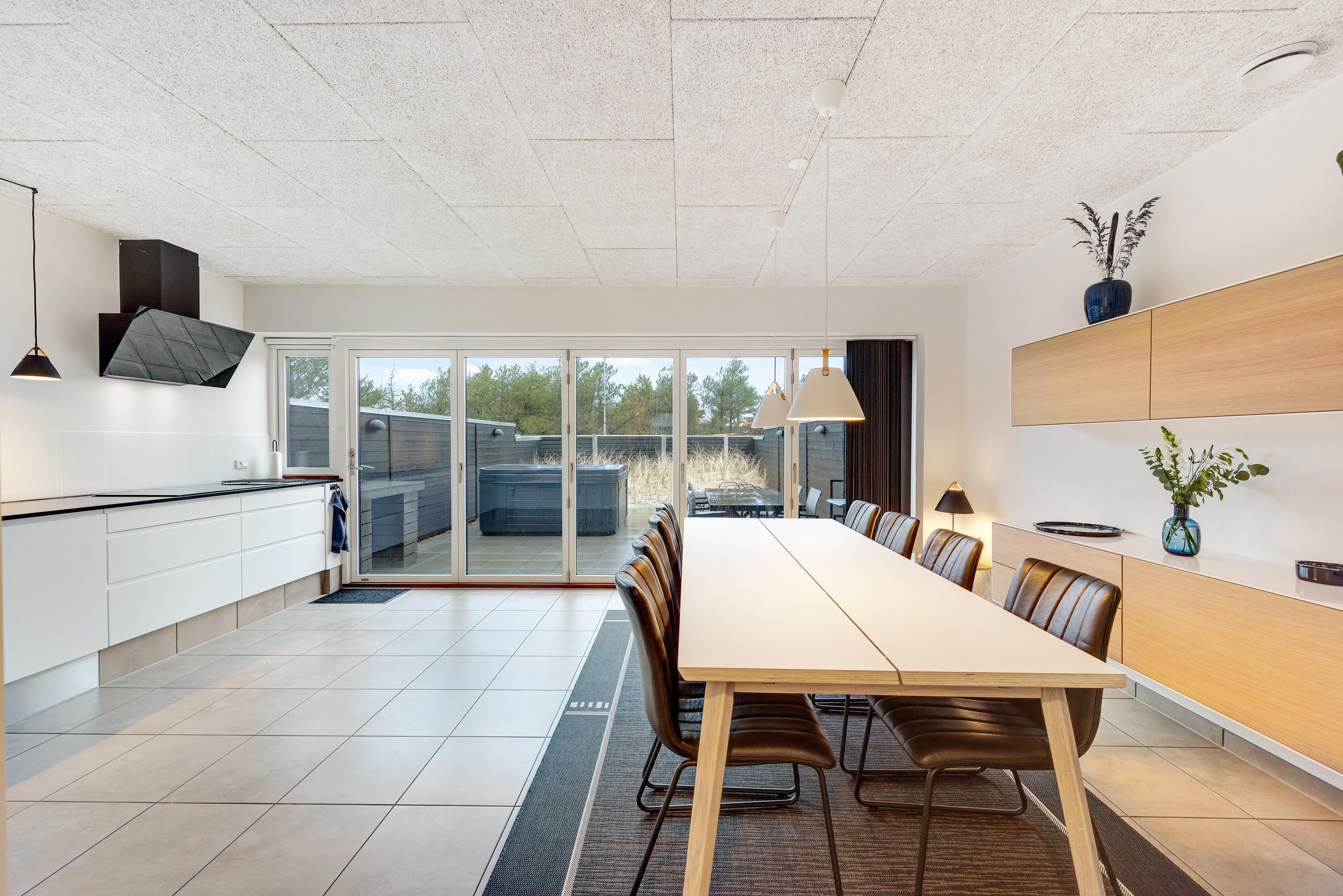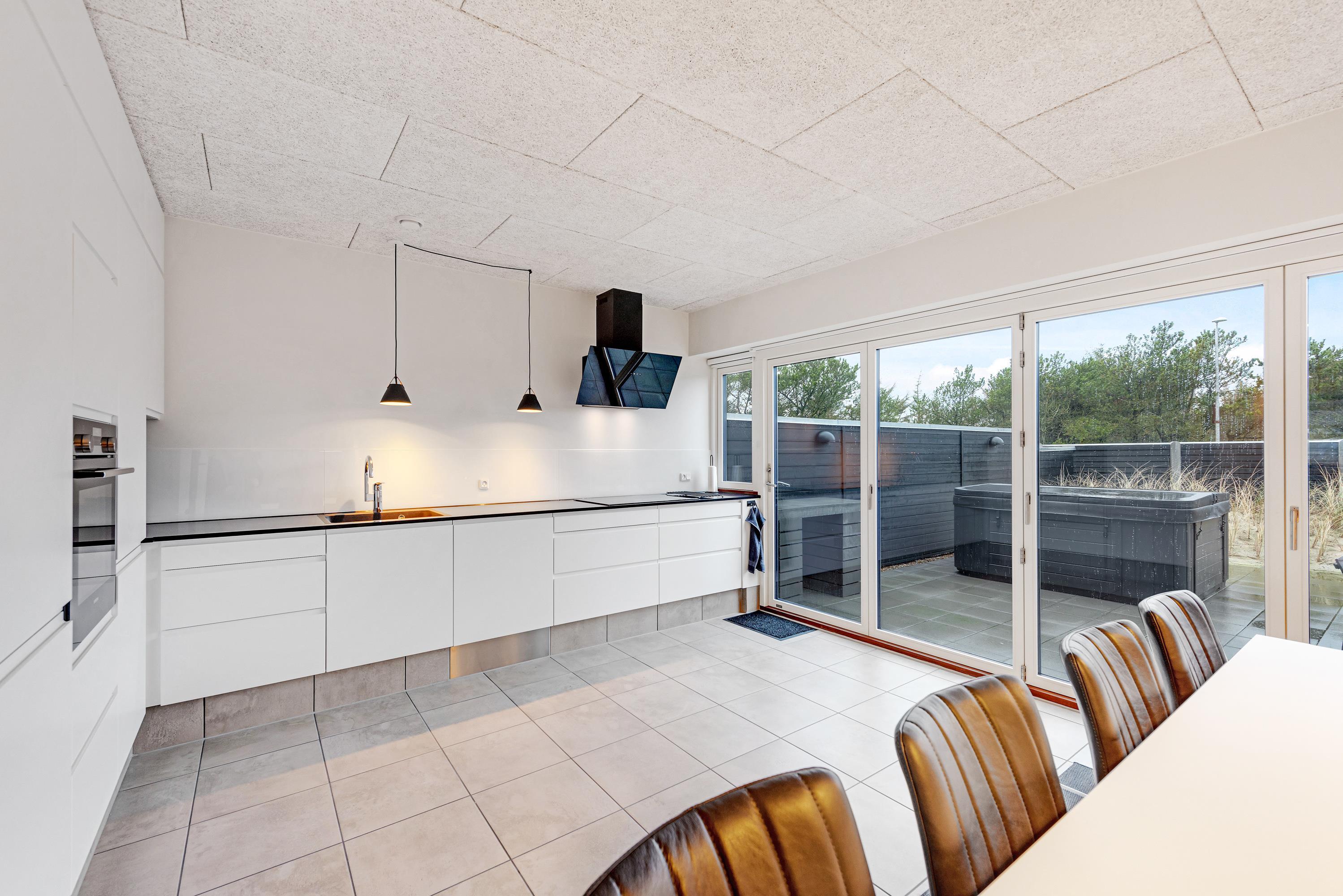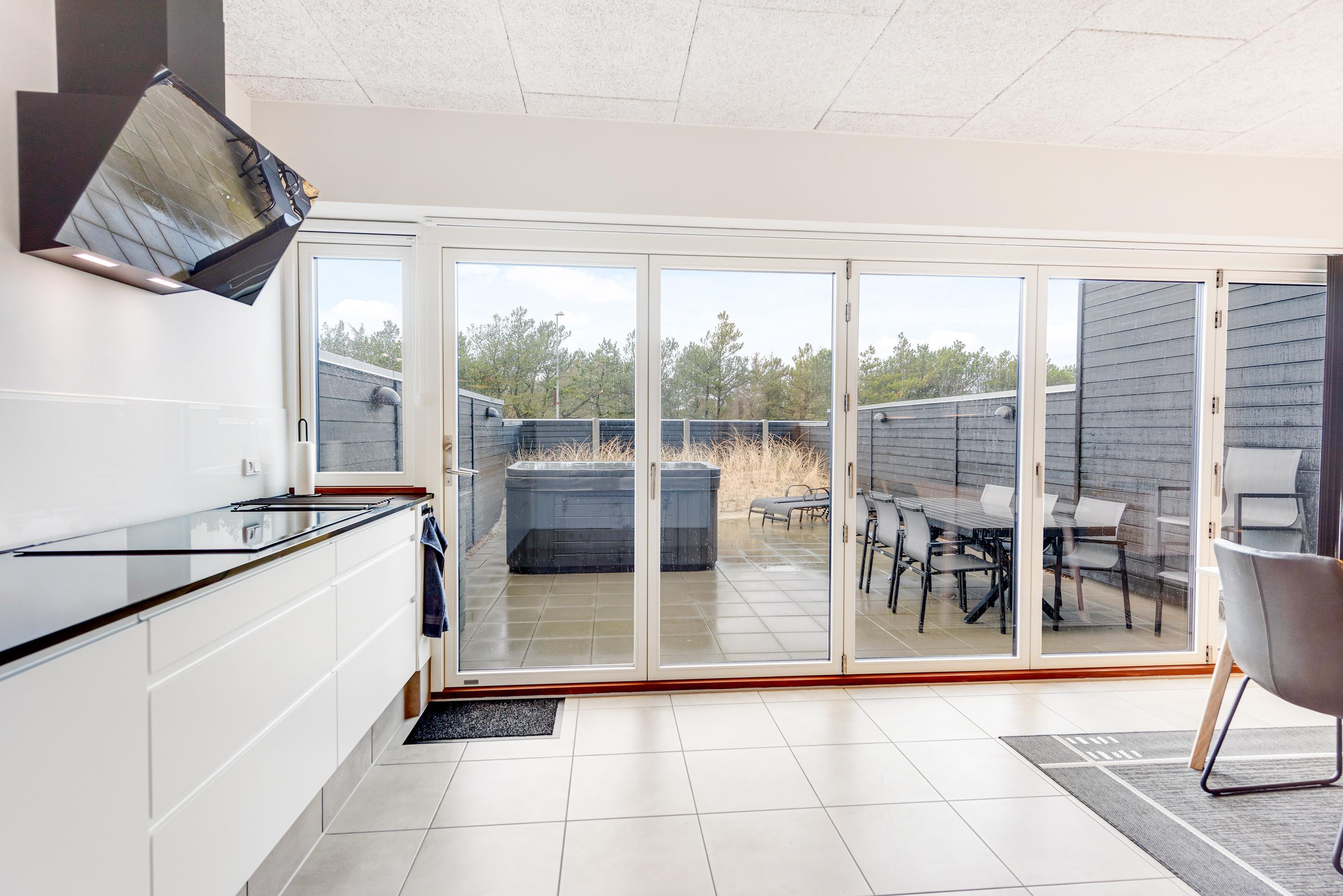Fra stuen er der udgang til den lukkede terrasse, hvor havemøbler, liggestole og en god gasgrill står klar, så I rigtig kan nyde de solrige dage. Terrassen gemmer desuden på endnu en lækker wellnessfacilitet, nemlig et udendørs spabad. Markisen må ikke benyttes. Et varmt boblebad under åben himmel kan man vel altid bruge, ligegyldigt hvornår på året, man holder ferie?