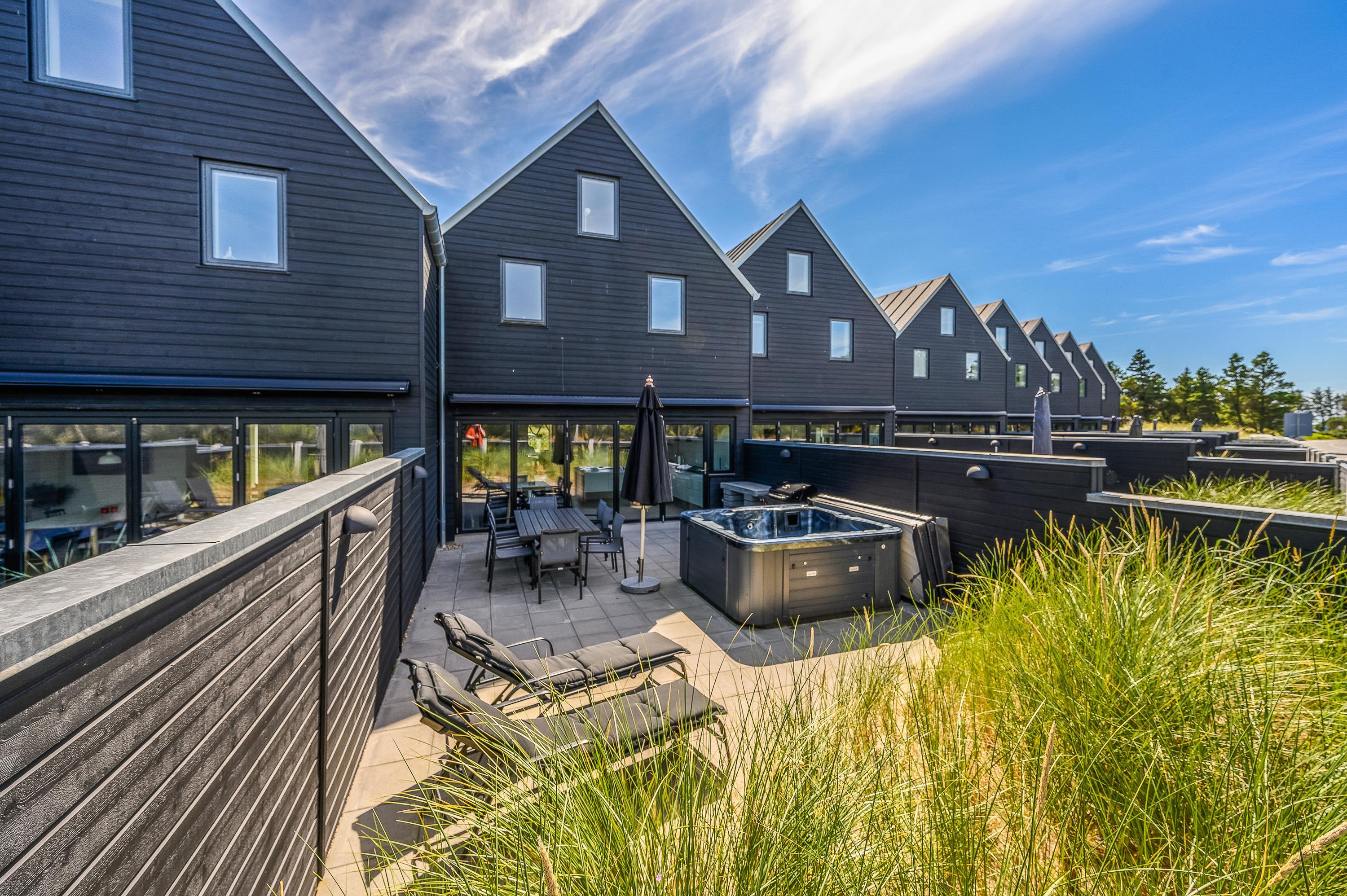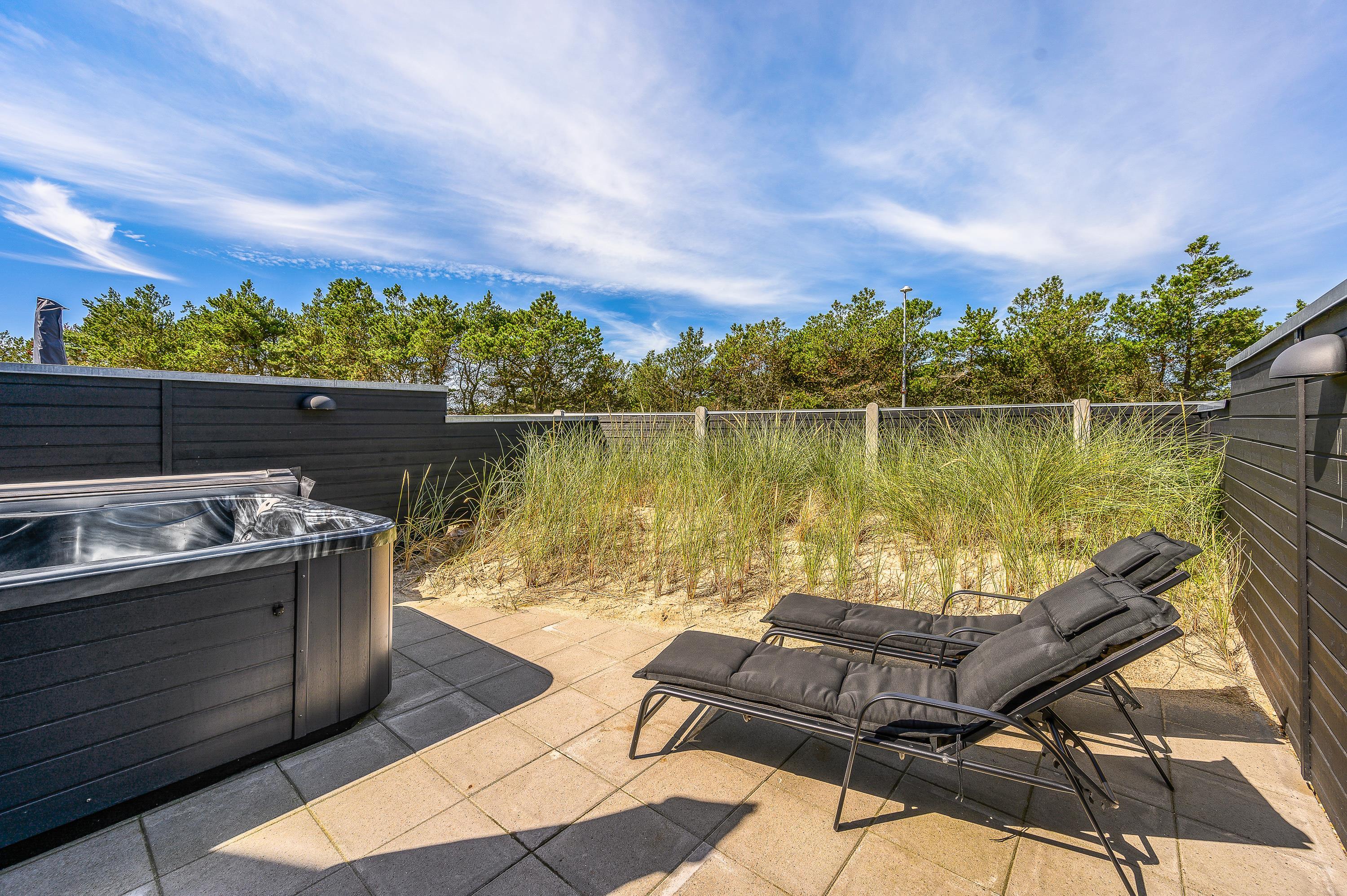 Lukket terrasse med gasgrill og udendørs spabad, kun 500 meter til Blåvands centrum