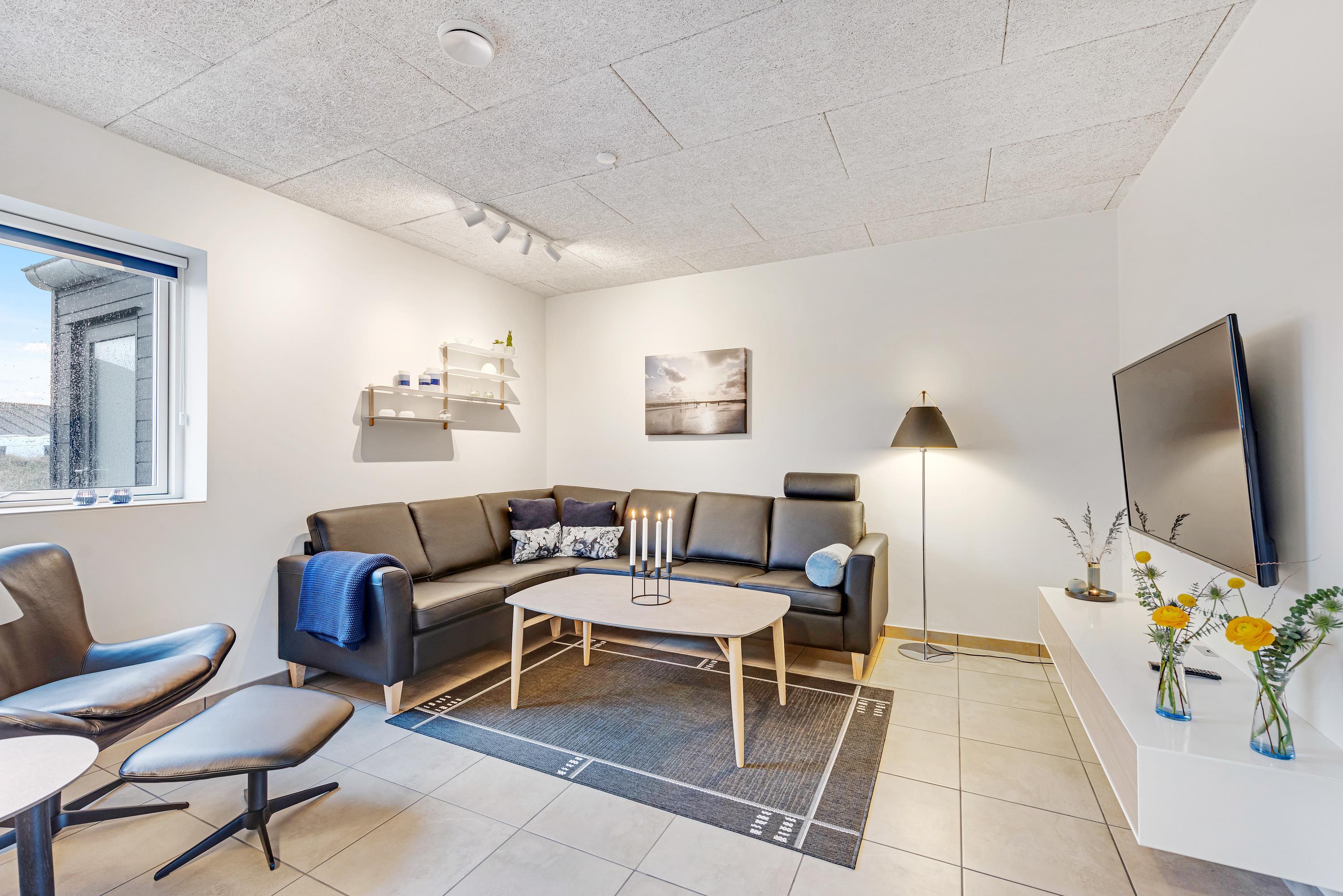 Dette femstjernede rækkehus i Blåvand er et oplagt valg til den stilbevidste feriegæst, der sætter pris på kvalitet og moderne interiør. Ferieboligen råder over i alt 136 kvadratmeter fordelt på 2 etager, og det har en masse lækre faciliteter, der er værd at fremhæve.