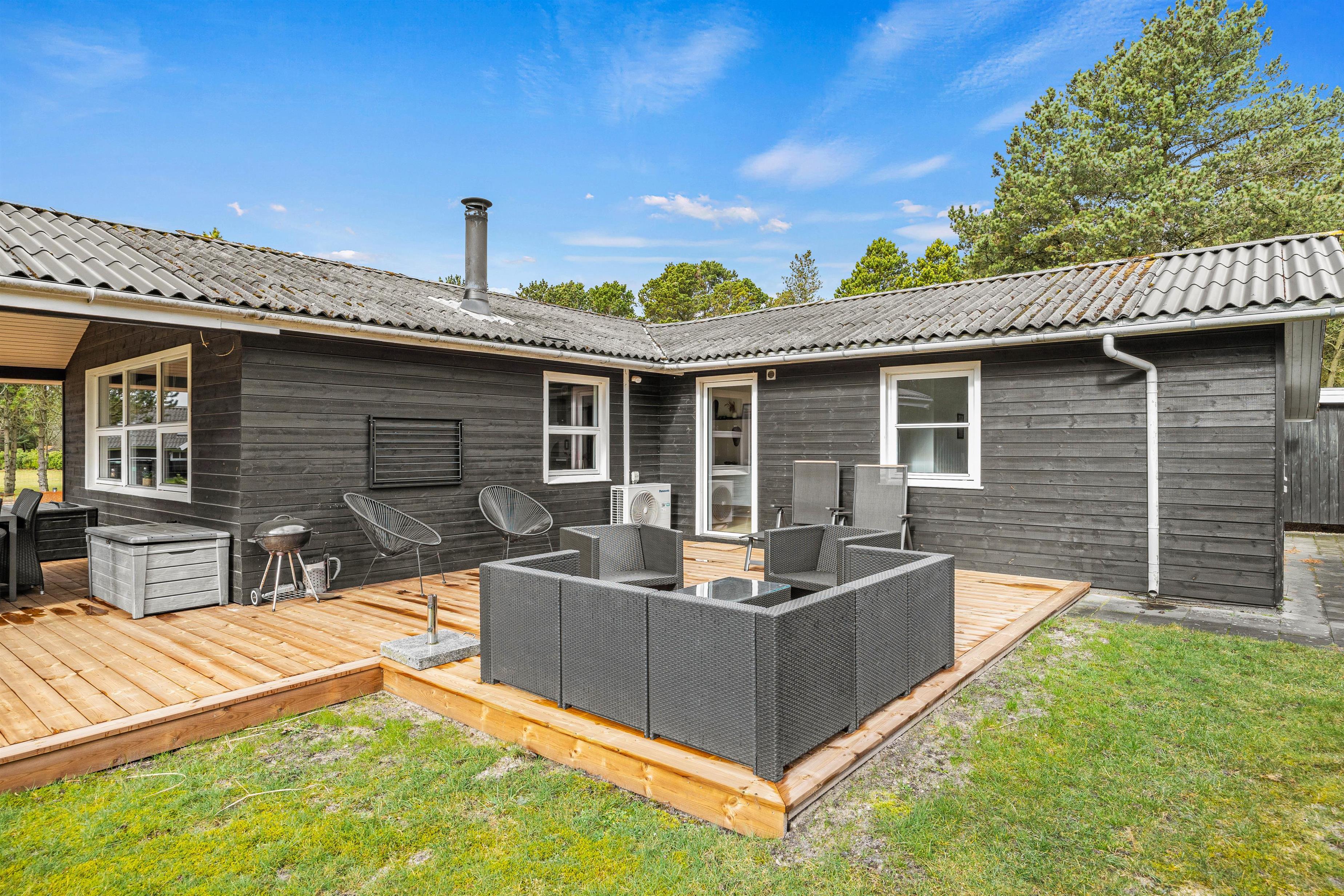 Sommerhuset i Blåvand er idéelt til rolige dage med sine 114 m² indendørs hyggelige omgivelser, og en dejlig stemning venter jer her, især med den effektive brændeovn, som helt konkret sikrer varme og hygge på kølige aftener.