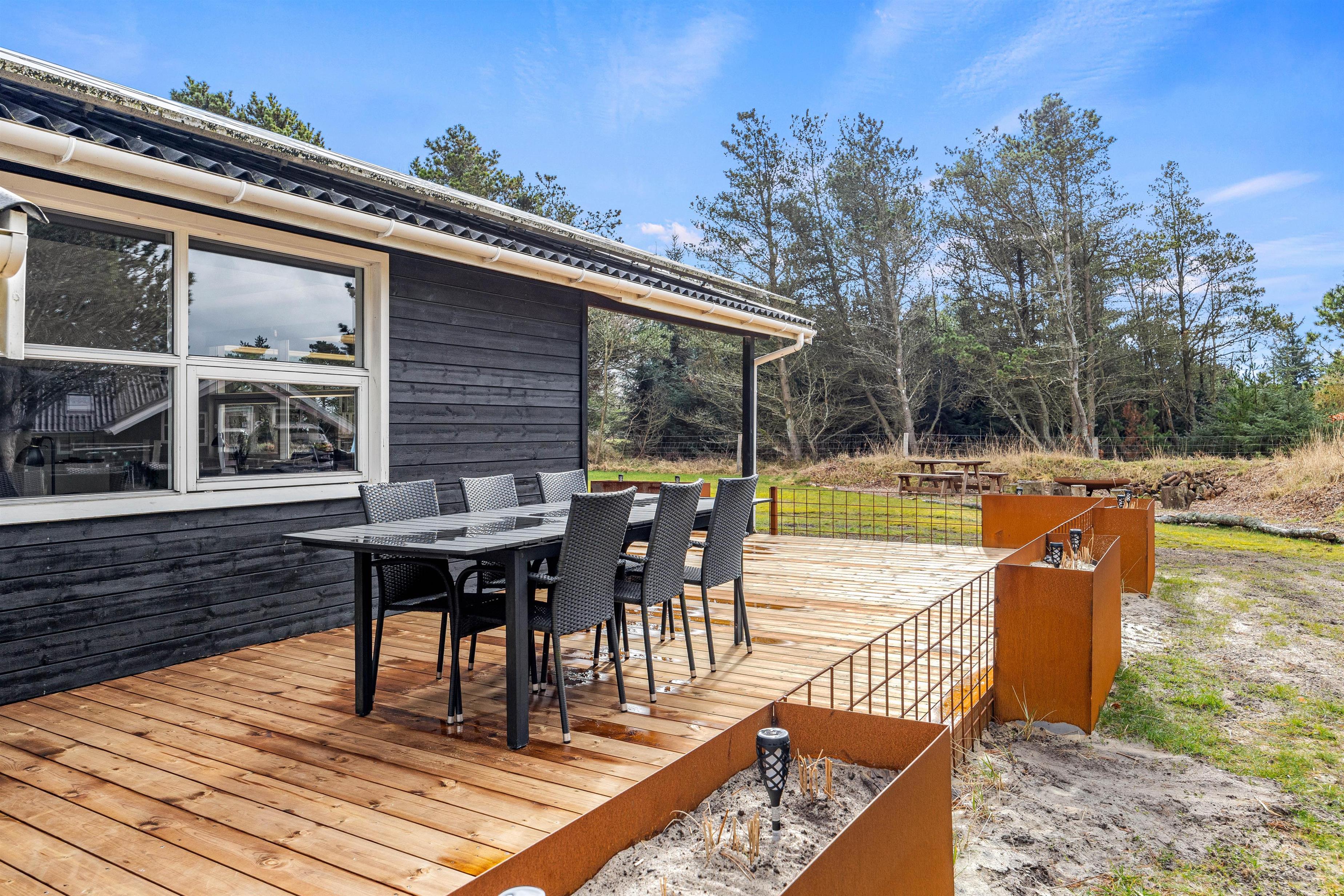 Nyd den friske luft og den afslappende atmosfære i den store have på 2000 m². I kan vælge mellem en åben eller afskærmet terrasse, begge perfekt udstyret med havemøbler. Grillen står klar til hyggelige aftener under åben himmel, og til børnene er der en gynge, så de kan lege i den friske, vestjyske luft.