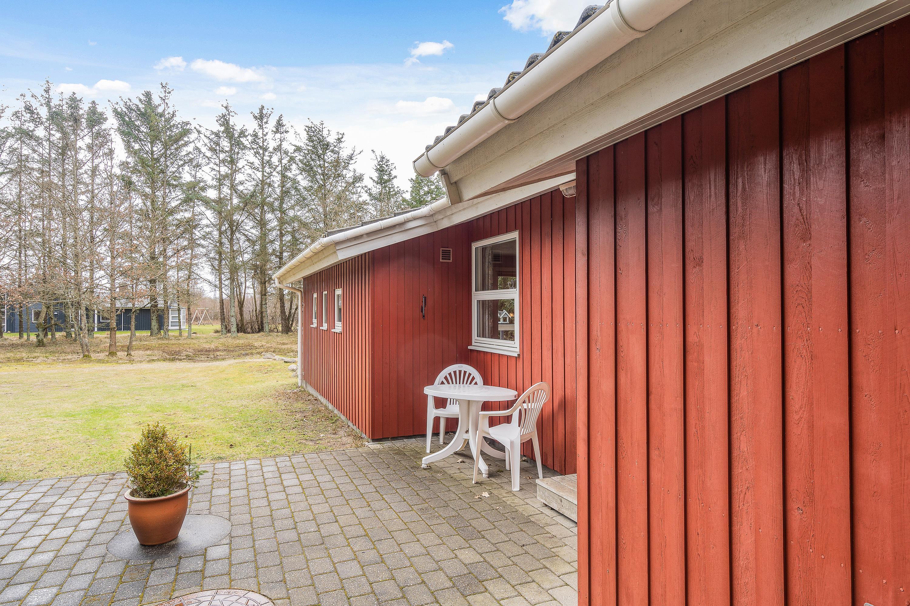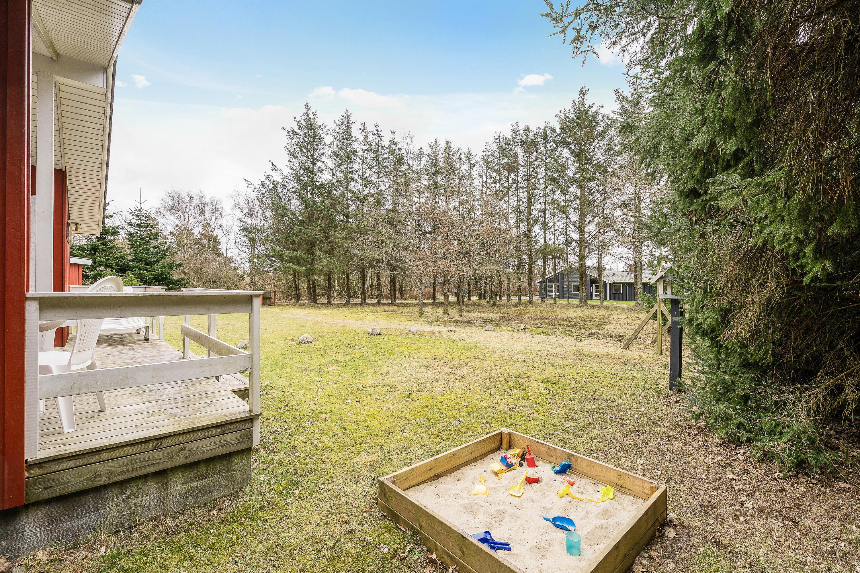 På den 1.823 kvadratmeter store grund har I de perfekte rammer for at nyde den friske luft og naturen. På sommerhusets store græsplæne er der rig mulighed for sjov og leg. Både store og små kan spille en fodboldturnering, og de yngste gæster kan lege på gyngen eller i sandkassen.