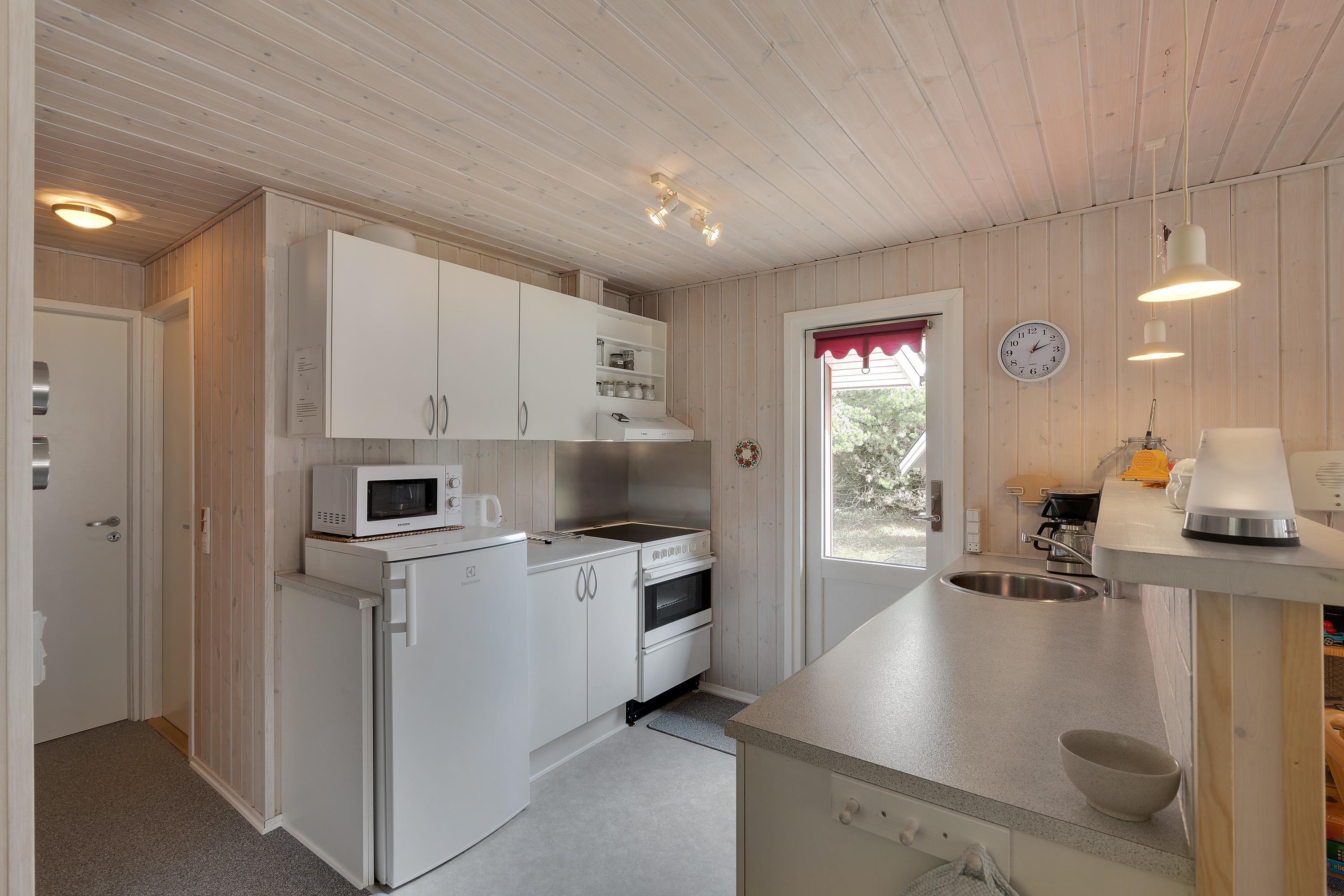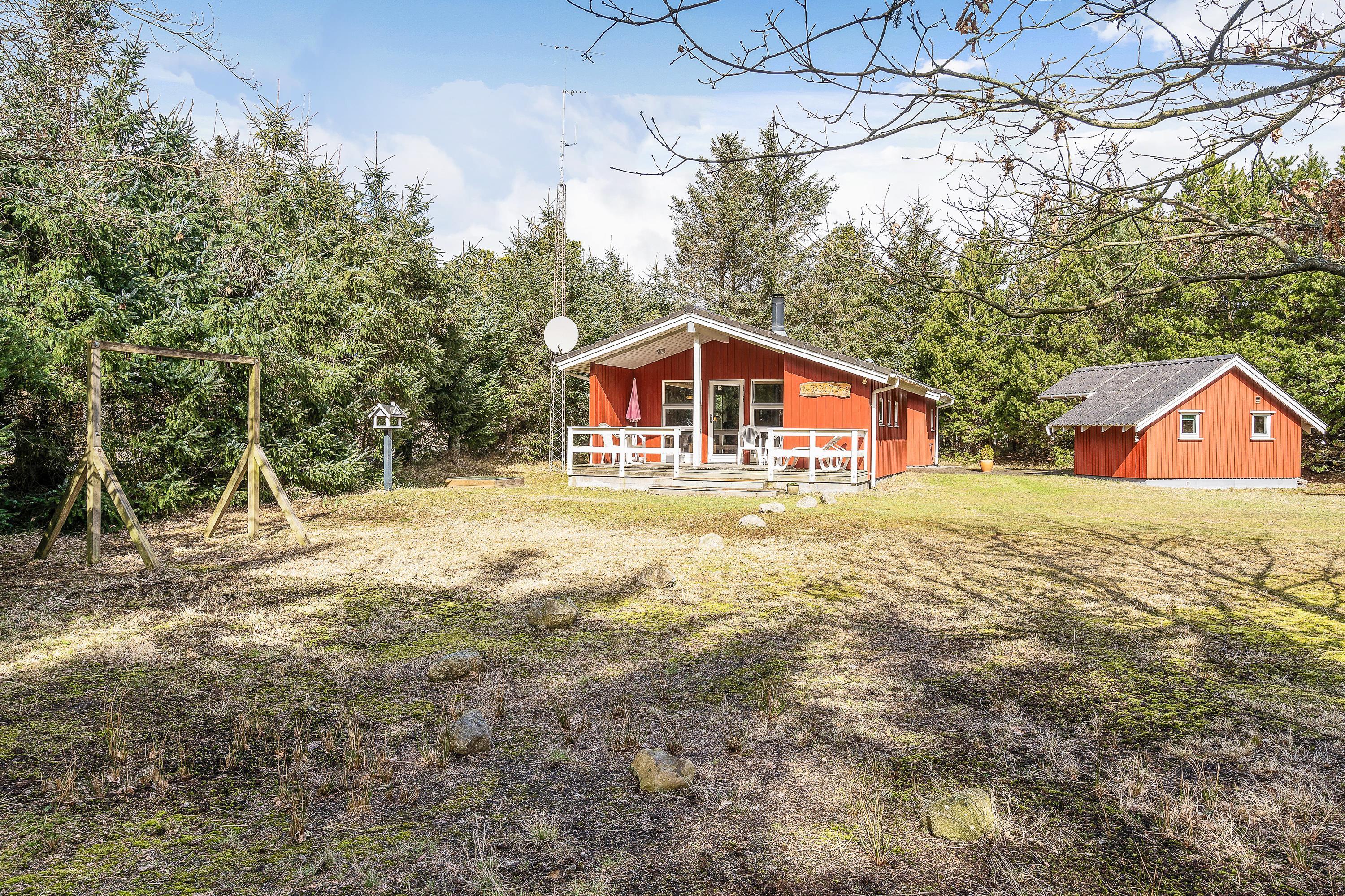 I dette skønne sommerhus til 4 personer kan I læne jer tilbage og nyde ferien. Den gode brændeovn sørger for hyggen, og den overdækkede terrasse gør, at I kan nyde den vestjyske natur i alt slags vejr. Desuden kan de yngste gæster give den gas på sommerhusets gynge eller i sandkassen.