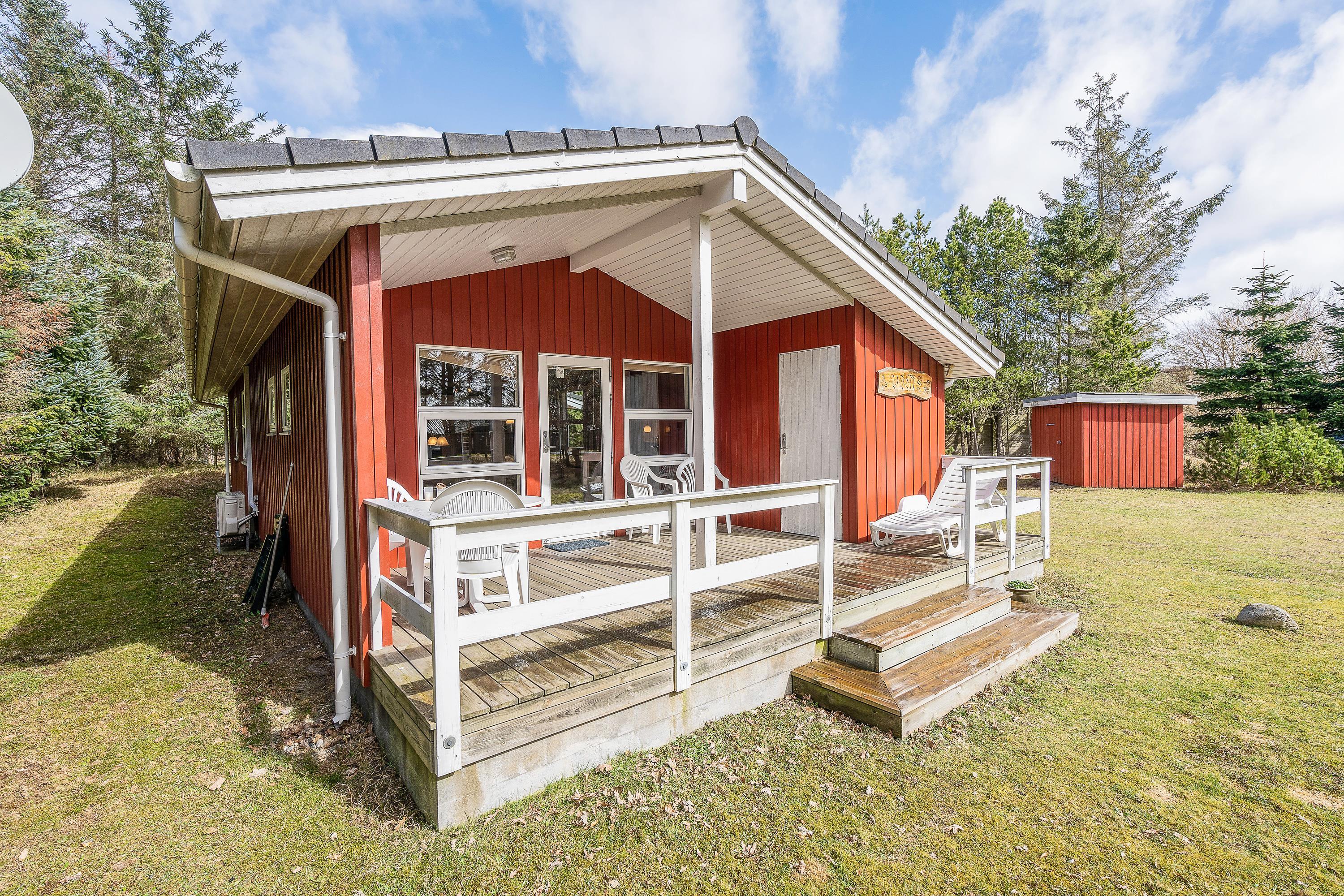 Når alt krudt er brændt af, kan I læne jer tilbage i sommerhusets liggestole på den skønne sydvendte terrasse. Desuden er den sydvendte terrasse overdækket, så I både kan finde en solstråle og kravle i ly for vind og vejr.