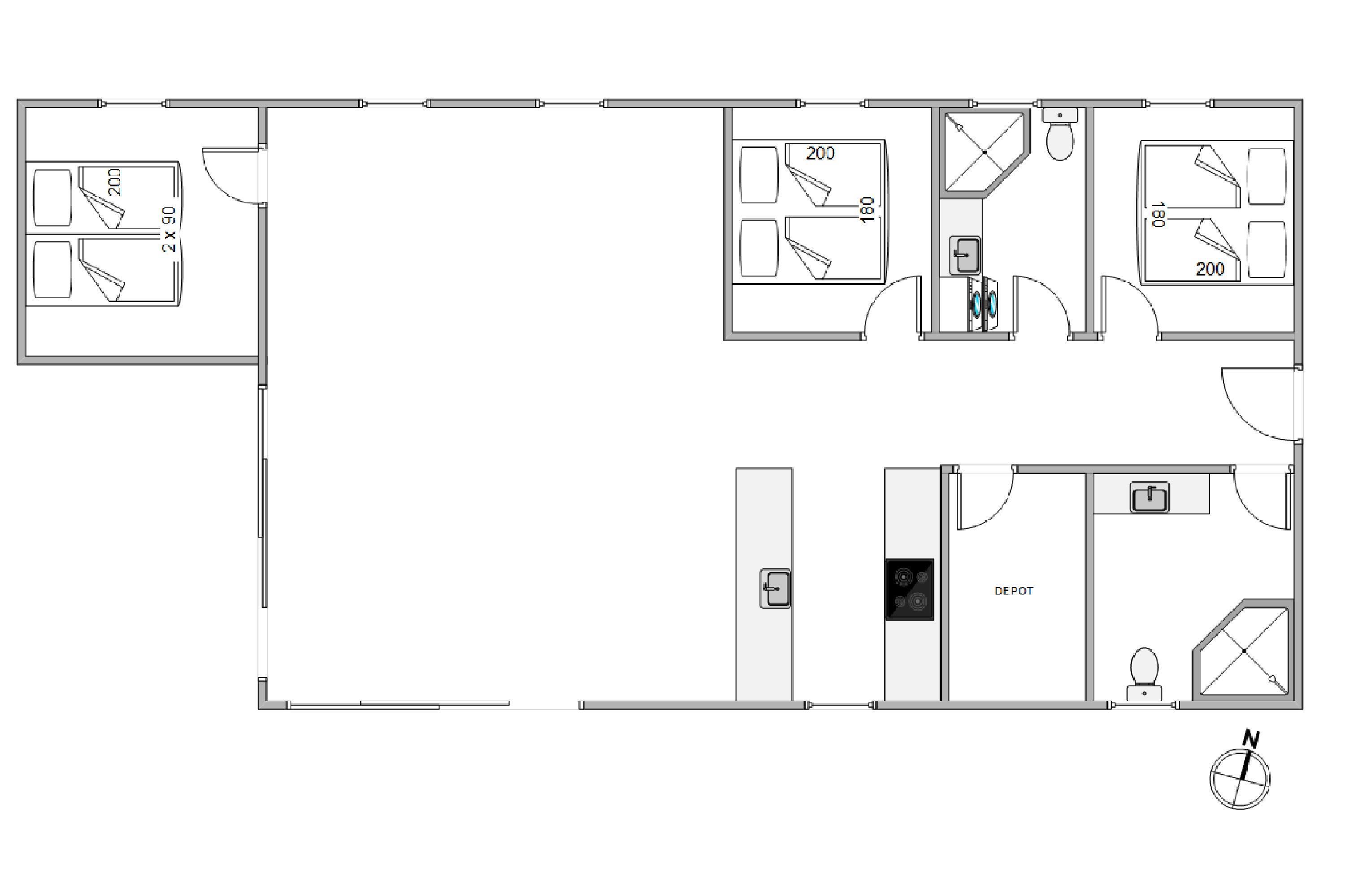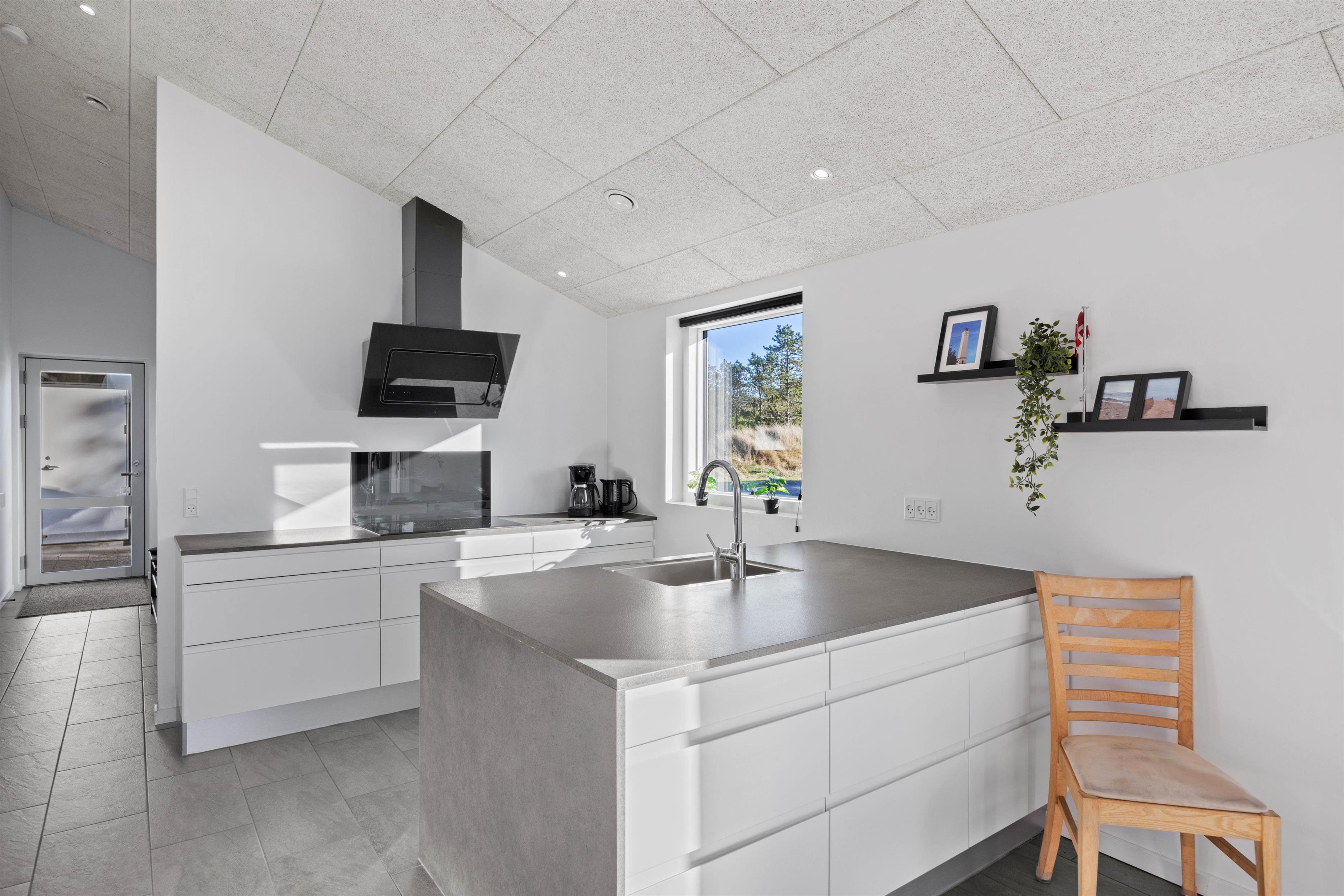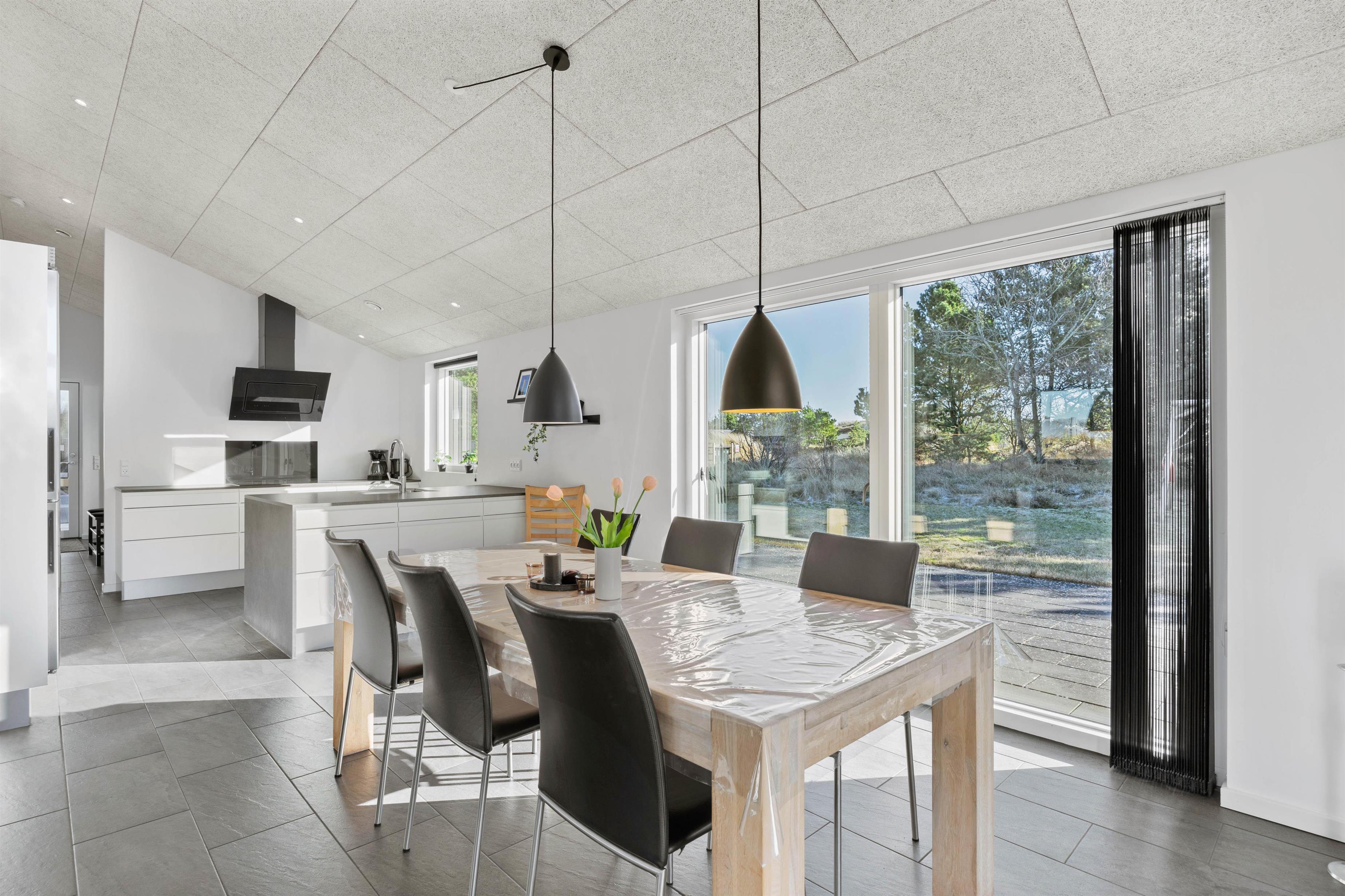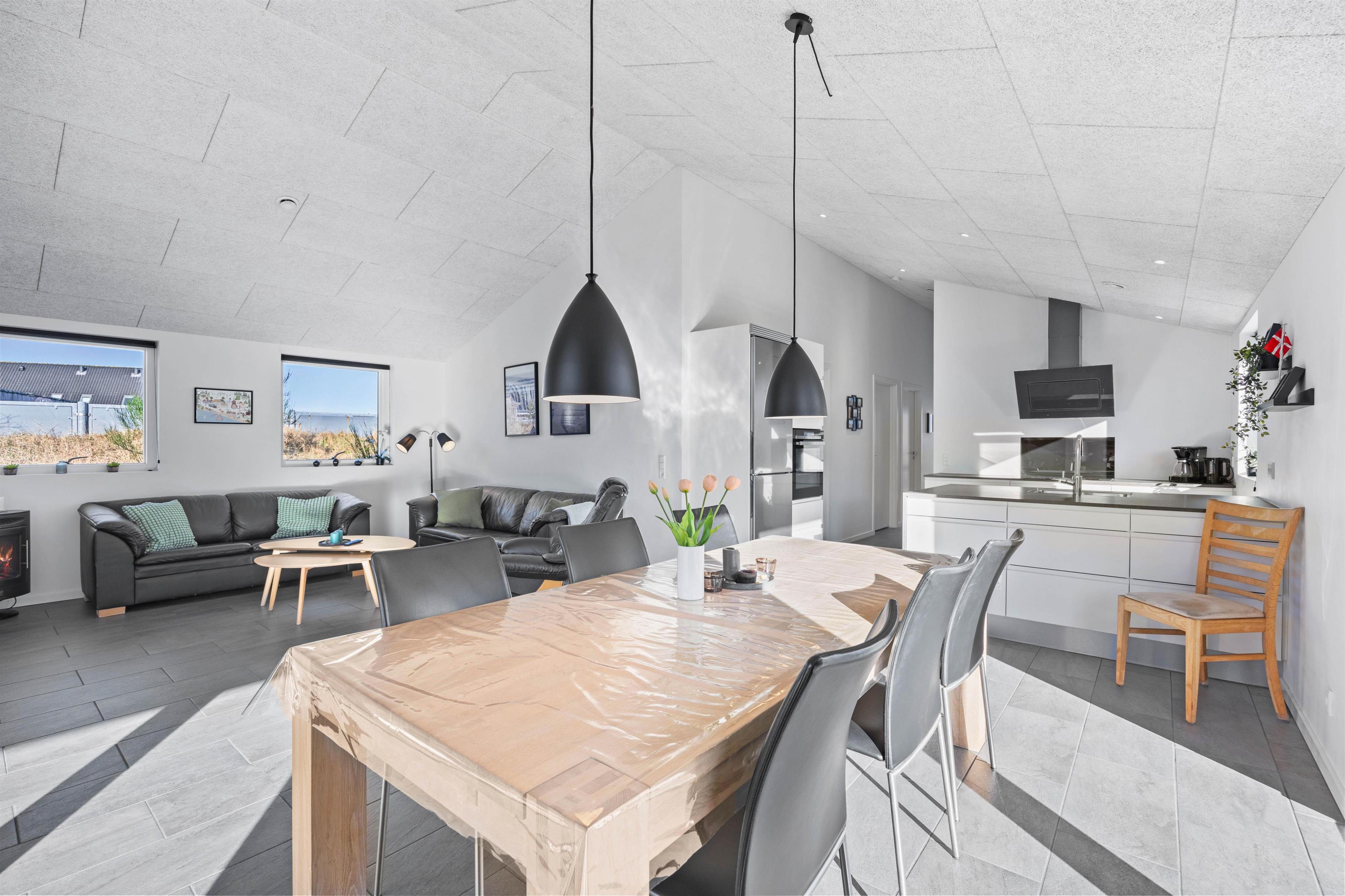 Den lyse og moderne indretning er med til at skabe en god ferieatmosfære. I det store alrum, hvor køkken, spisestue og opholdsstue går ud i et, er der god plads til fælles hygge. Efter aftensmaden kan I samles om bordet til planlægning af den følgende feriedag eller til familiespil og popcorn.