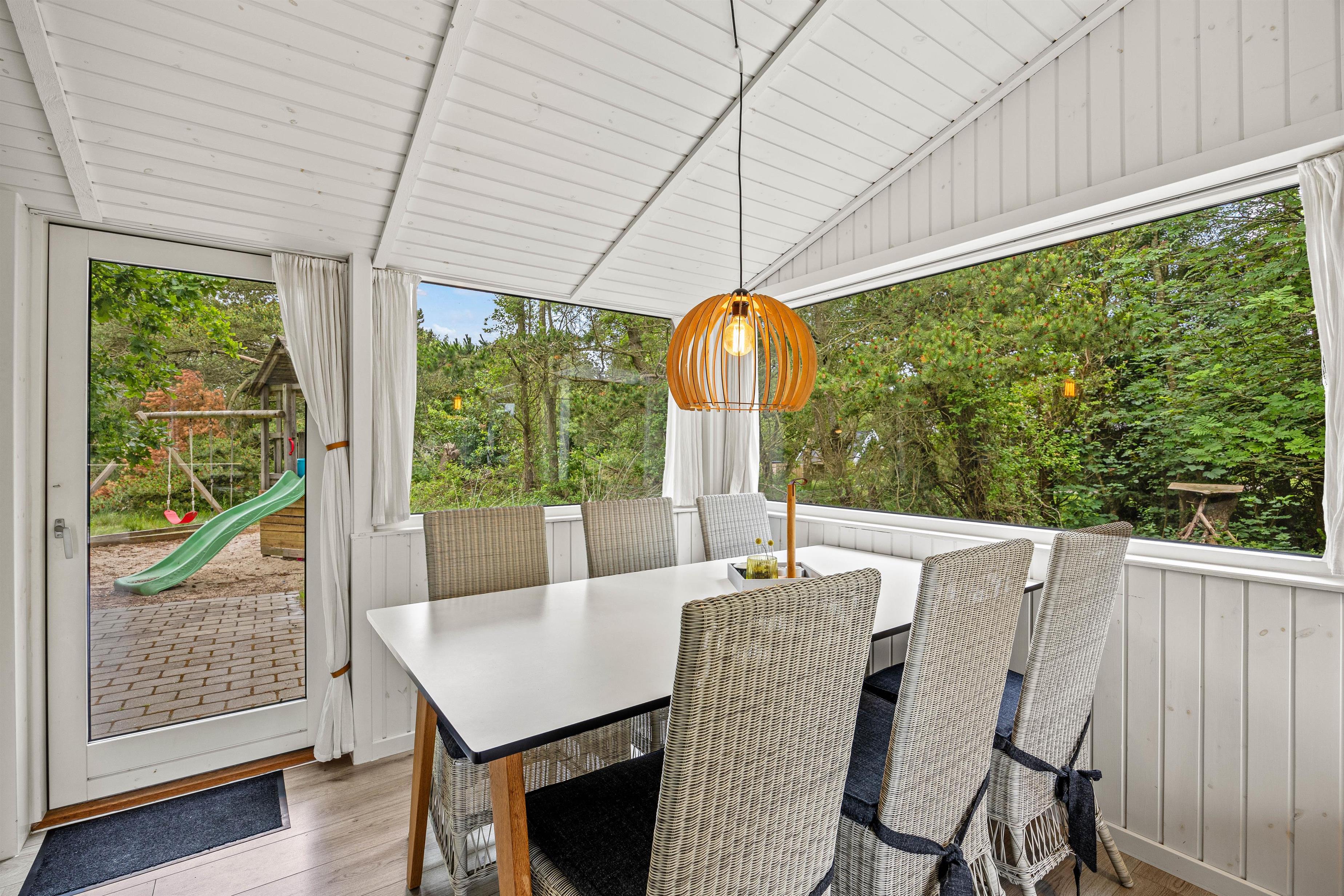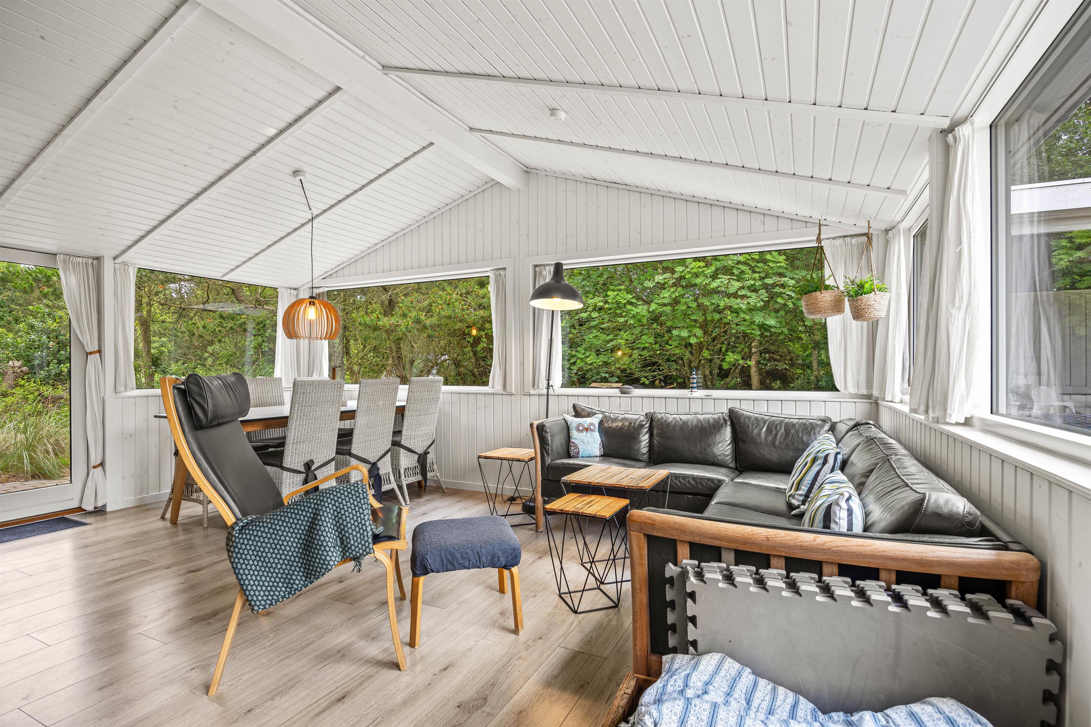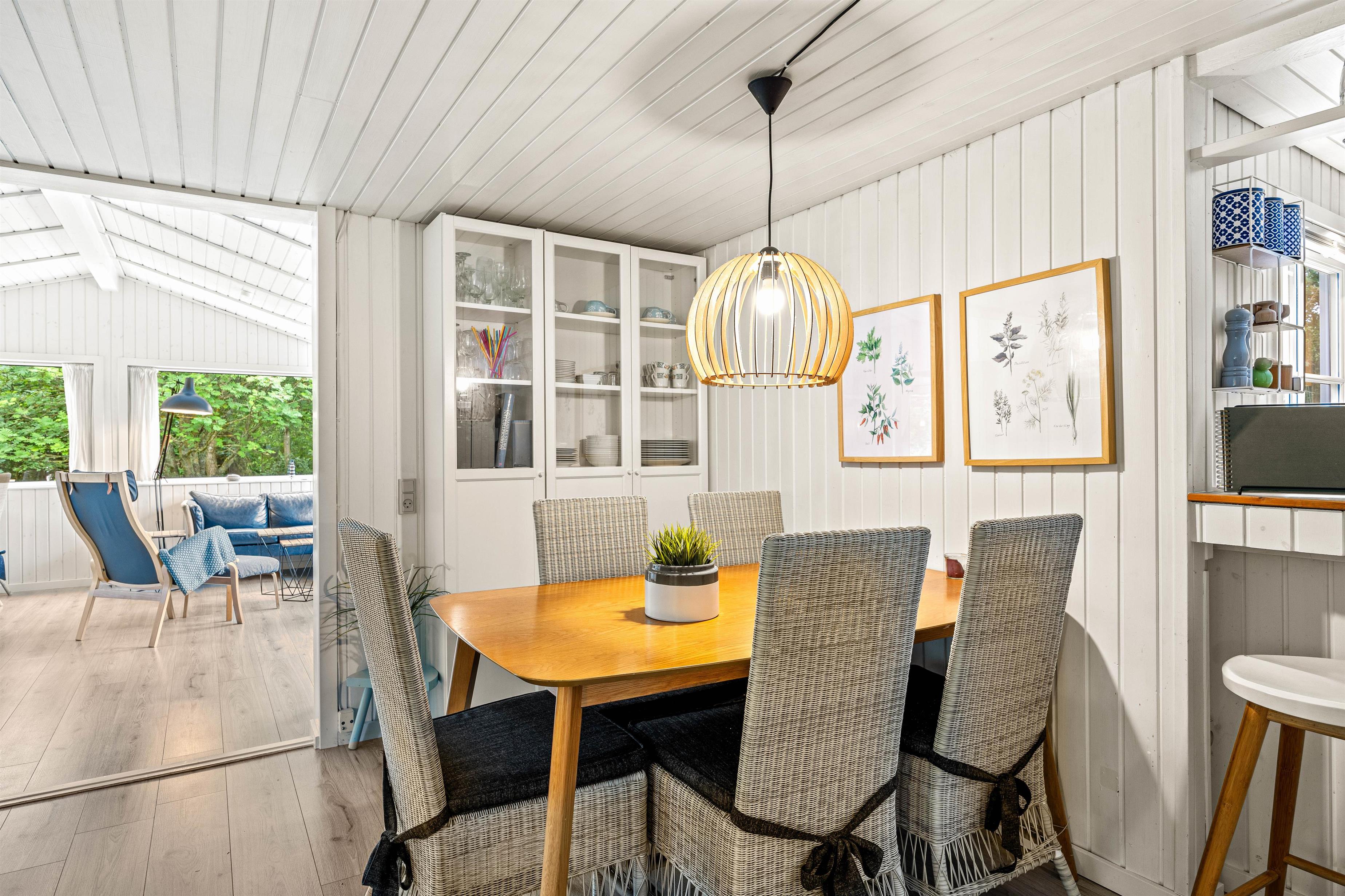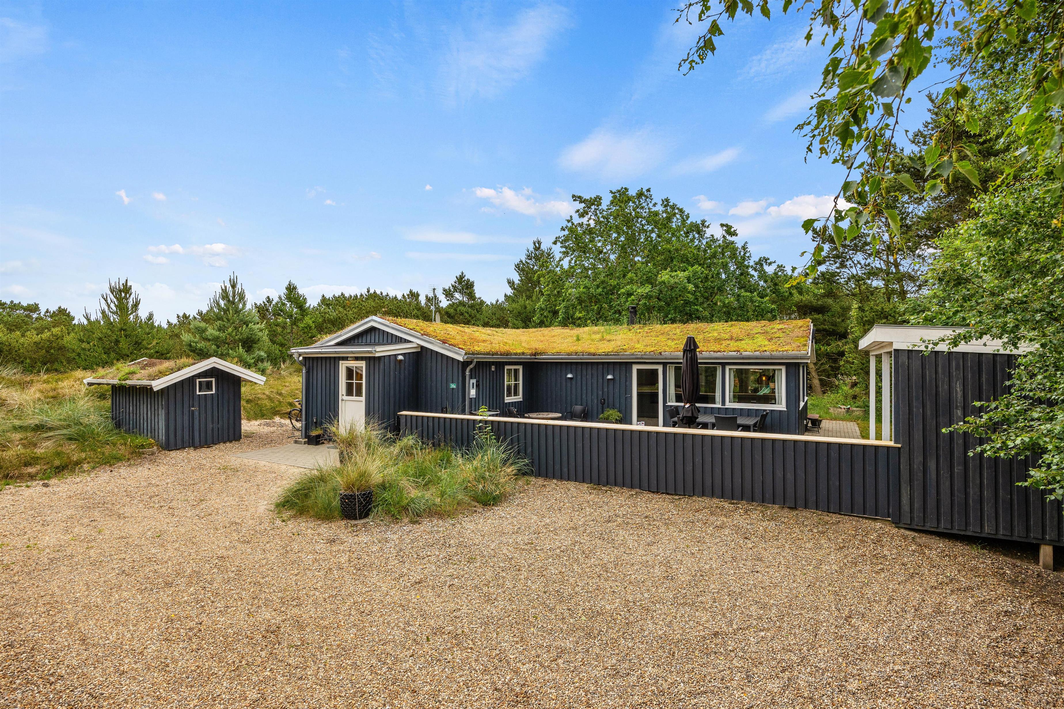 Den åbne og overdækkede terrasse giver mulighed for hyggelige aftener og grillfester med familie og venner, og havemøblerne inviterer til afslapning flere steder rundt om huset, mens børnene leger i sandkassen eller på gyngen. Få en pause fra hverdagen, og skab gode ferieminder i de naturskønne omgivelser i huset med sedum på taget.