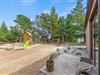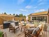 De store vinduer i opholdsrummet lukker dejligt meget lys ind og giver udsyn til den store flotte træterrasse med gasgrill og havemøbler skabt til hyggeligt samvær.