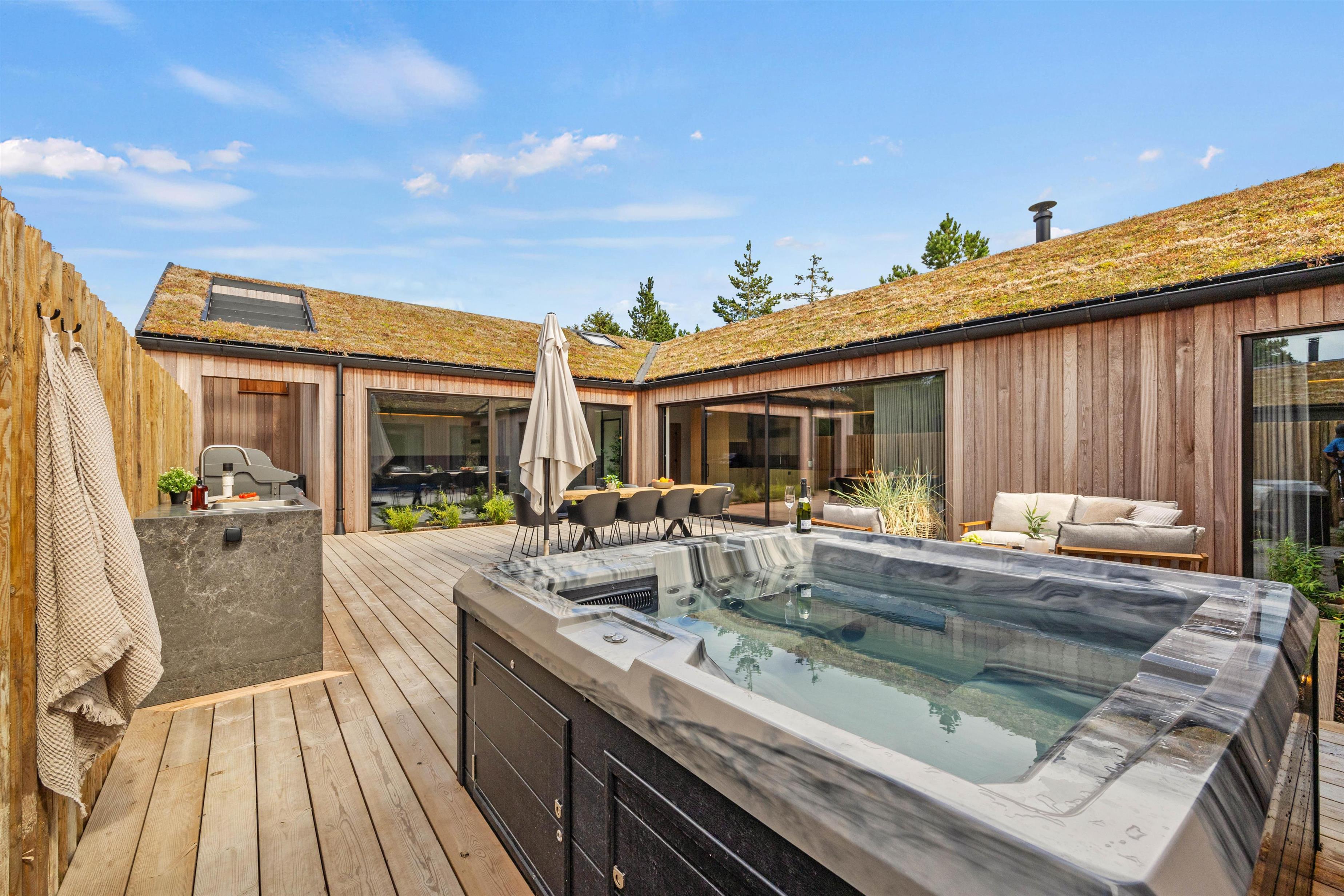 På Søren Gades Mark 16 er der i 2024 færdigbygget et nyt luksushus, der indeholder alt, hvad I kan ønske jer til en uforglemmelig ferie ved Blåvand. Ikke nok med, at I kan slappe af foran pejsen eller tage et spil billard, der er også en 19 m2 swimmingpool med svømmetræner og en udendørs 5-personers spa og sauna.