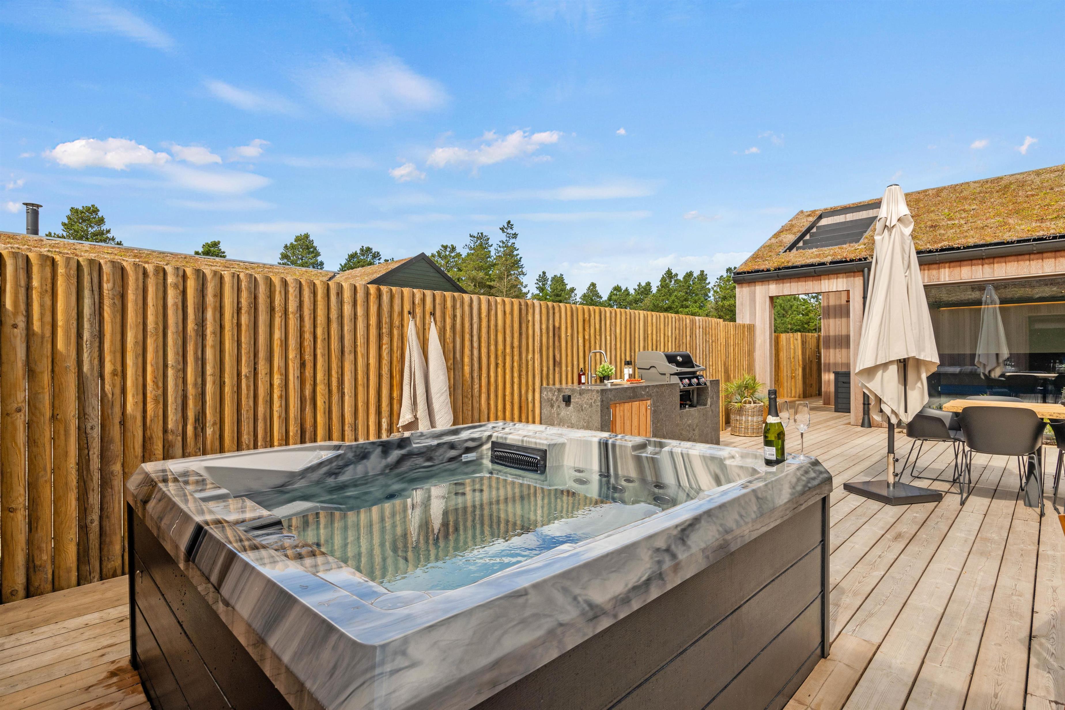 Udover den flotte indretning, de lækre faciliteter og de luksuriøse detaljer, så er sommerhuset også topisoleret og udstyret med energibesparende løsninger som eksempelvis varmepumpe og en ladestander til jeres el-bil (husk ladekabel/adapter).
