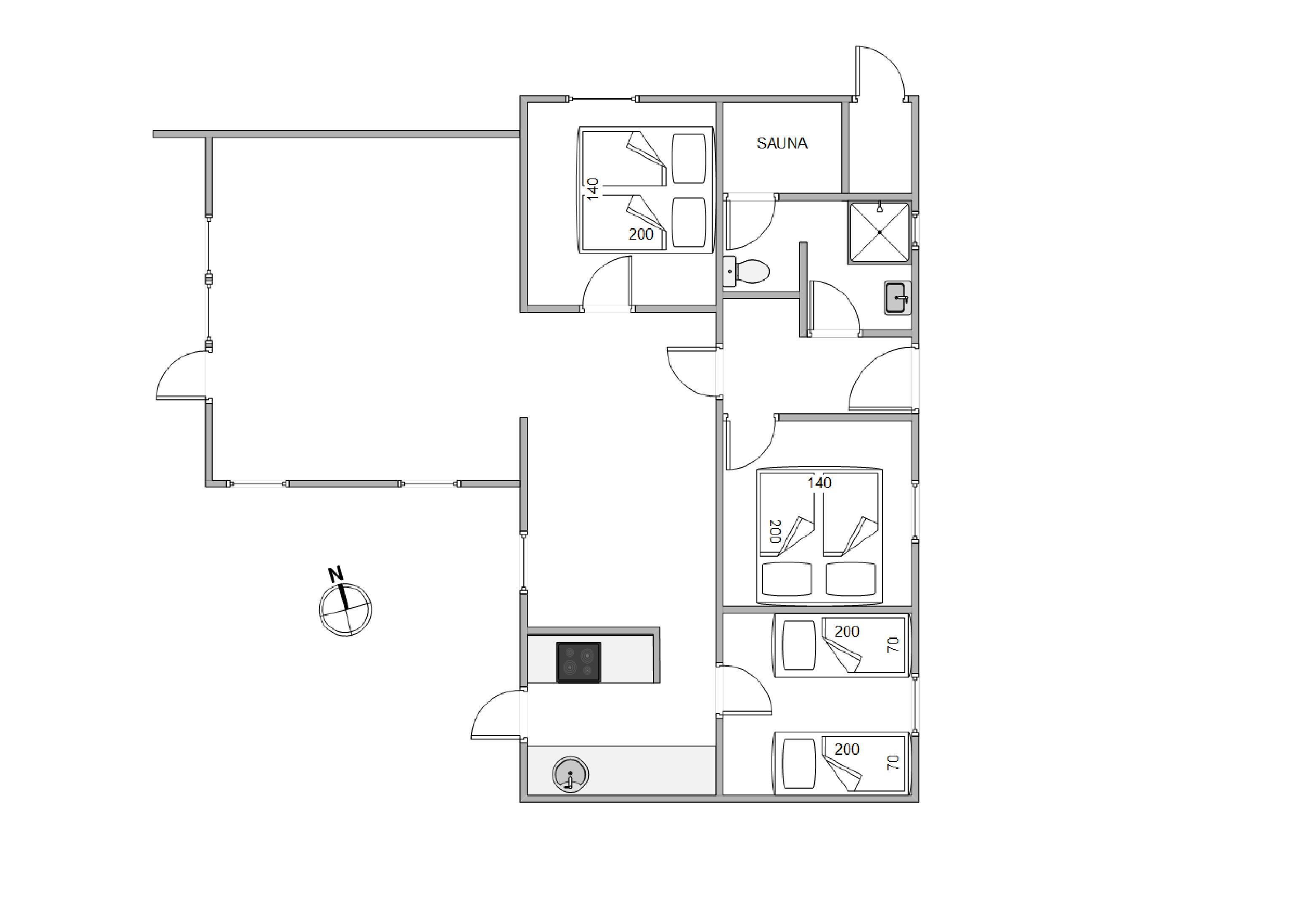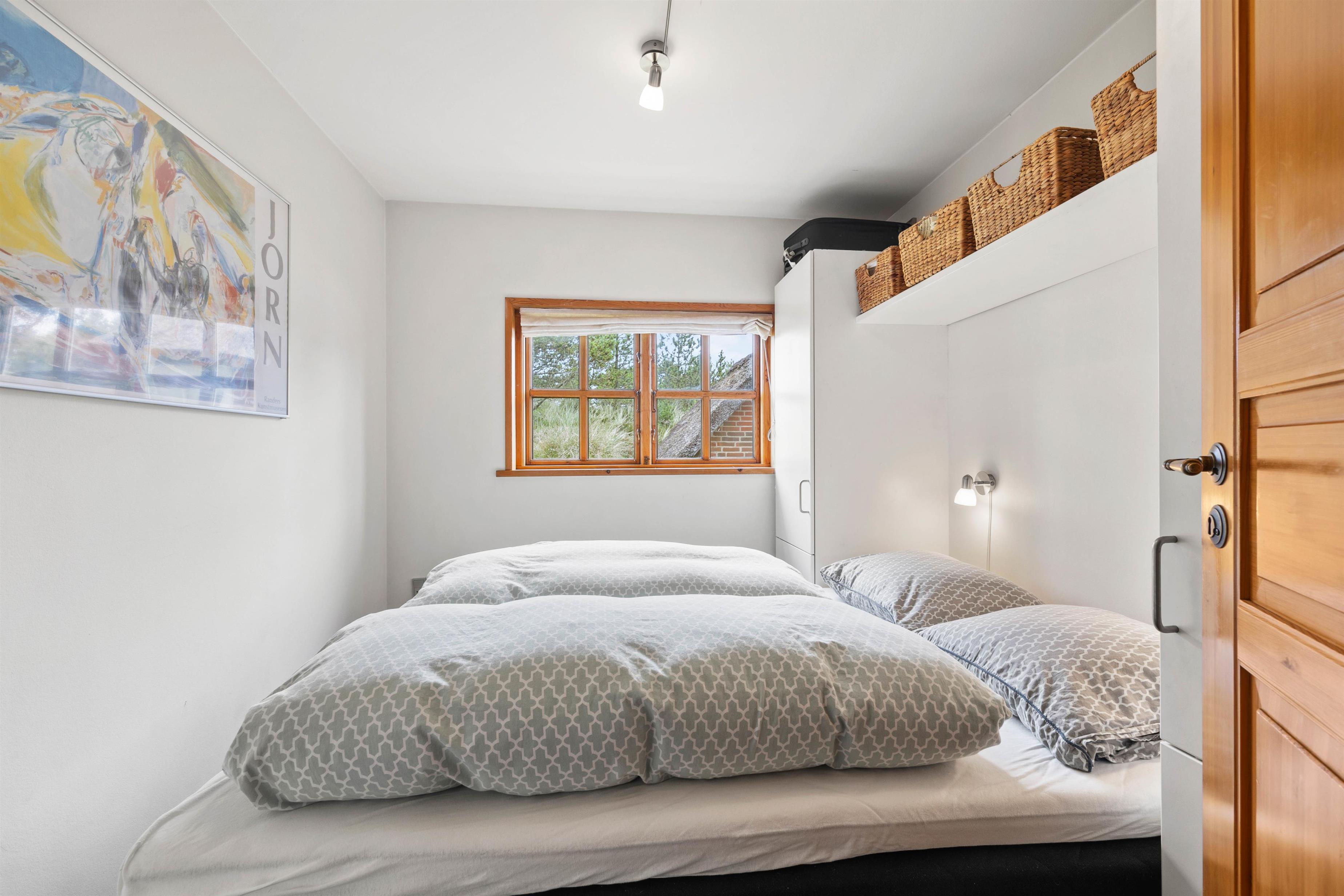 Badeværelset med gulvvarme indeholder vaskemaskine, så I kan opfriske garderoben i løbet af ferien. Her er også adgang til sauna, hvor I kan varme musklerne op efter en lang gåtur på stranden. 2 af de hyggelige soveværelser er udstyret med komfortable dobbeltsenge 140 x 200 cm , mens det tredje værelse har 2 enkeltsenge 70 x 200 cm , så I kan indrette jer, som det passer jer bedst.