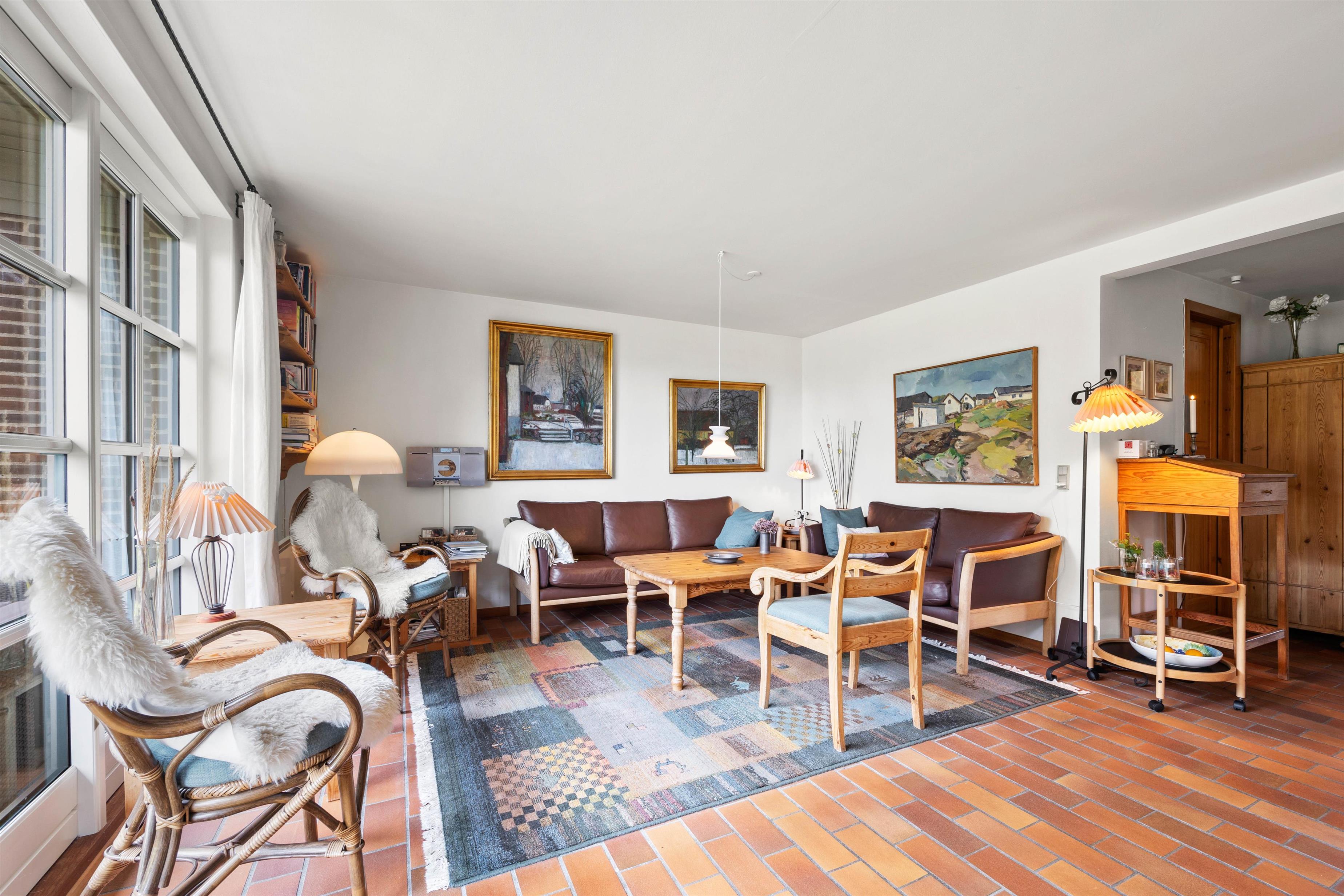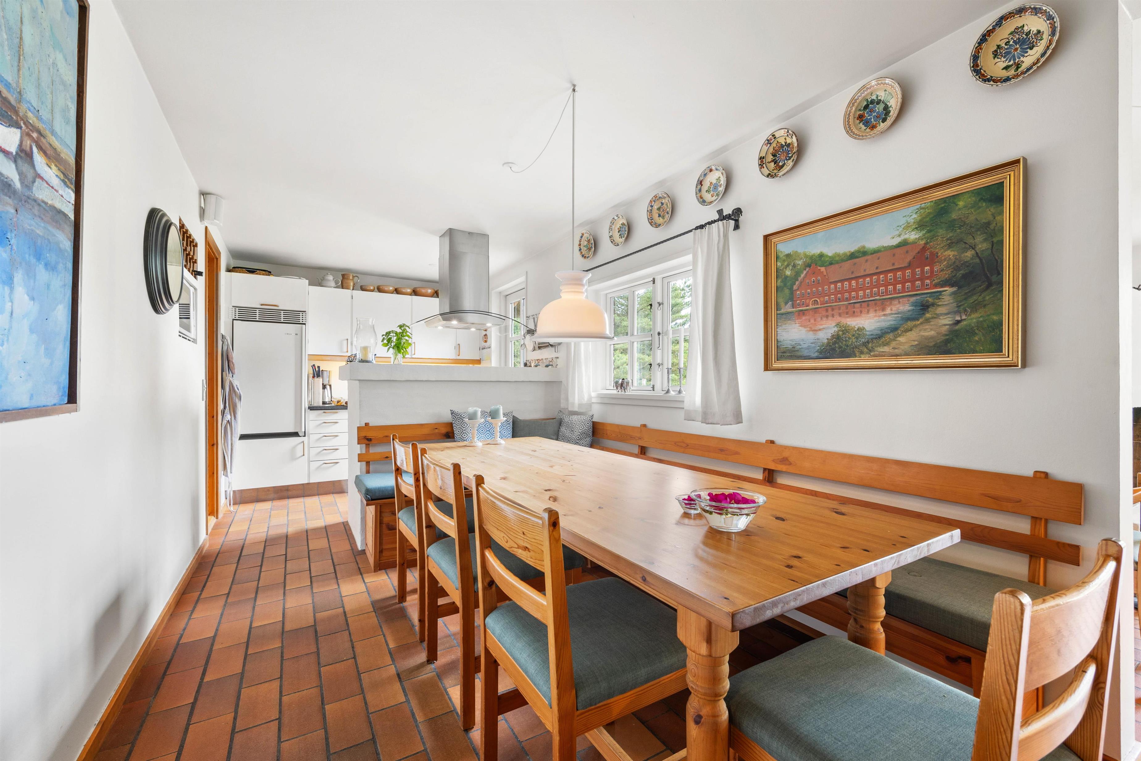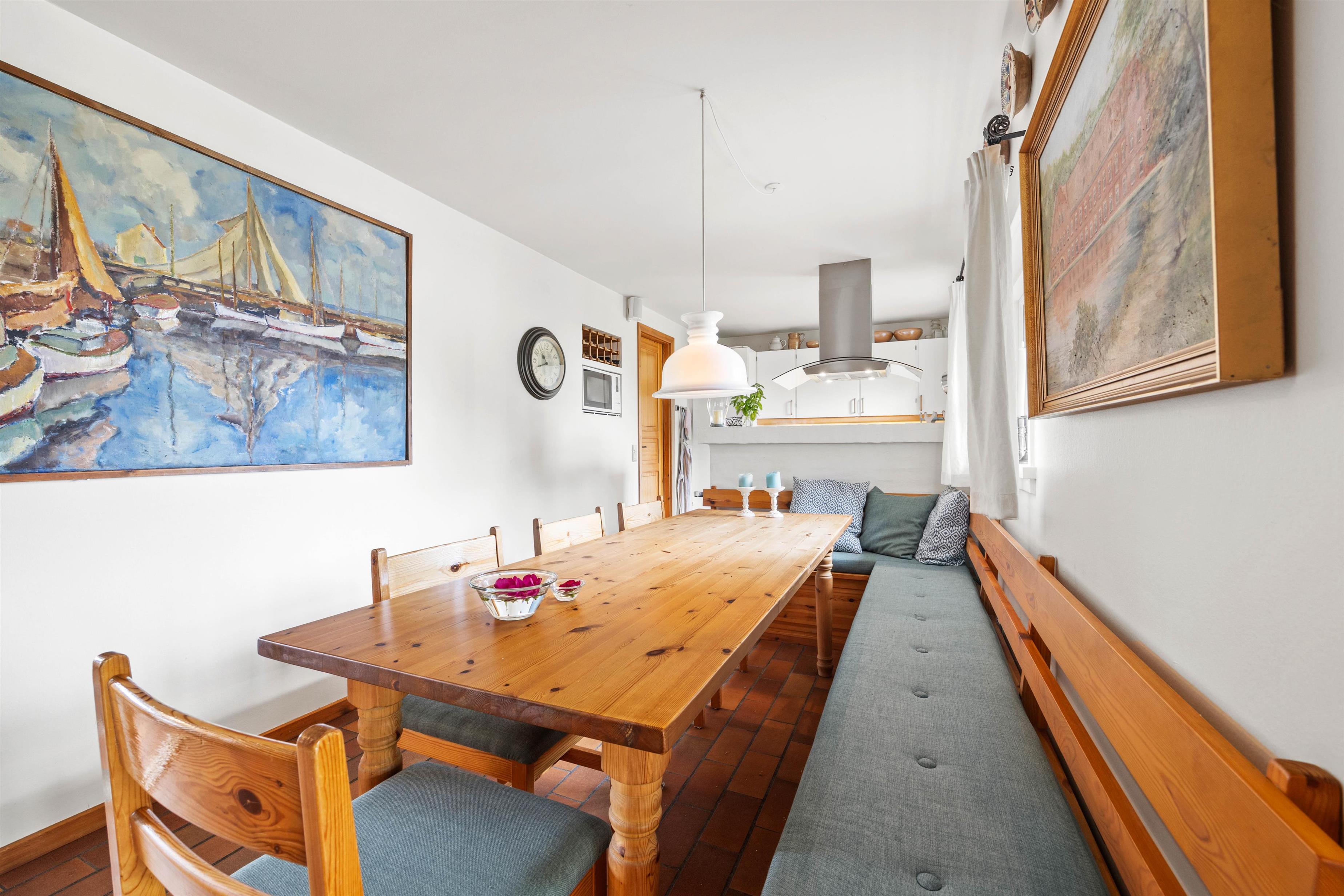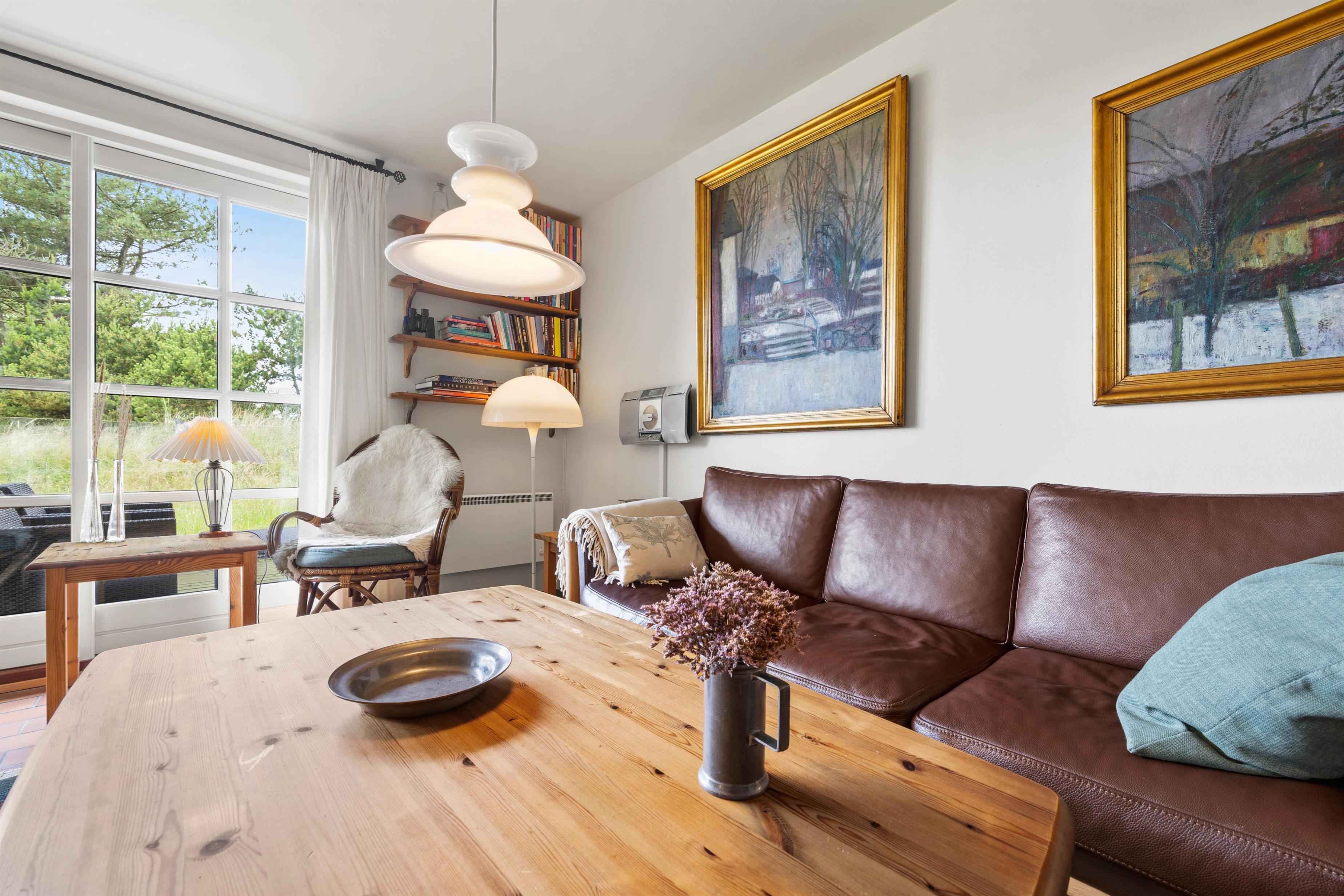 Når I træder ind i feriehuset, vil I straks mærke feriestemningen, som det smukke klinkegulv og den nordiske indretning i opholdsstuen, skaber. Opholdsstuen er udstyret med et fjernsyn, ideelt til hyggelige aftener på sofaen efter en dag, fuld af aktiviteter. Det åbne køkken er veludstyret med moderne hvidevarer, herunder opvaskemaskine. Her kan I forkæle hinanden med lækre, hjemmelavede måltider – eller arrangere en fælles madlavningsaften.