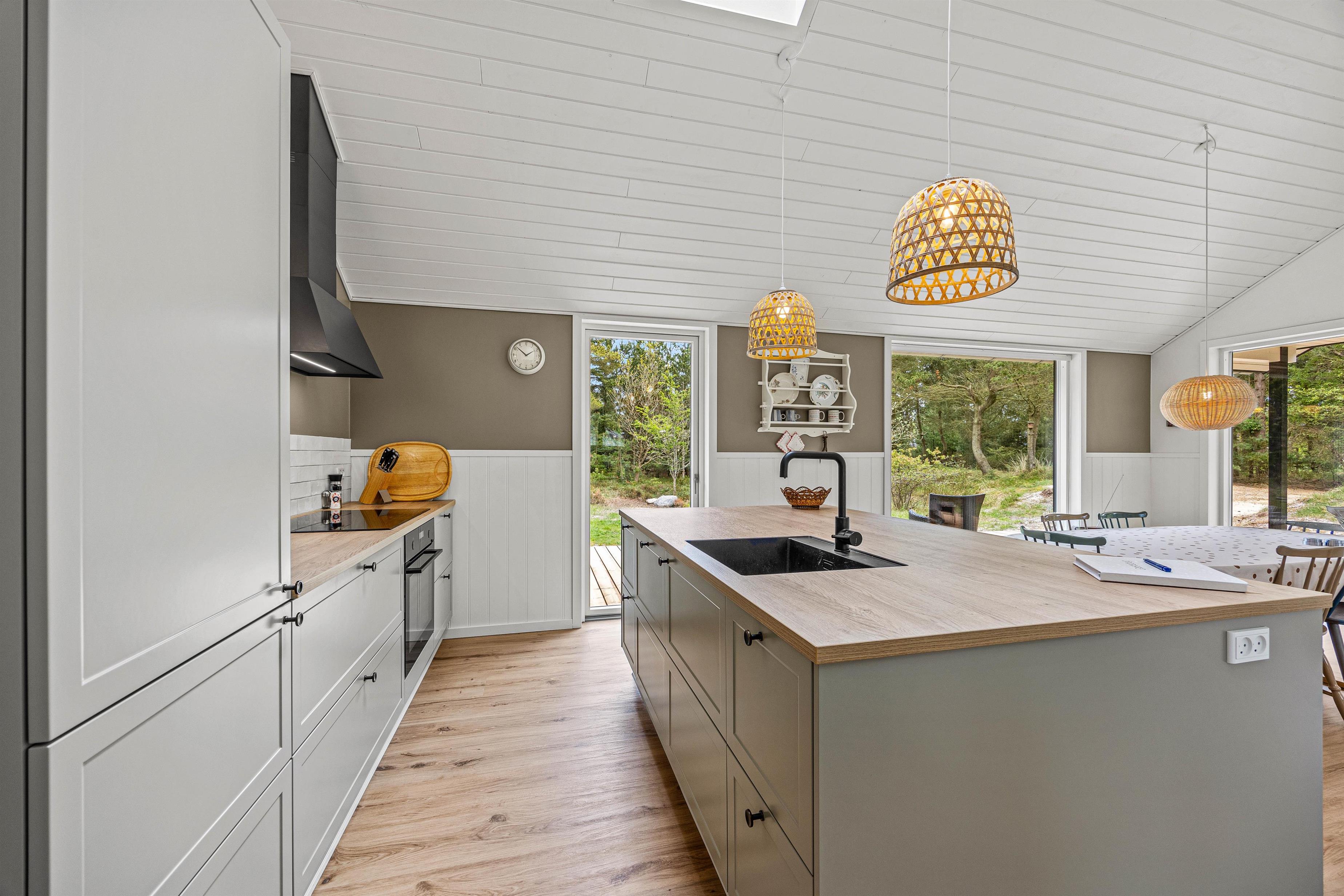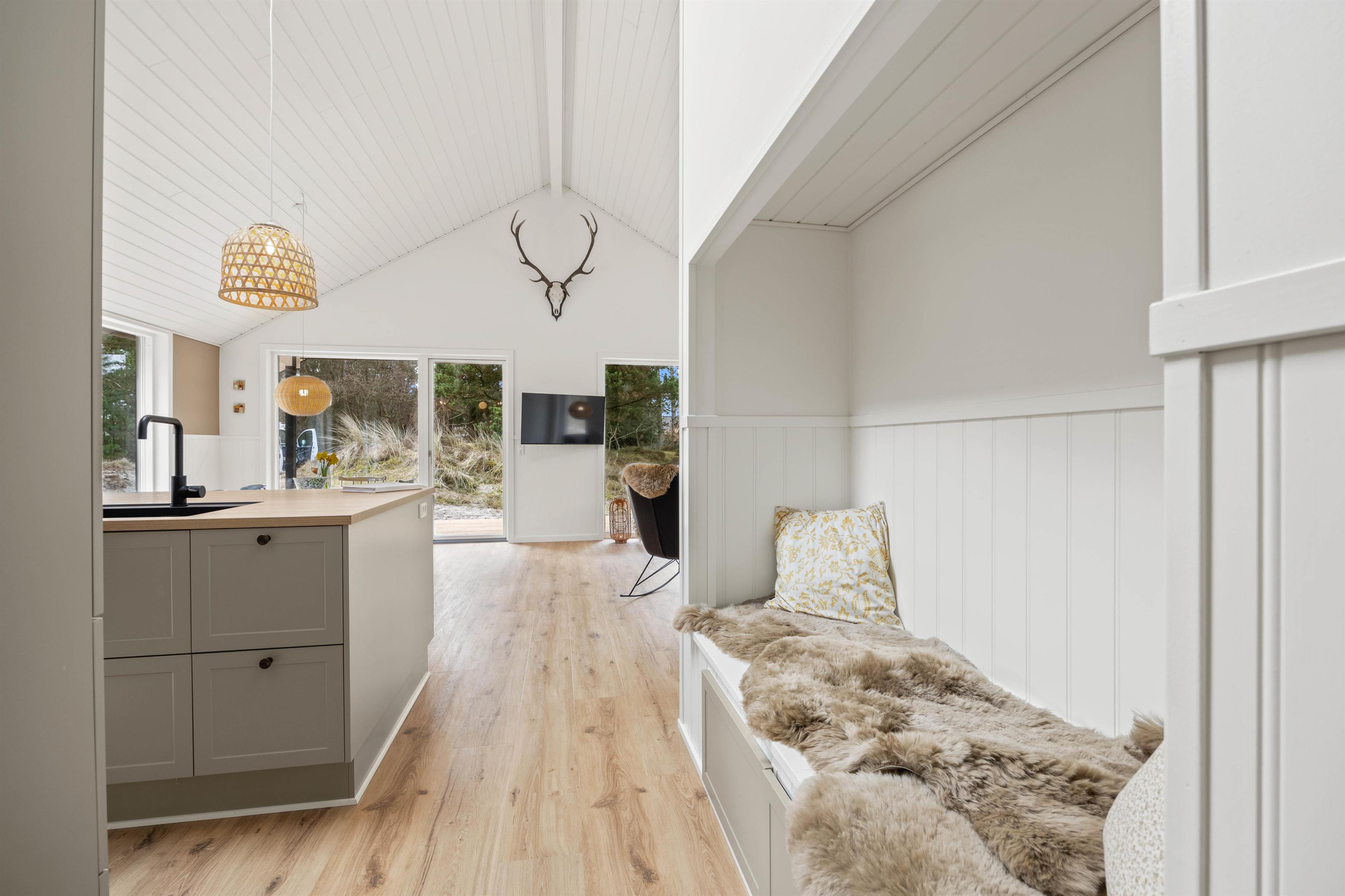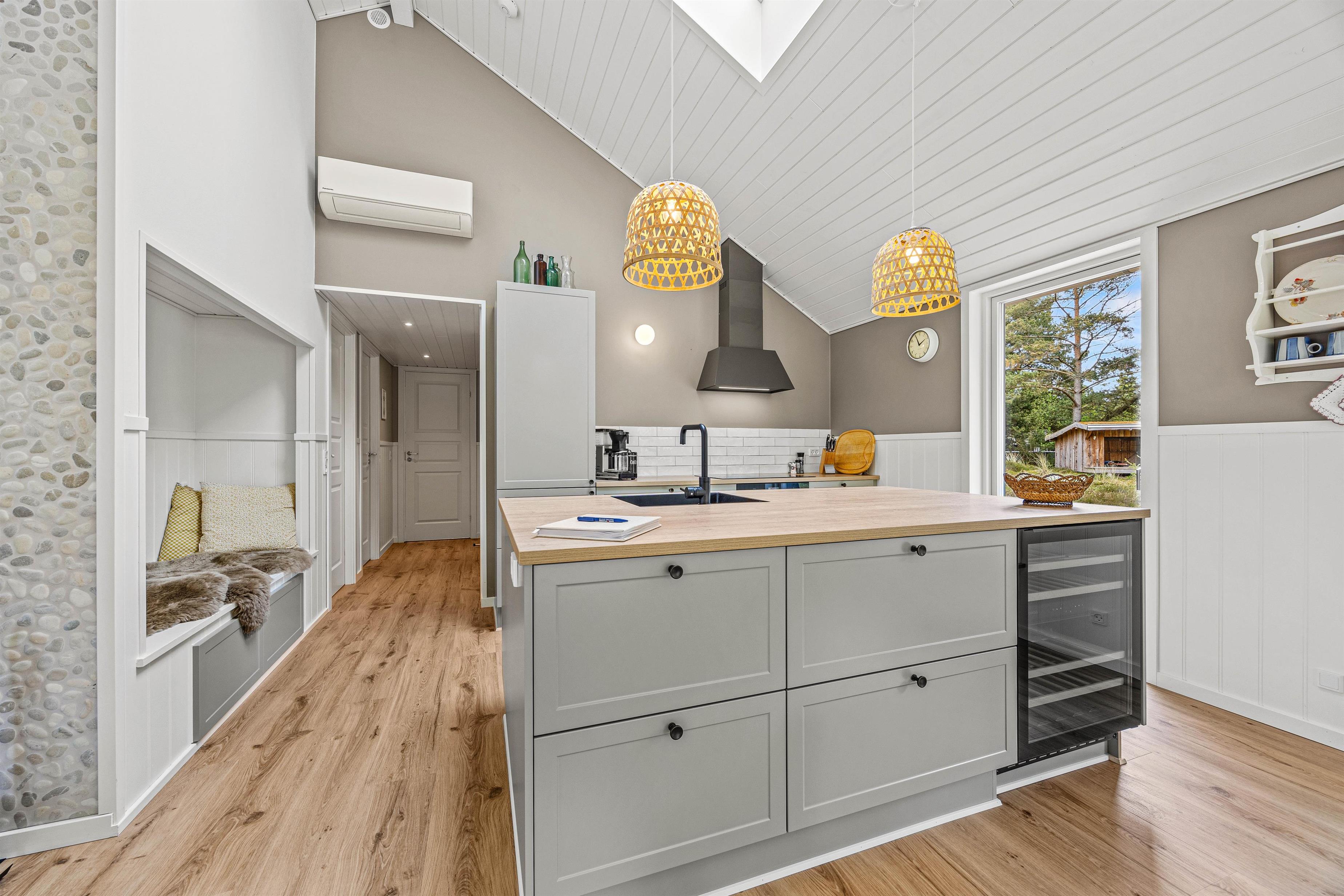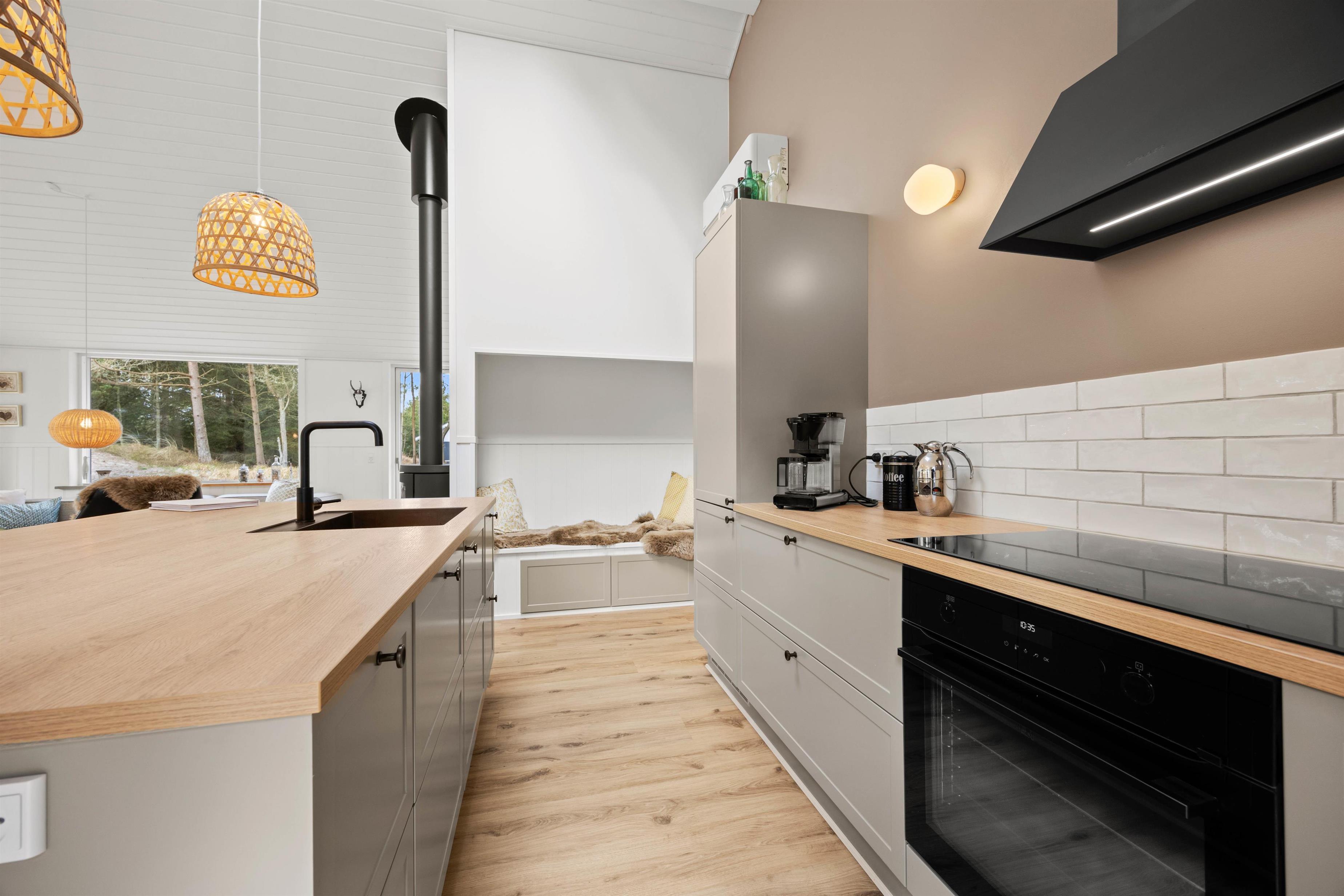Sommerhuset i Blåvand imponerer med sin førsteklasses og moderne indretning. Køkkenet er fuldt udstyret med induktionskomfur, ovn, opvaskemaskine og en gasgrill, så I kan tilberede lækre måltider uden besvær. Desuden har I adgang til vaskemaskine, tørretumbler og varmepumpe for at gøre jeres ophold så komfortabelt som muligt.