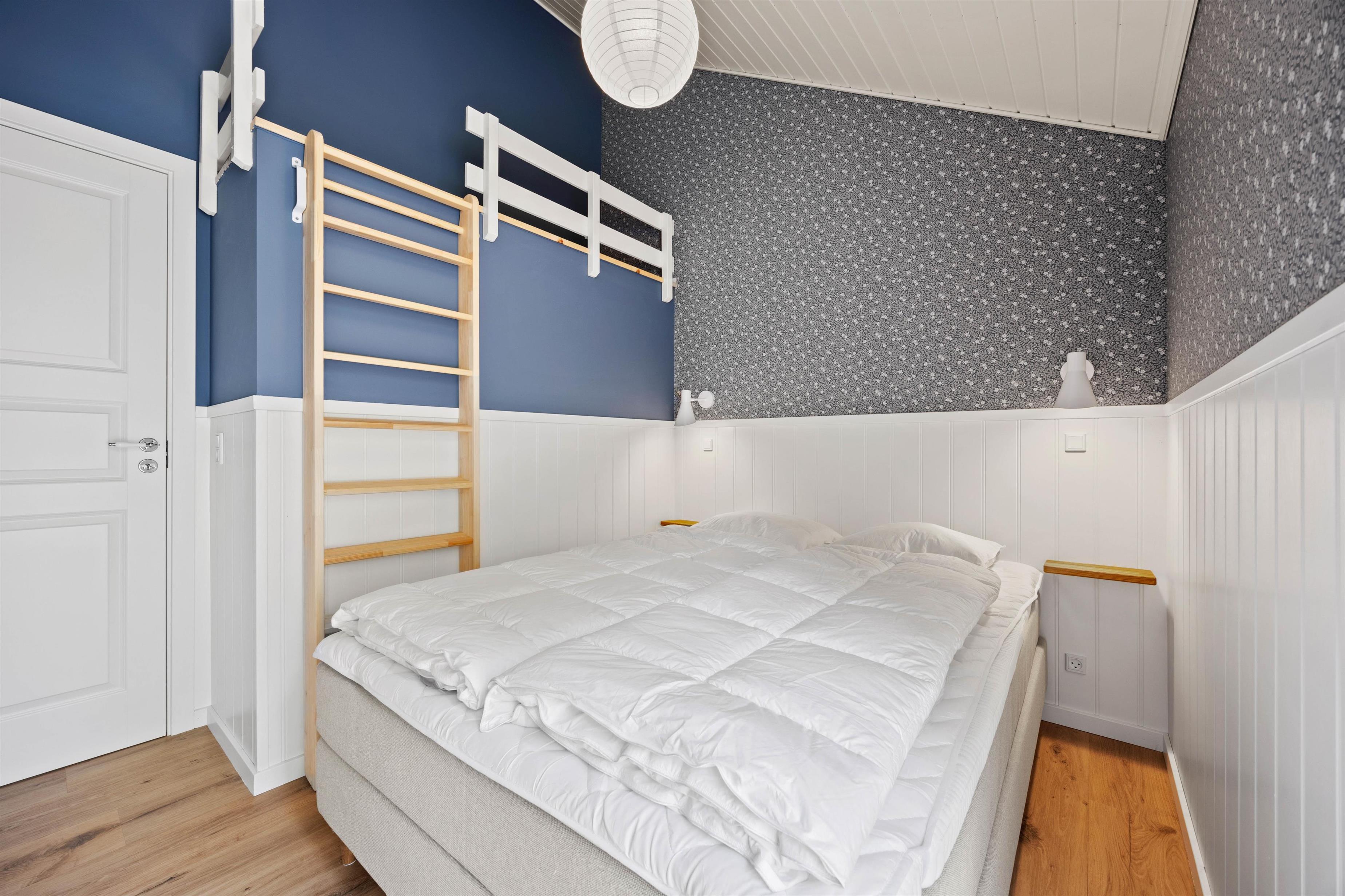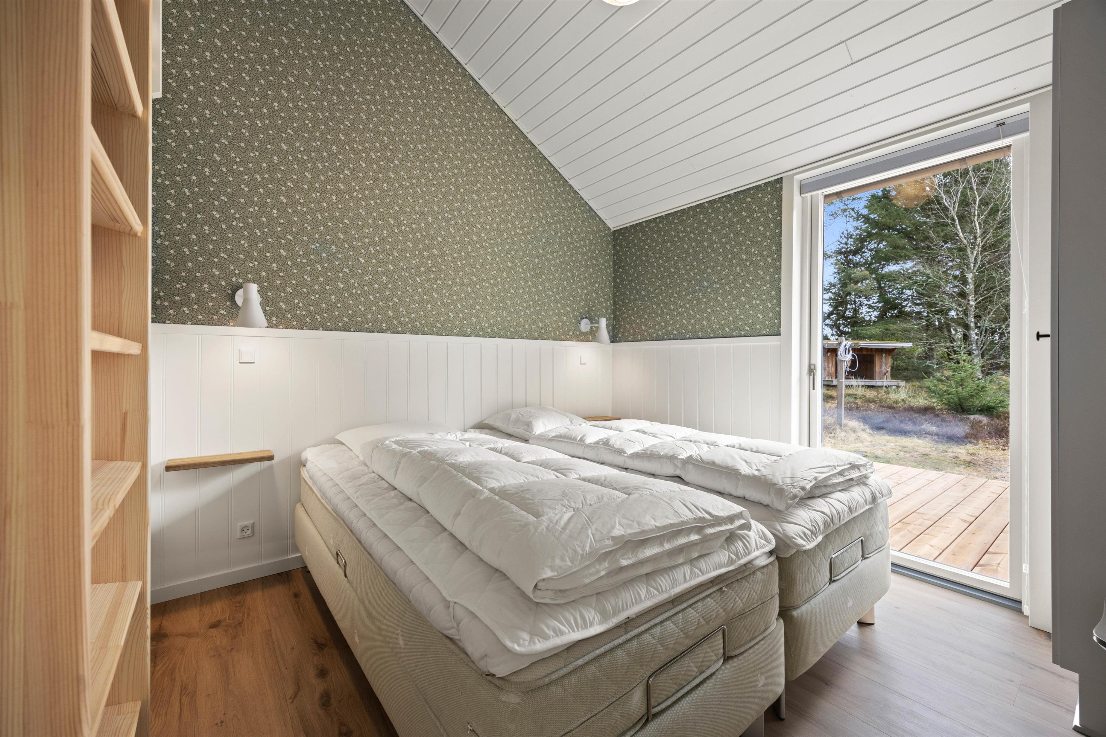 Sommerhuset har tre hyggelige soveværelser, der er udstyret med to dobbeltsenge og to enkeltsenge. Derudover er der tre hemse, som sikrer fleksible sovepladser. Hvert soveværelse er individuelt indrettet og byder på førsteklasses komfort.