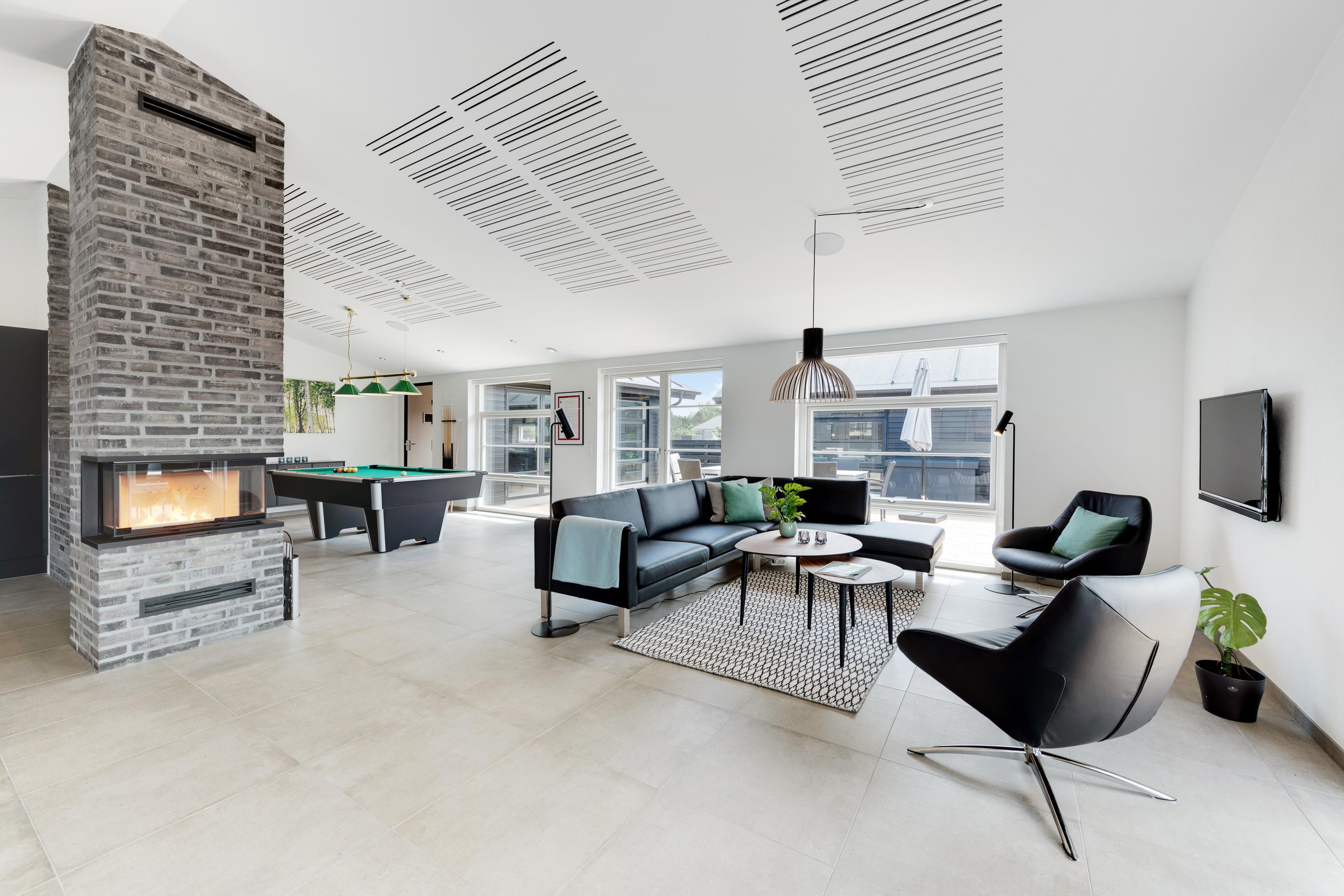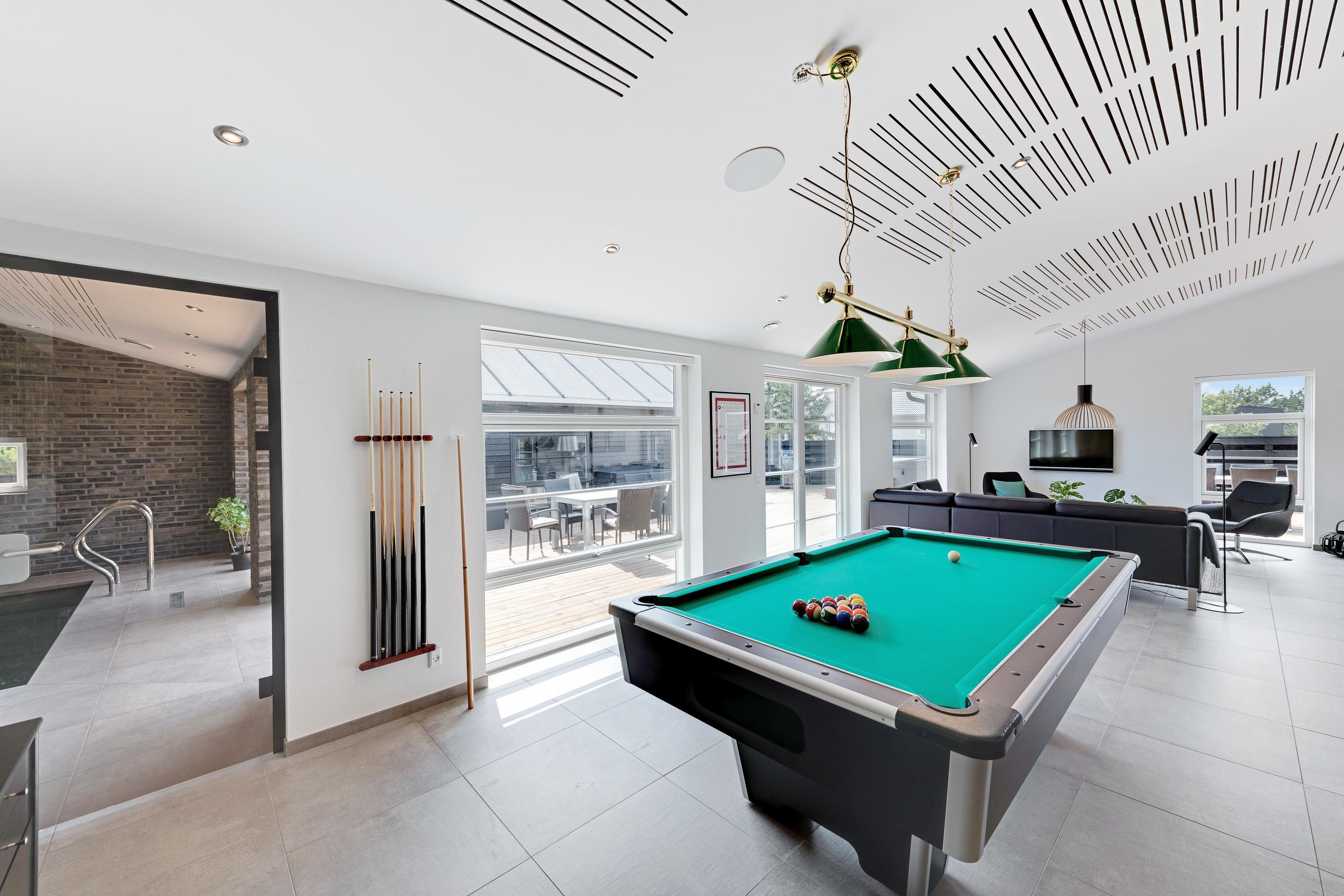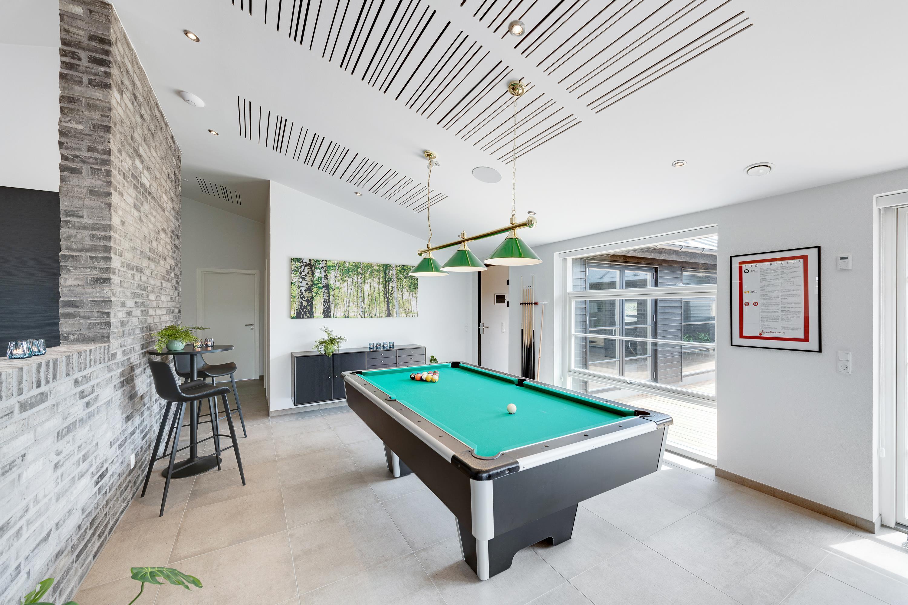 I aktivitetsrummet kan de konkurrenceglade gæster samles til en spændende billardturnering, mens resten kan sætte sig godt til rette med en god bog eller en film i det store sofaområde, hvor brændeovnens knitrende flammer vil sprede varme og masser af feriestemning. Der er også et fitnessrum i huset, så I kan holde jer i form i ferien, hvis I har lyst til det.