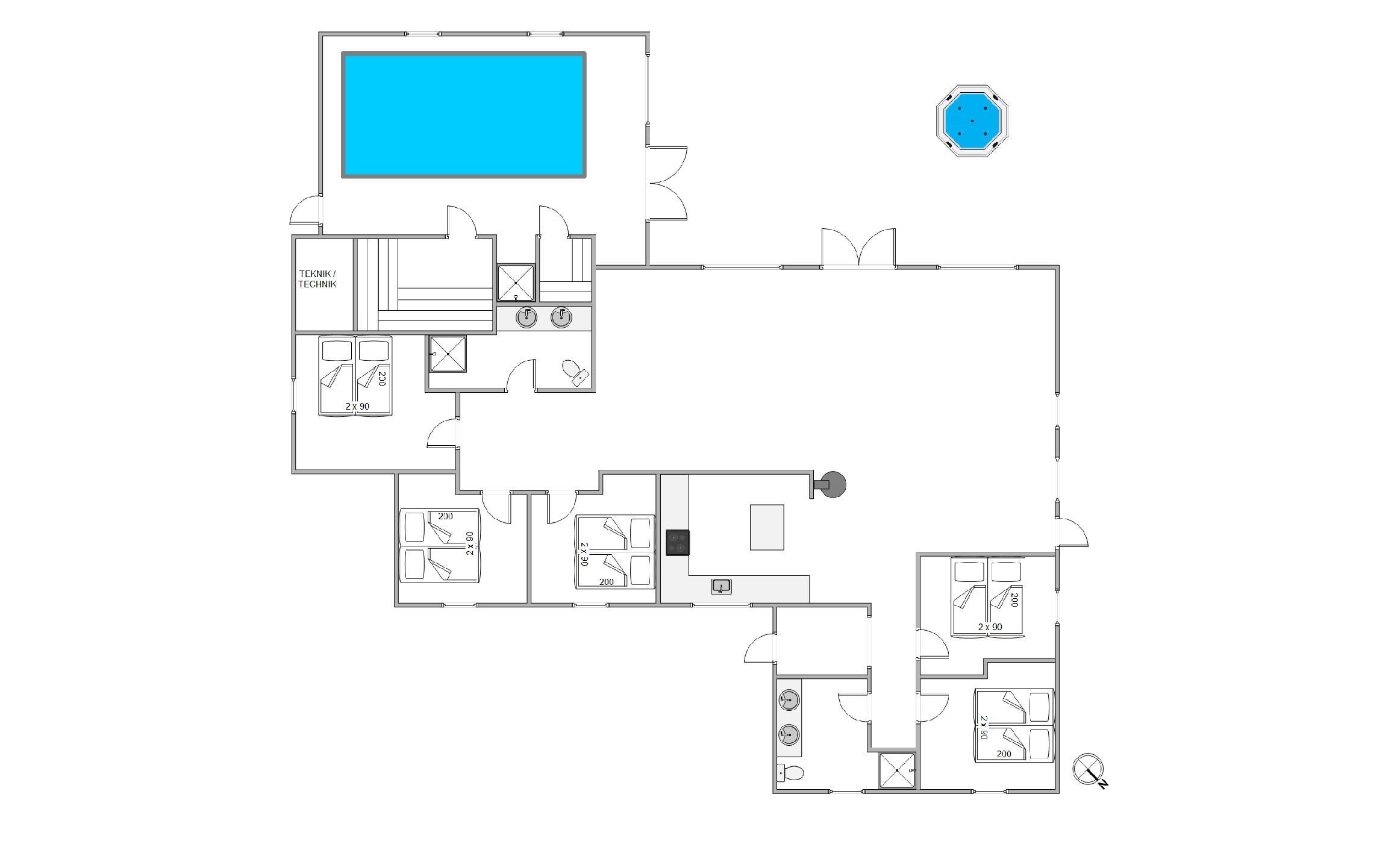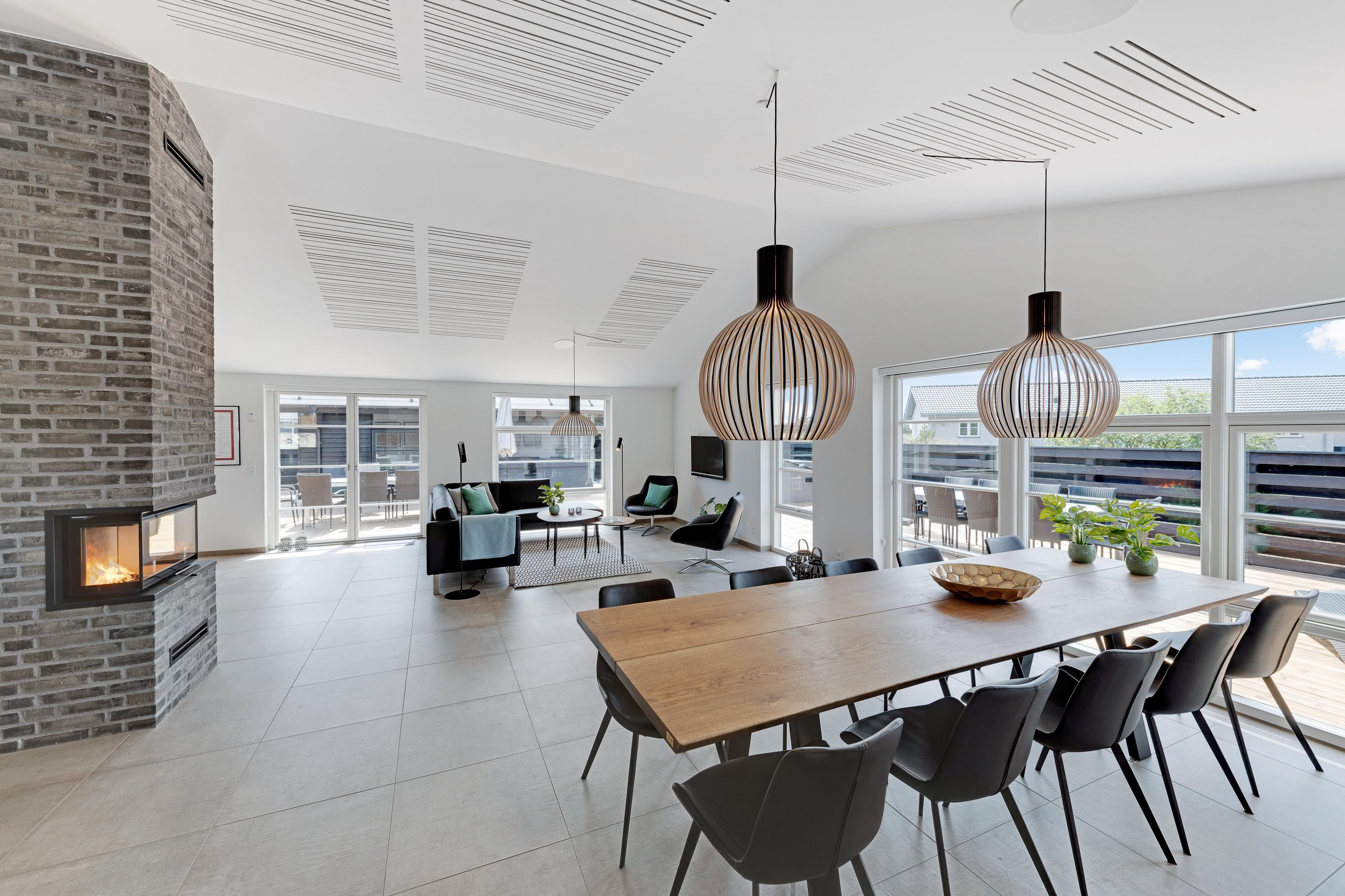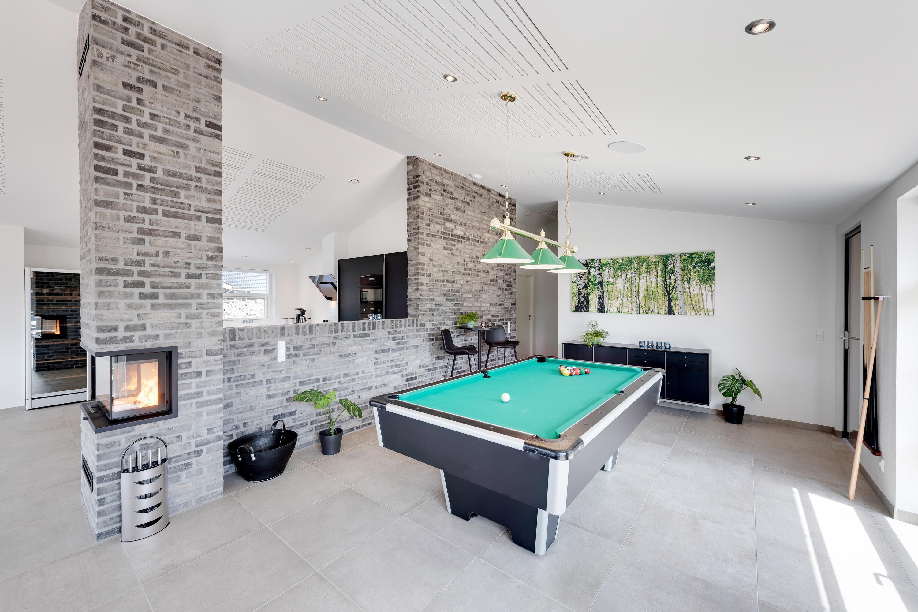 I aktivitetsrummet kan de konkurrenceglade gæster samles til en spændende billardturnering, mens resten kan sætte sig godt til rette med en god bog eller en film i det store sofaområde, hvor brændeovnens knitrende flammer vil sprede varme og masser af feriestemning. Der er også et fitnessrum i huset, så I kan holde jer i form i ferien, hvis I har lyst til det.