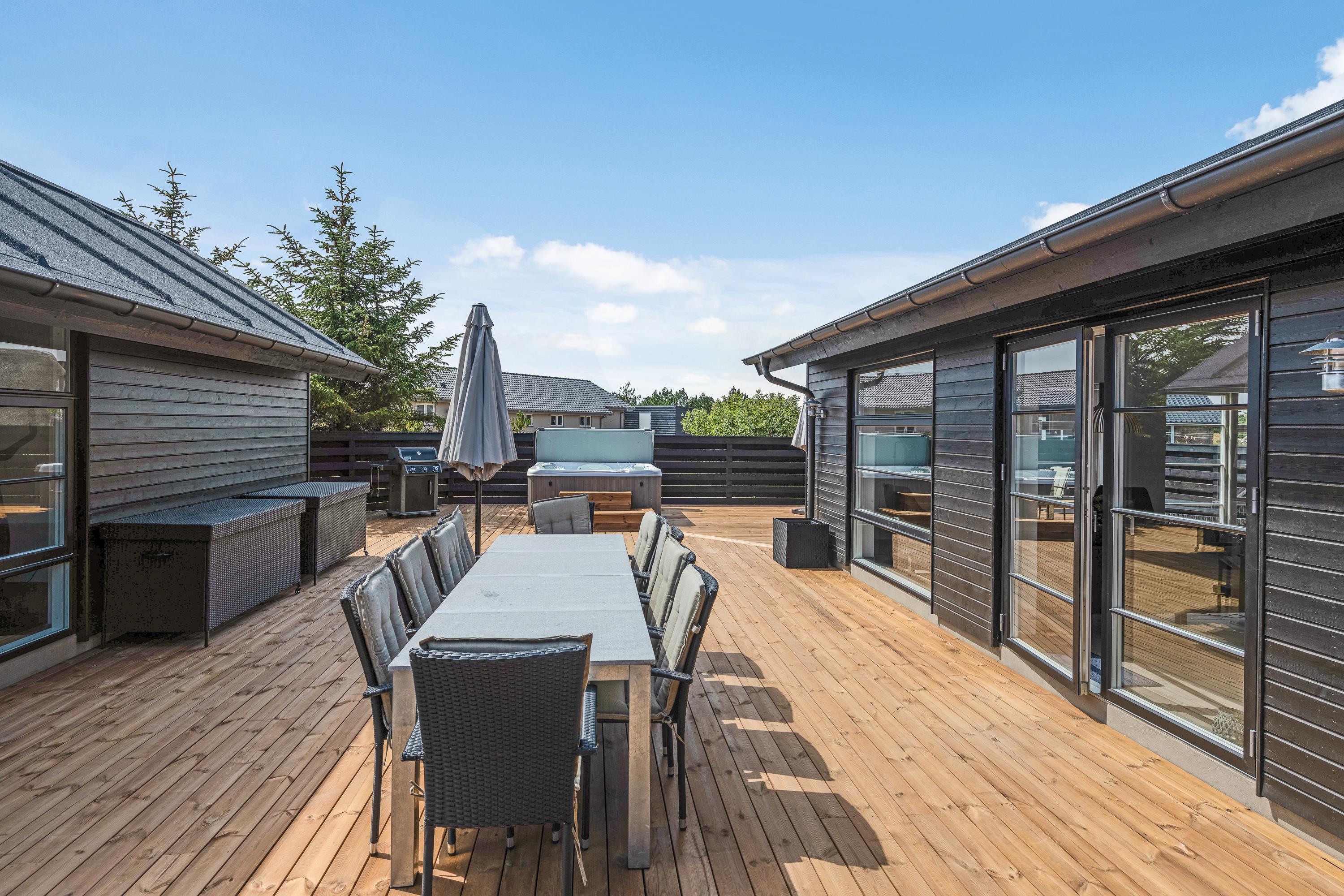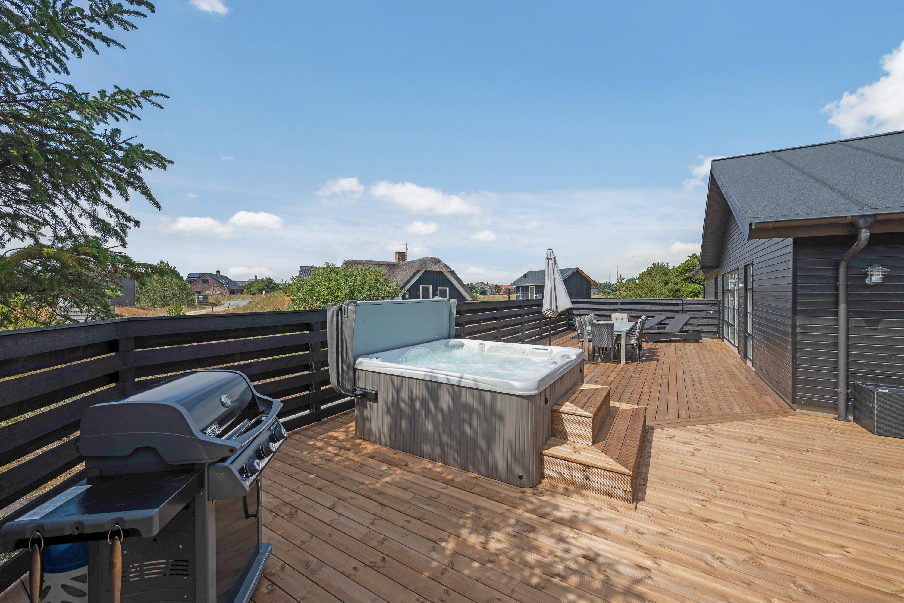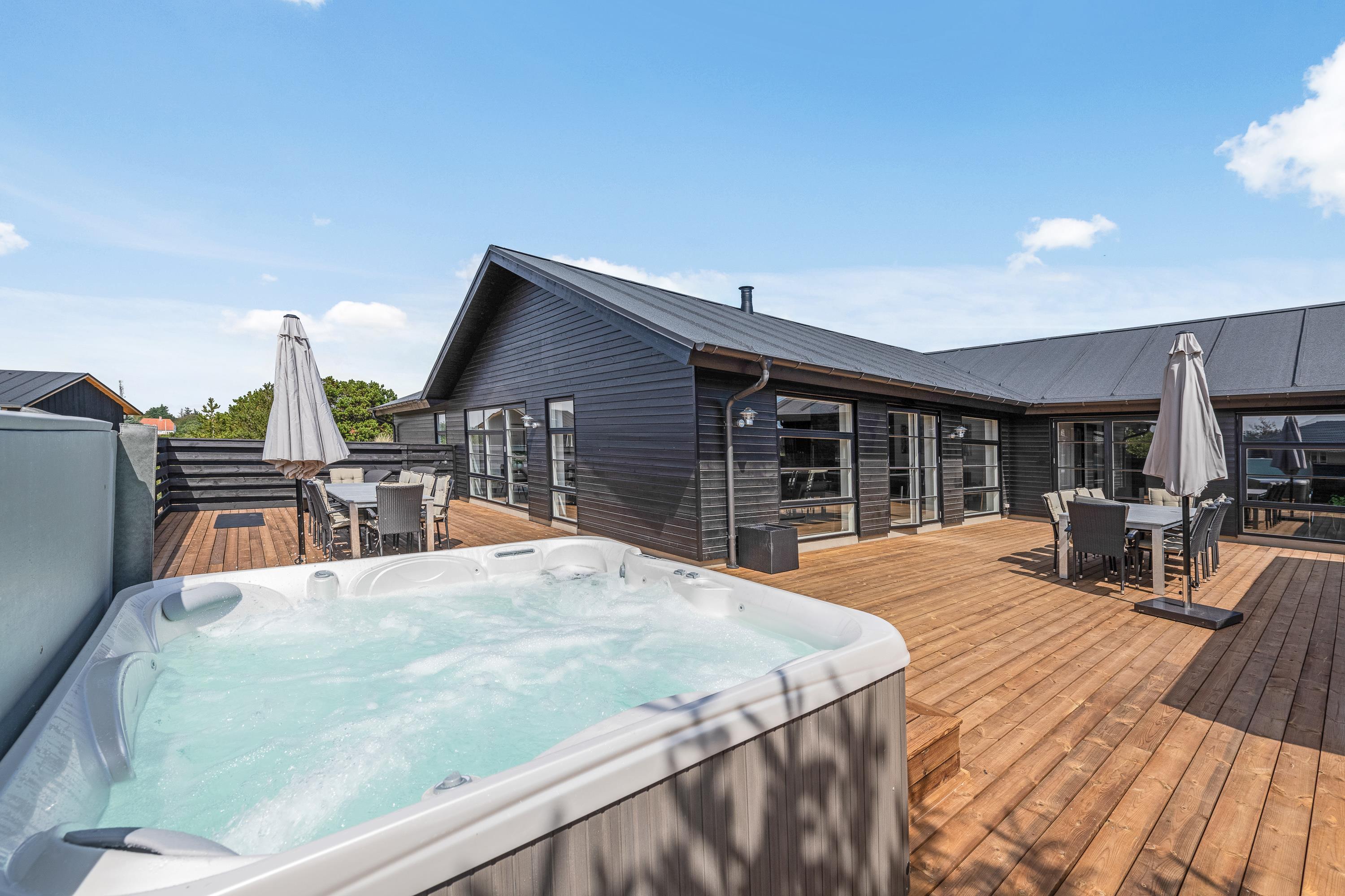 Kun et stenkast fra Vesterhavet og midt i Blåvands smukke natur ligger denne perle af et feriehus, som med sin omfattende indretning byder på en eksklusiv ferie med alt, hvad feriehjertet begærer, og mere til. Swimmingpool, sauna, udendørs spabad og aktivitetsrum hører blot til nogle af husets fede highlights, og både store og små feriegæster vil få en uforglemmelig ferie her.