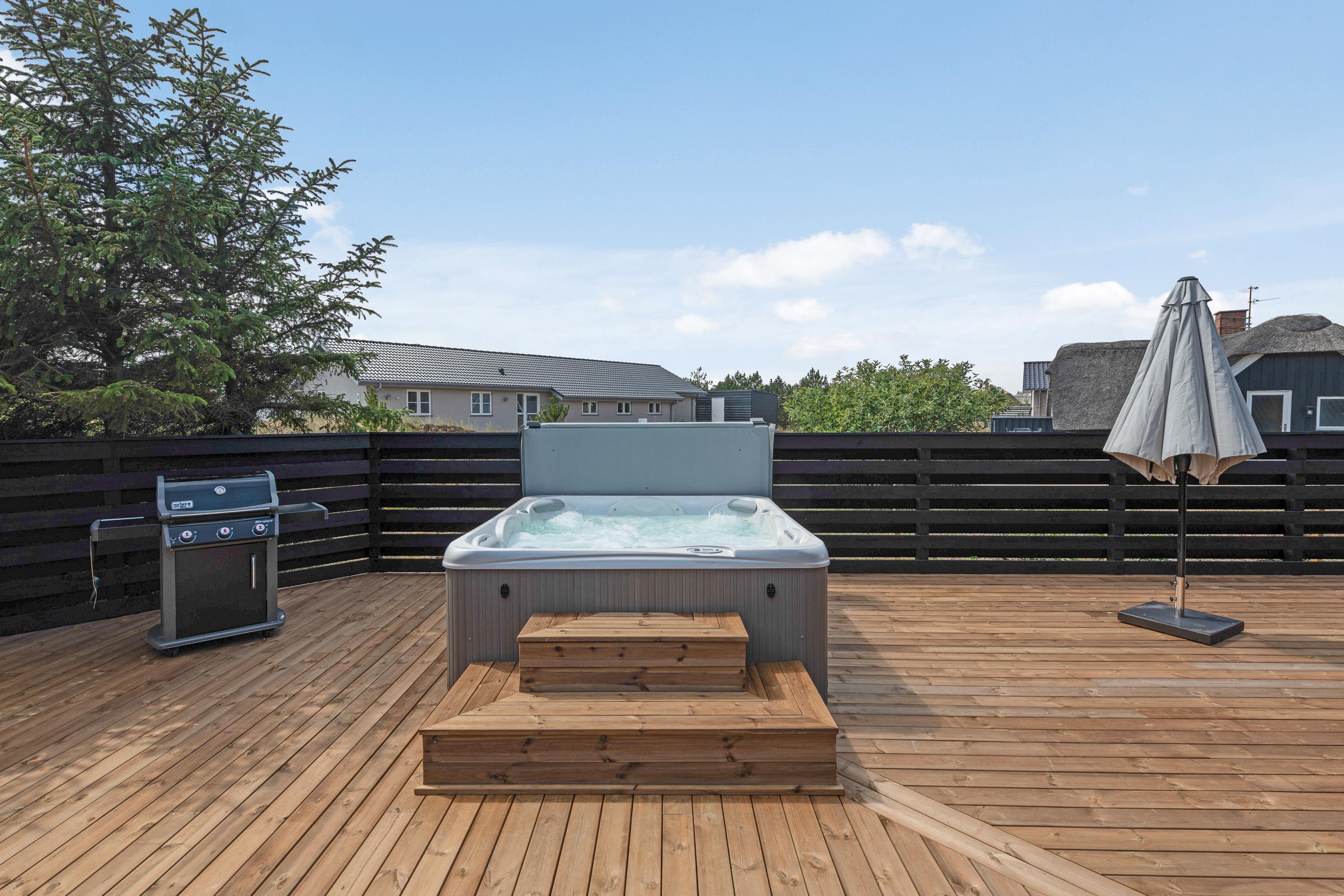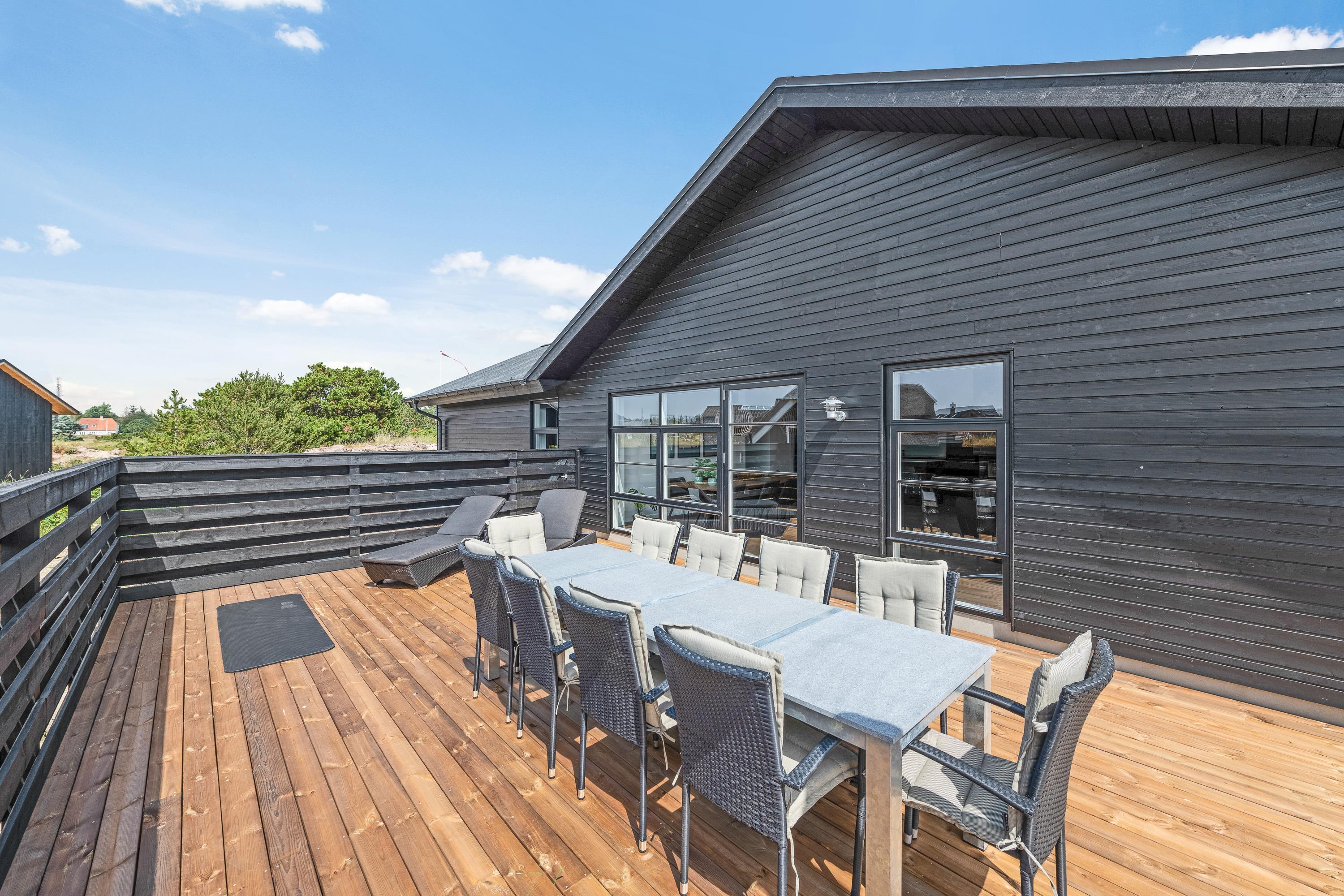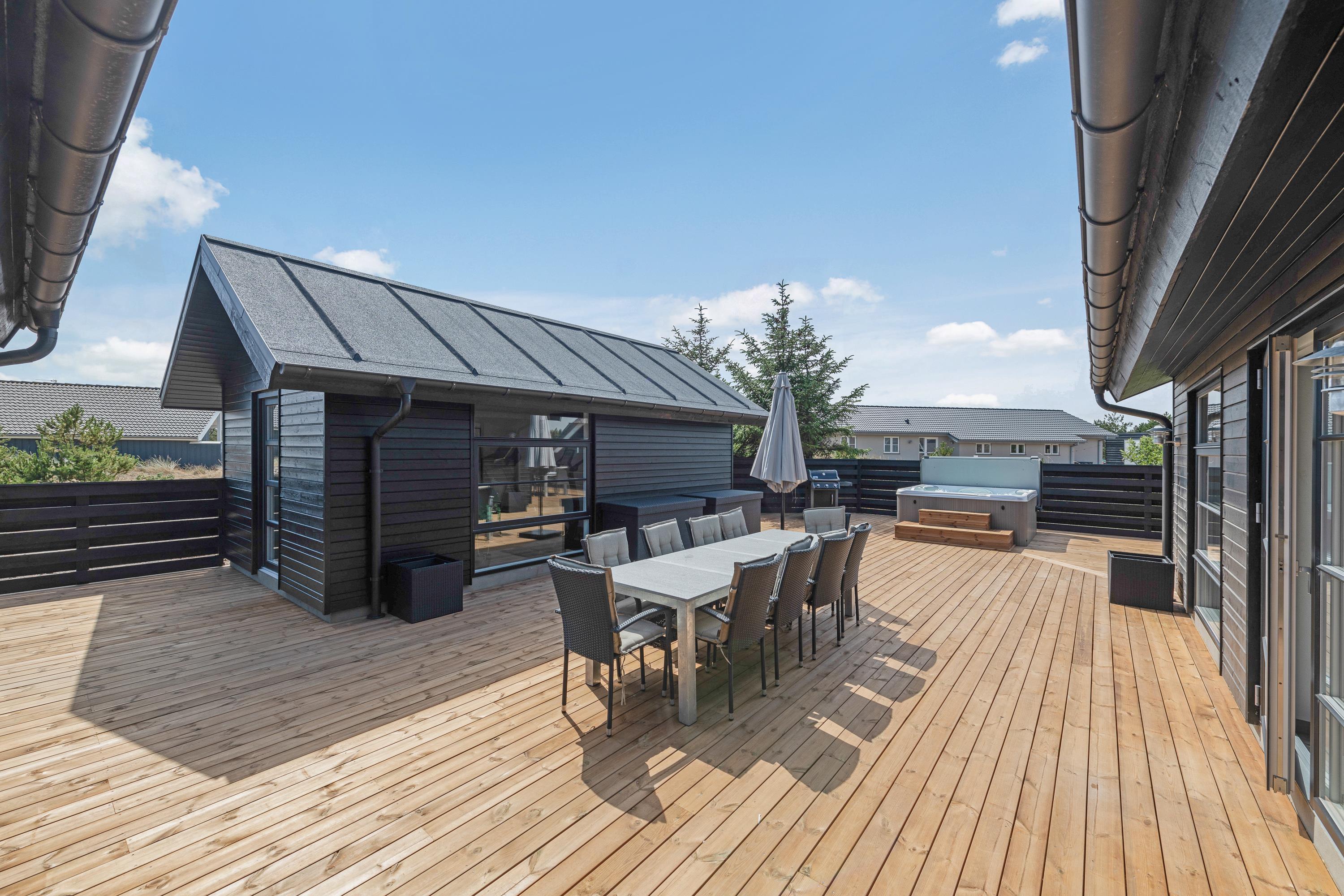 Kun et stenkast fra Vesterhavet og midt i Blåvands smukke natur ligger denne perle af et feriehus, som med sin omfattende indretning byder på en eksklusiv ferie med alt, hvad feriehjertet begærer, og mere til. Swimmingpool, sauna, udendørs spabad og aktivitetsrum hører blot til nogle af husets fede highlights, og både store og små feriegæster vil få en uforglemmelig ferie her.