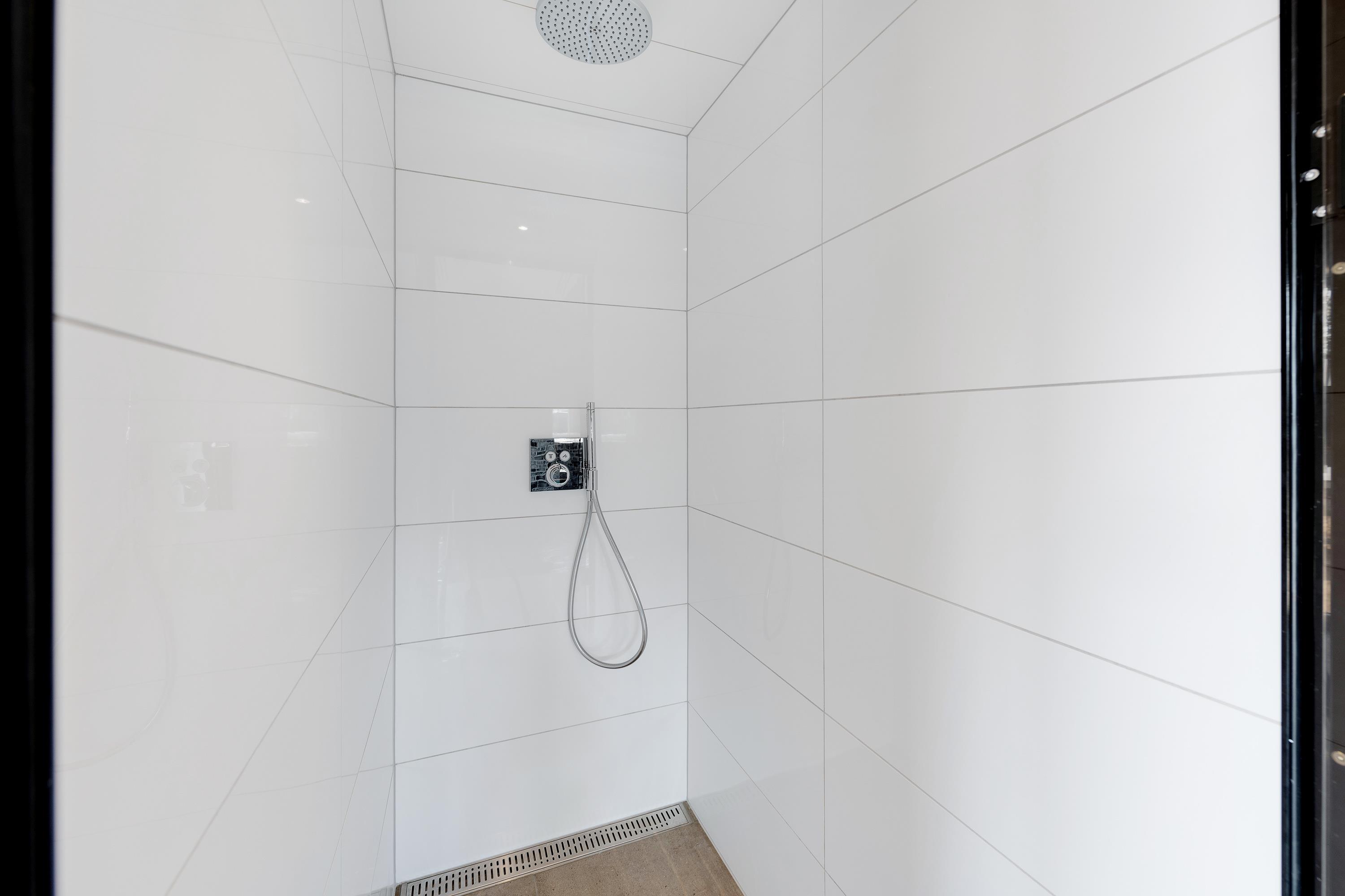 Der er gulvvarme i hele huset, så I til hver en tid har en dejlig temperatur både på badeværelserne, i stuen og i soveværelserne.