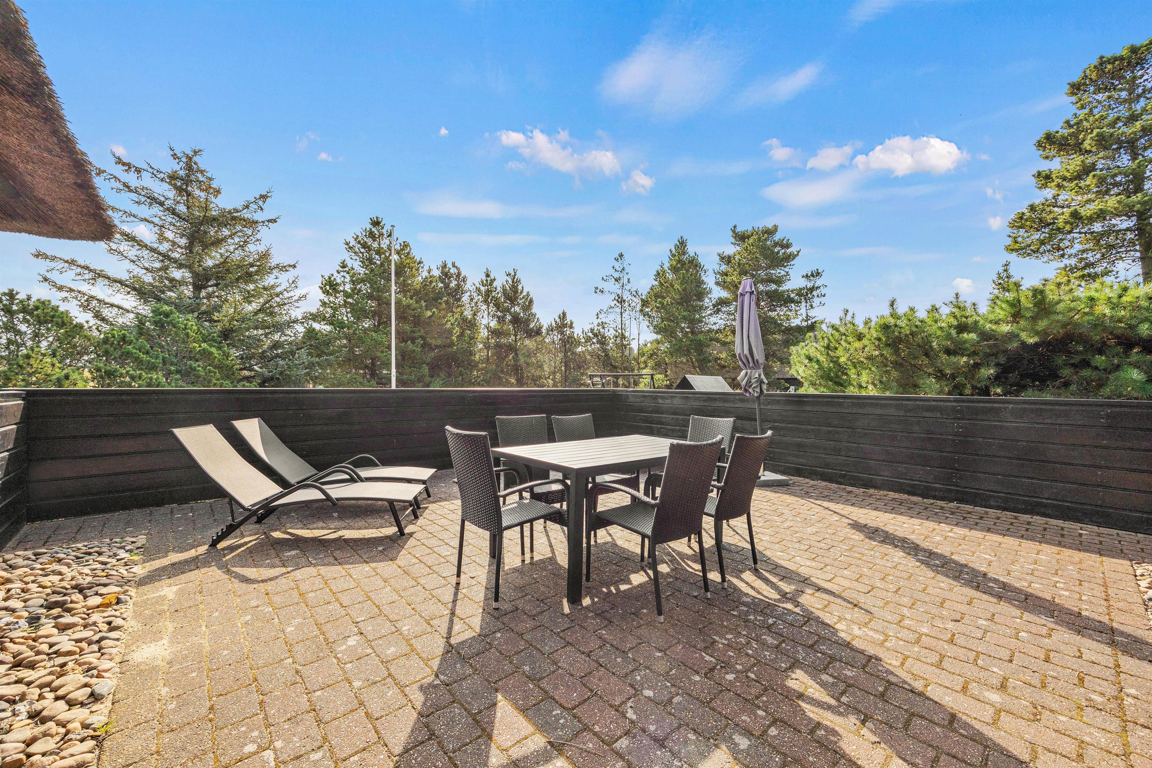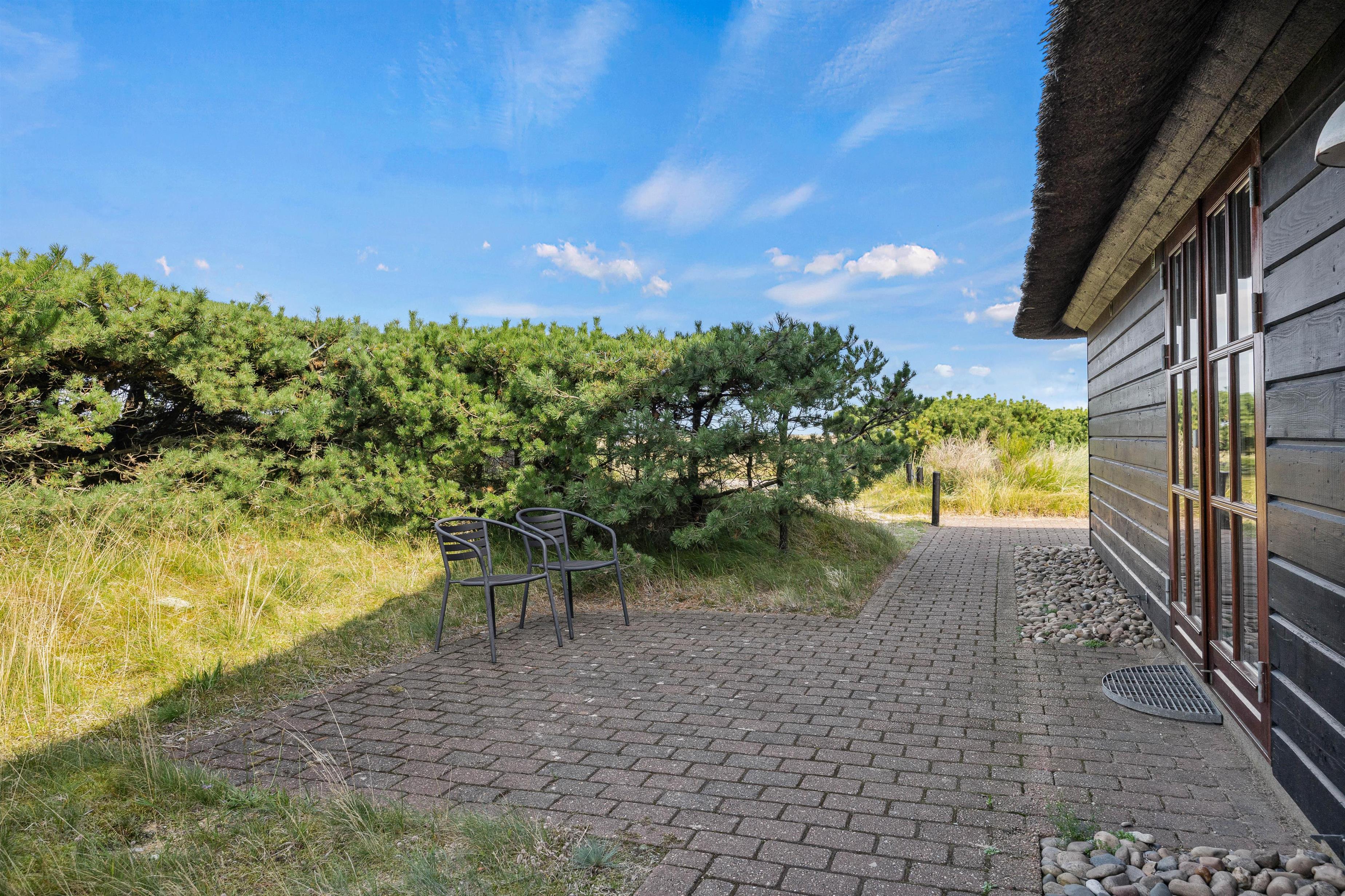 Fra den skønne naturgrund kan I følge det rige dyreliv på heden og får måske også uventet besøg af dyr i de tidlige morgentimer. Feriehuset har flere terrasser, så I kan følge solen rundt hele dagen eller finde skygge og læ, hvis det skulle ønskes. Den lukkede, afskærmede terrasse indbyder til at sætte sig med en kop kaffe på terrassen, tage en middagslur på solsengene eller nyde et godt måltid fra grillen med et glas vin og en solnedgang.