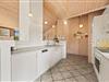 I sommerhusets hjerterum finder I det lyse åbne køkken med opvaskemaskine og mikroovn, der er i åben forbindelse med både spiseplads og stuen, så kokken kan nemt følge med i spillet ved spisebordet eller samtalen i sofagruppen. De flotte vinduespartier sørger for lys og kig til terrasserne og den flotte naturgrund.